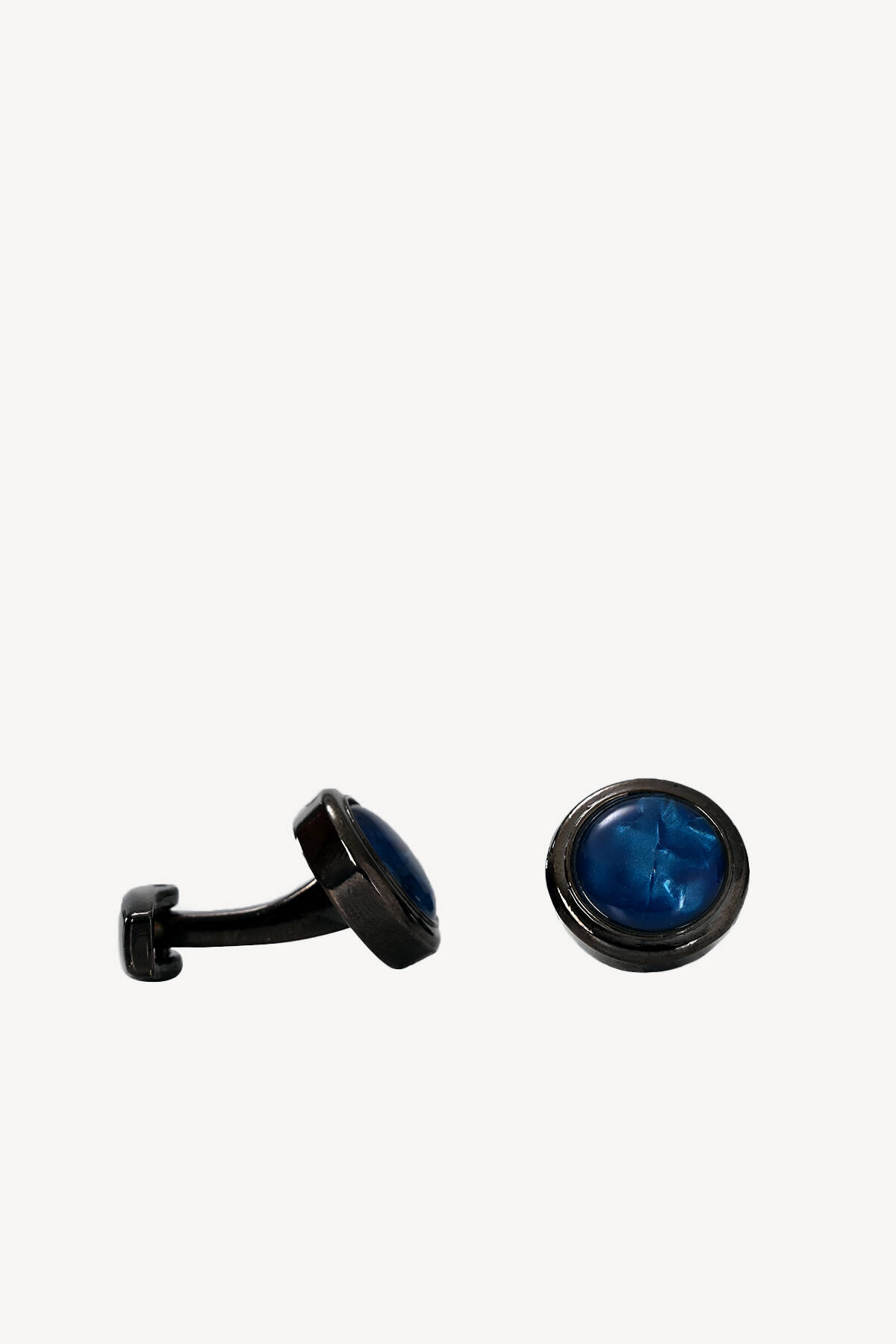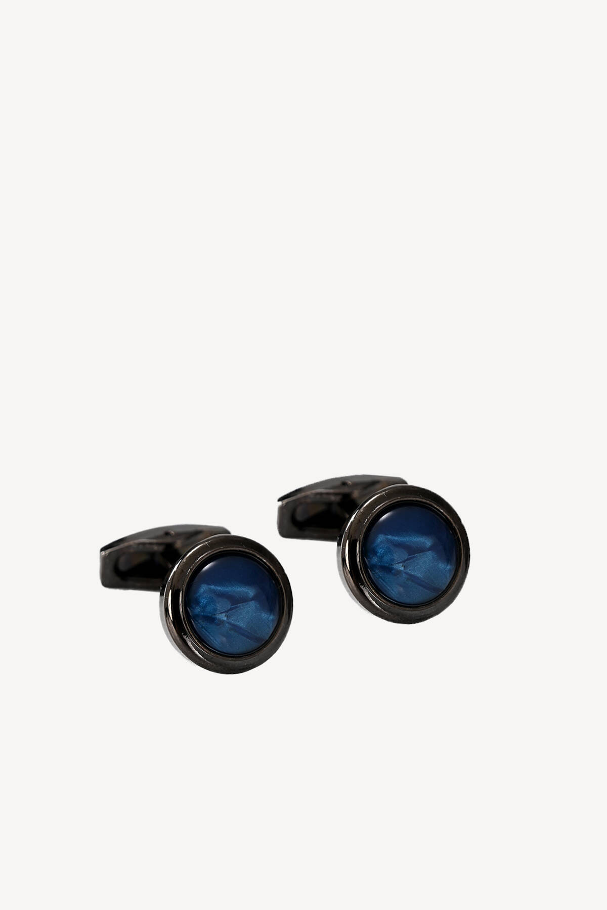 Erkek Lacivert Taşlı Siyah Krom Kaplama Kol Düğmesi