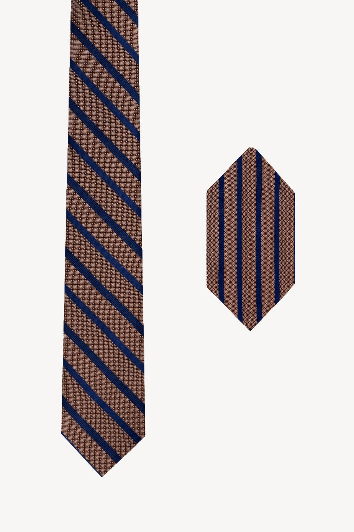 Erkek Gri Çizgili Dokulu Kravat Mendil Set