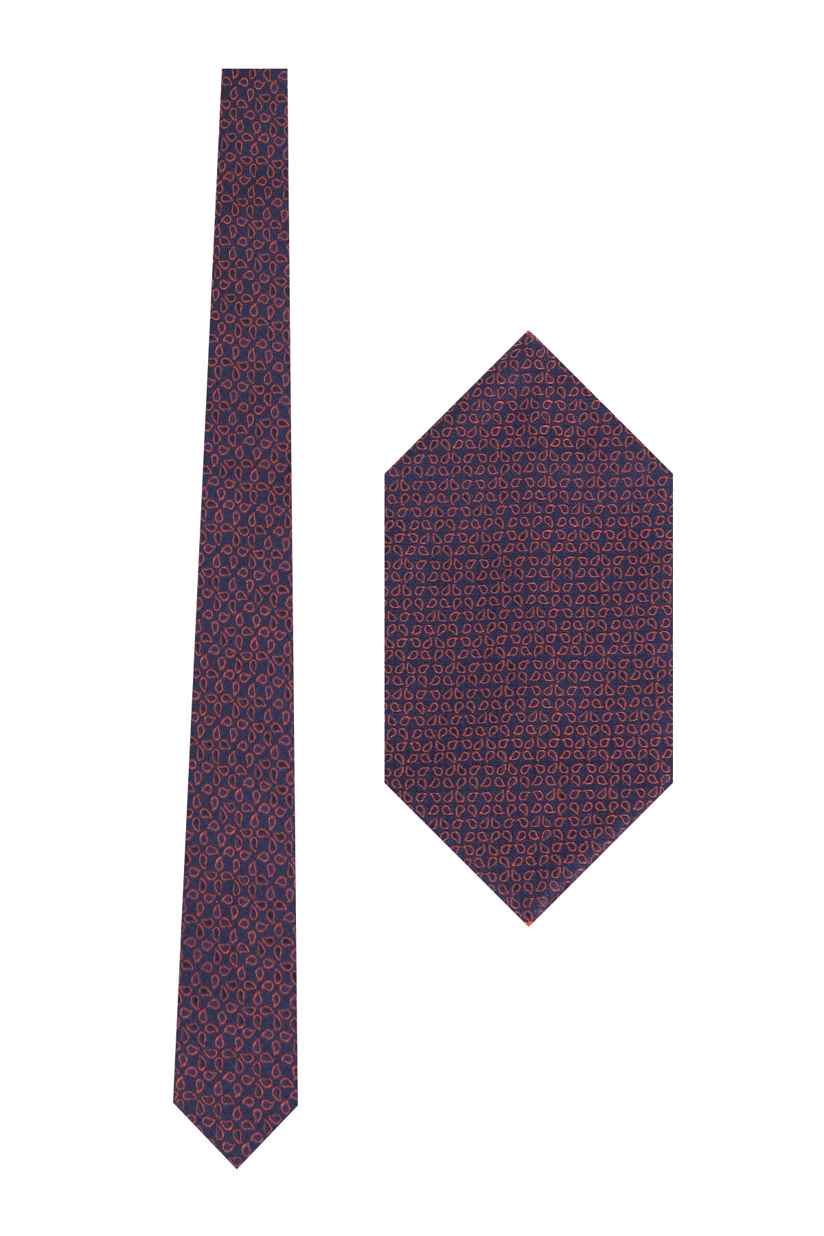 Erkek Lacivert Taba Desenli Kravat & Mendil Set