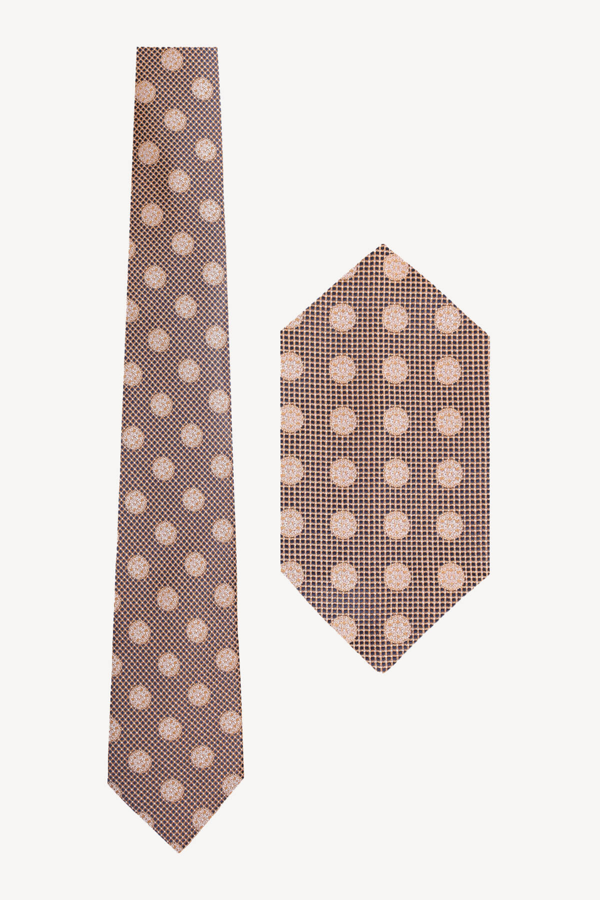 Erkek Kahve Bej Desenli Kravat Mendil Set