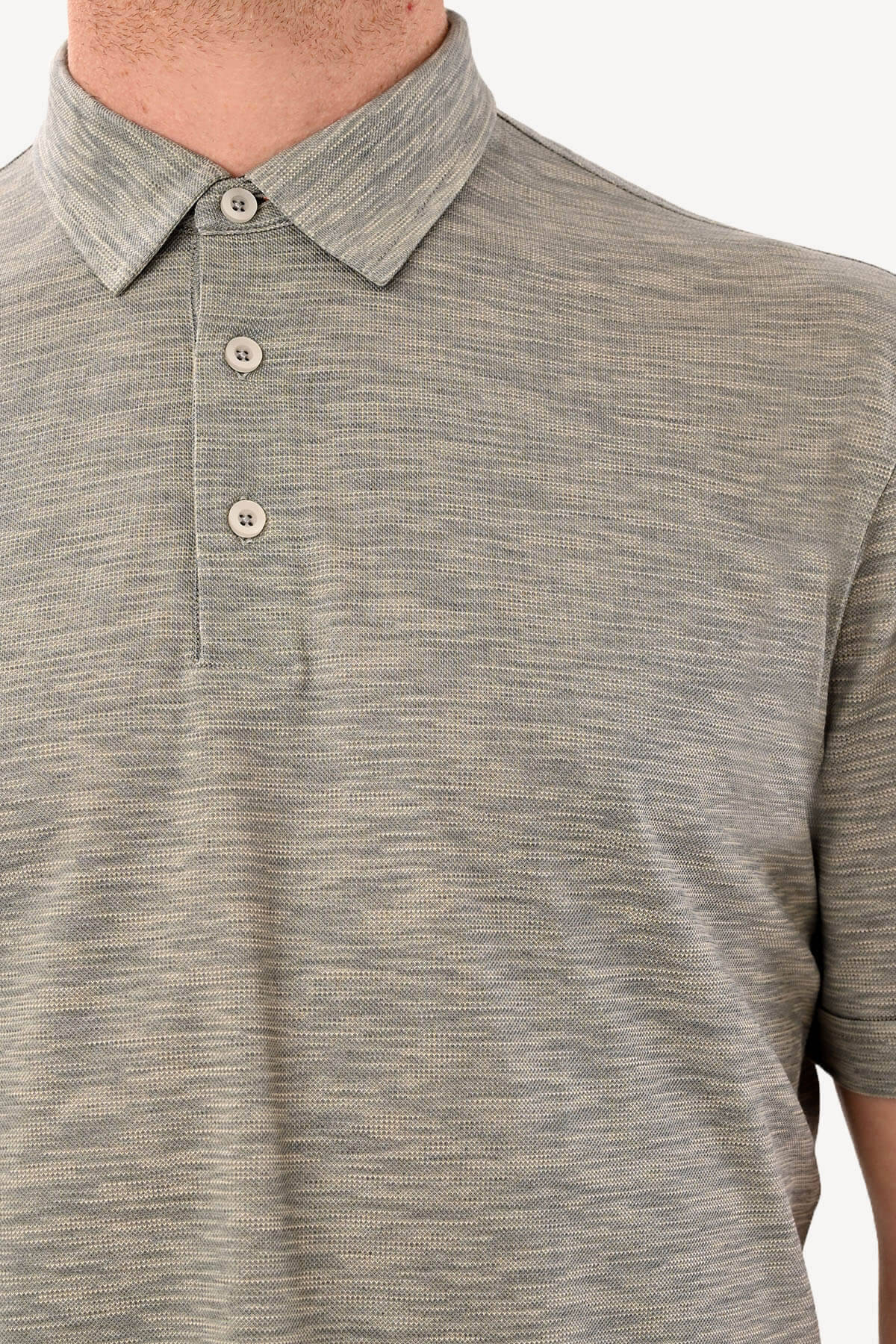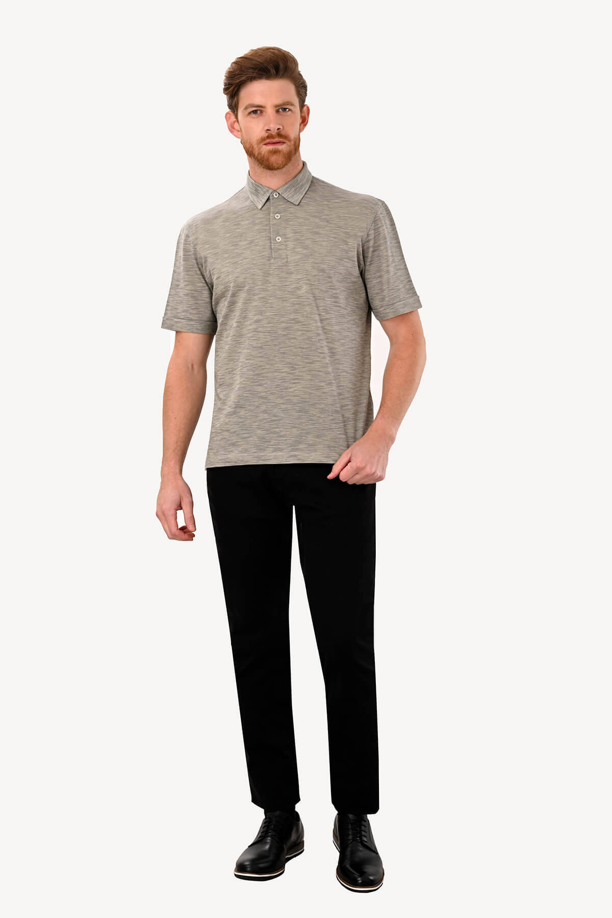 Erkek Açık Gri Polo Yaka Desenli Regular Fit Tshirt