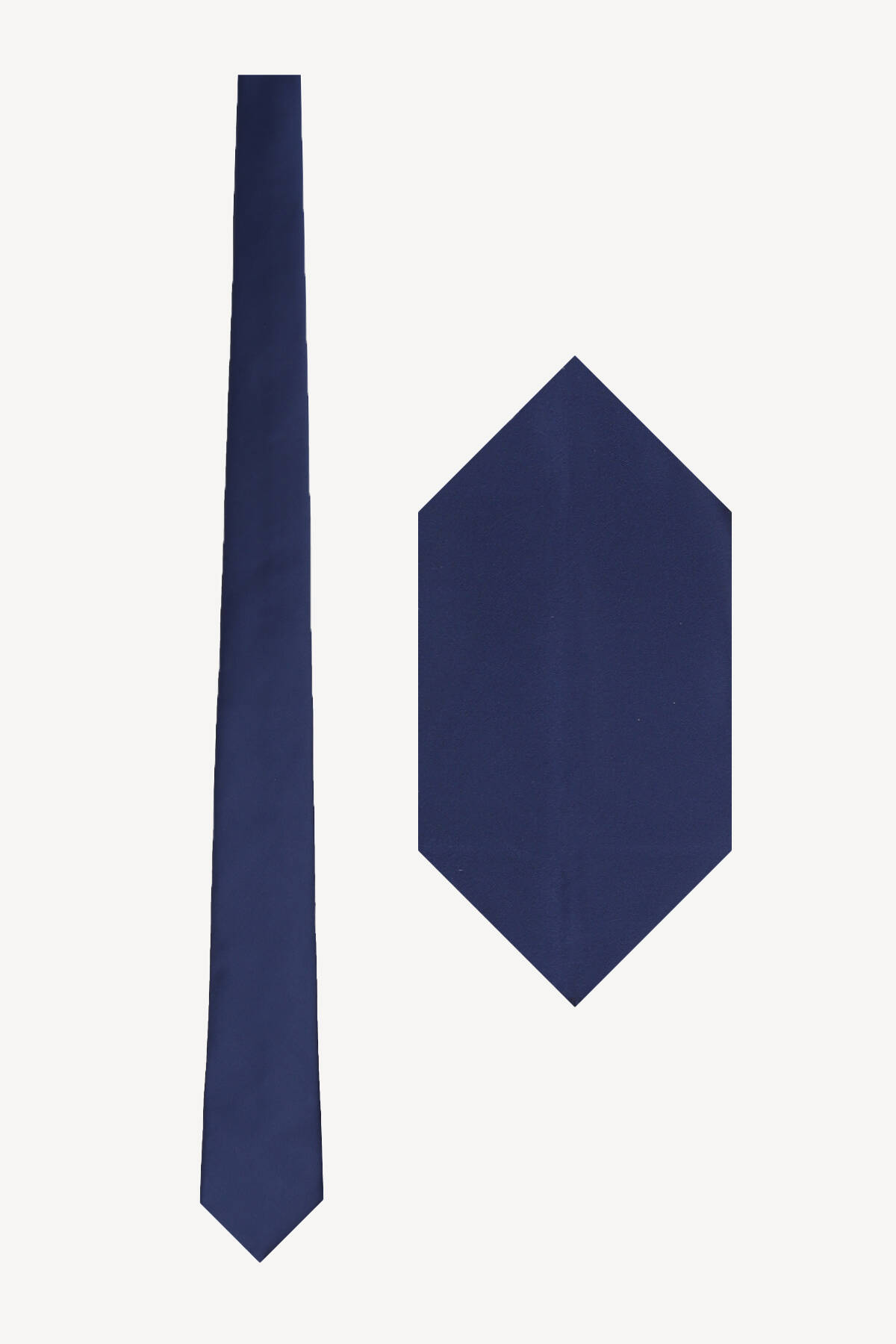 Erkek Lacivert Düz Slim Kravat Mendil Set