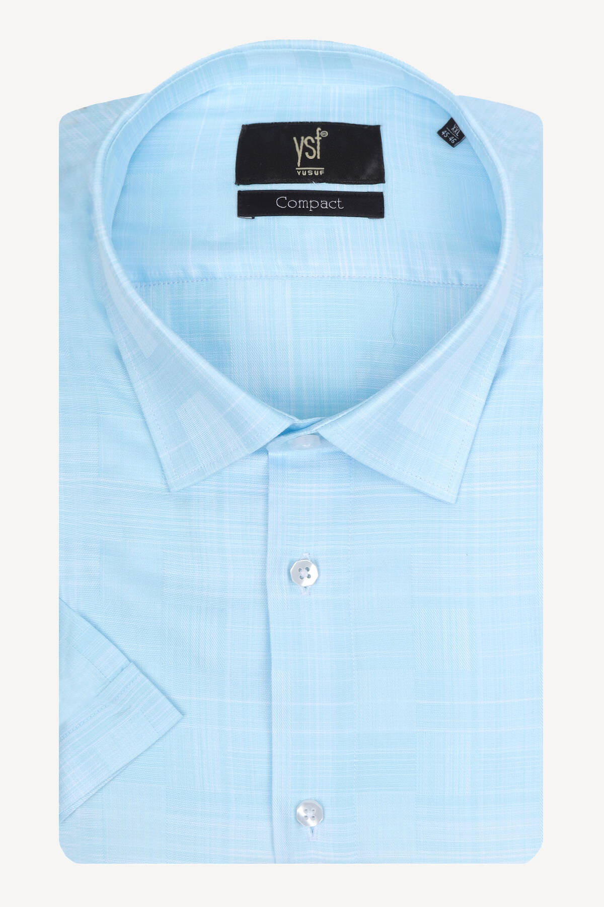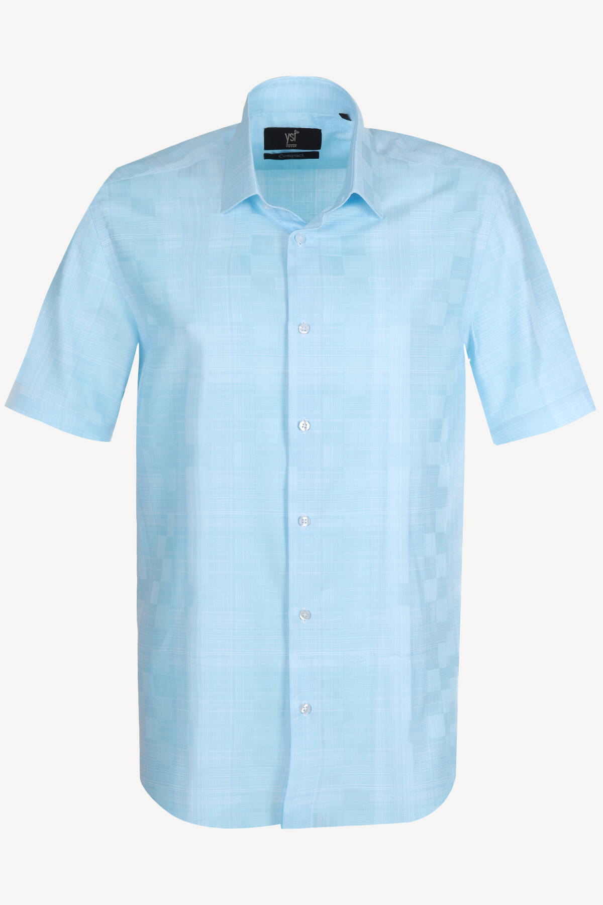 Erkek Açık Mavi Desenli Kısa Kol Gömlek