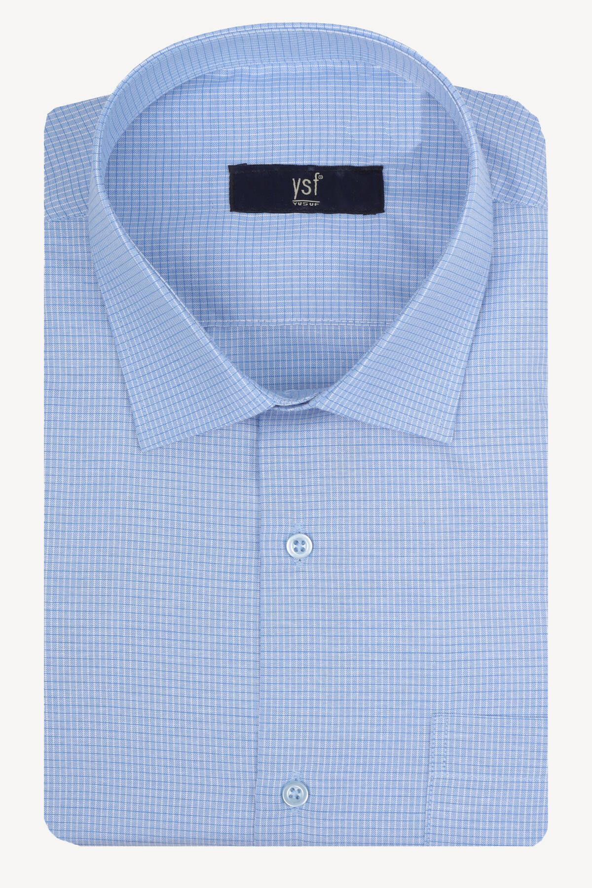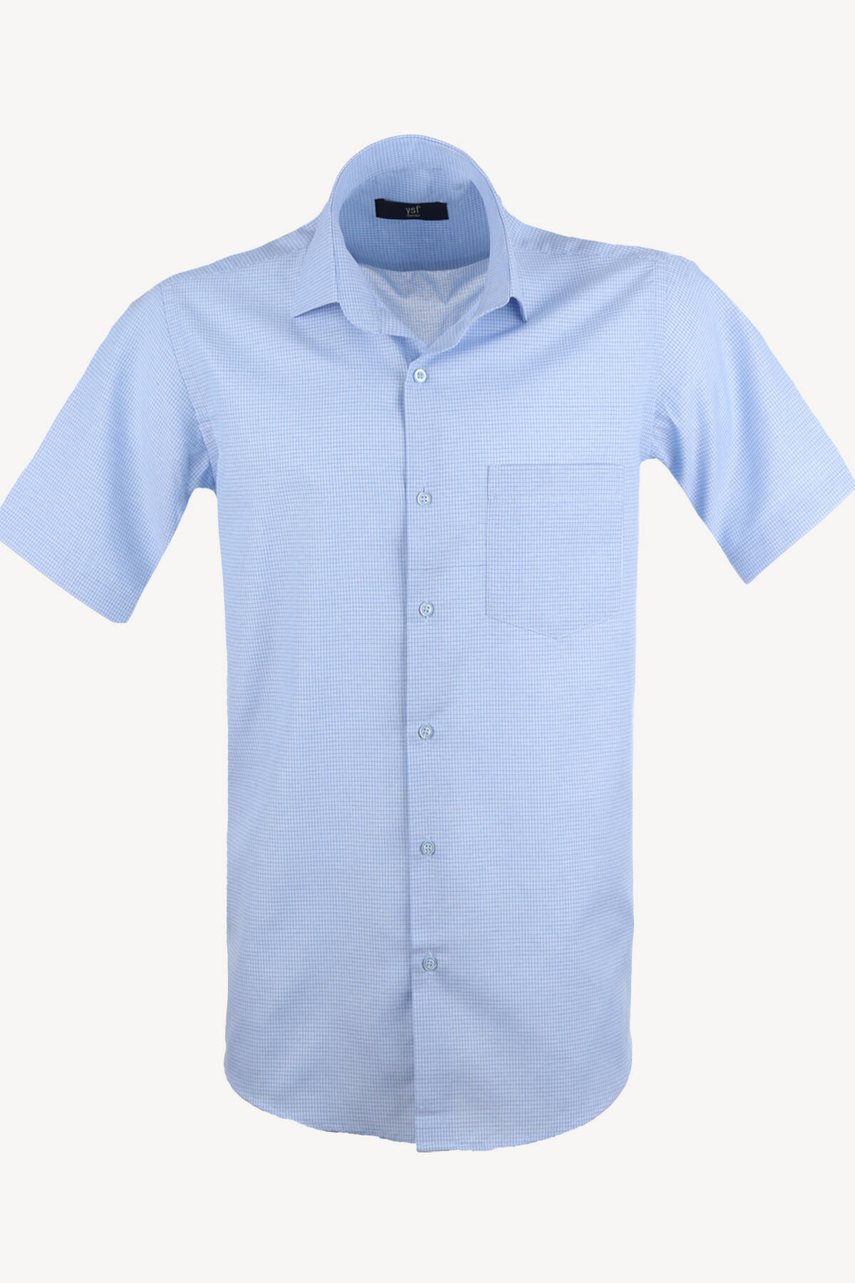 Erkek Açık Mavi Kısa Kol Klasik Desenli Gömlek