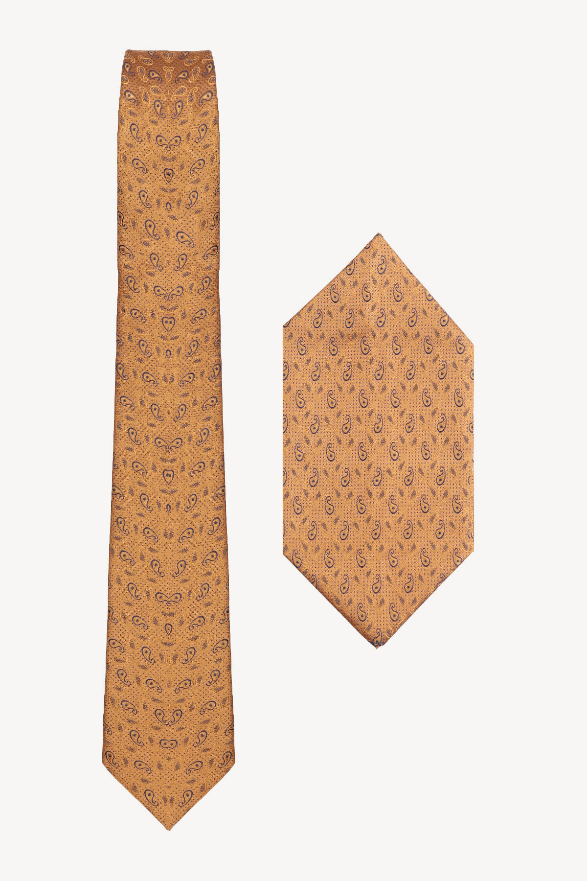 Erkek Kahverengi Kare Desenli Kravat Mendil Set