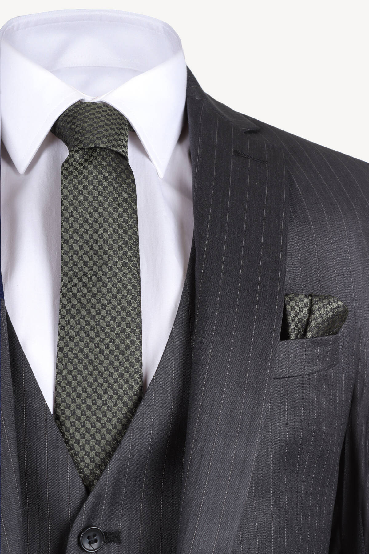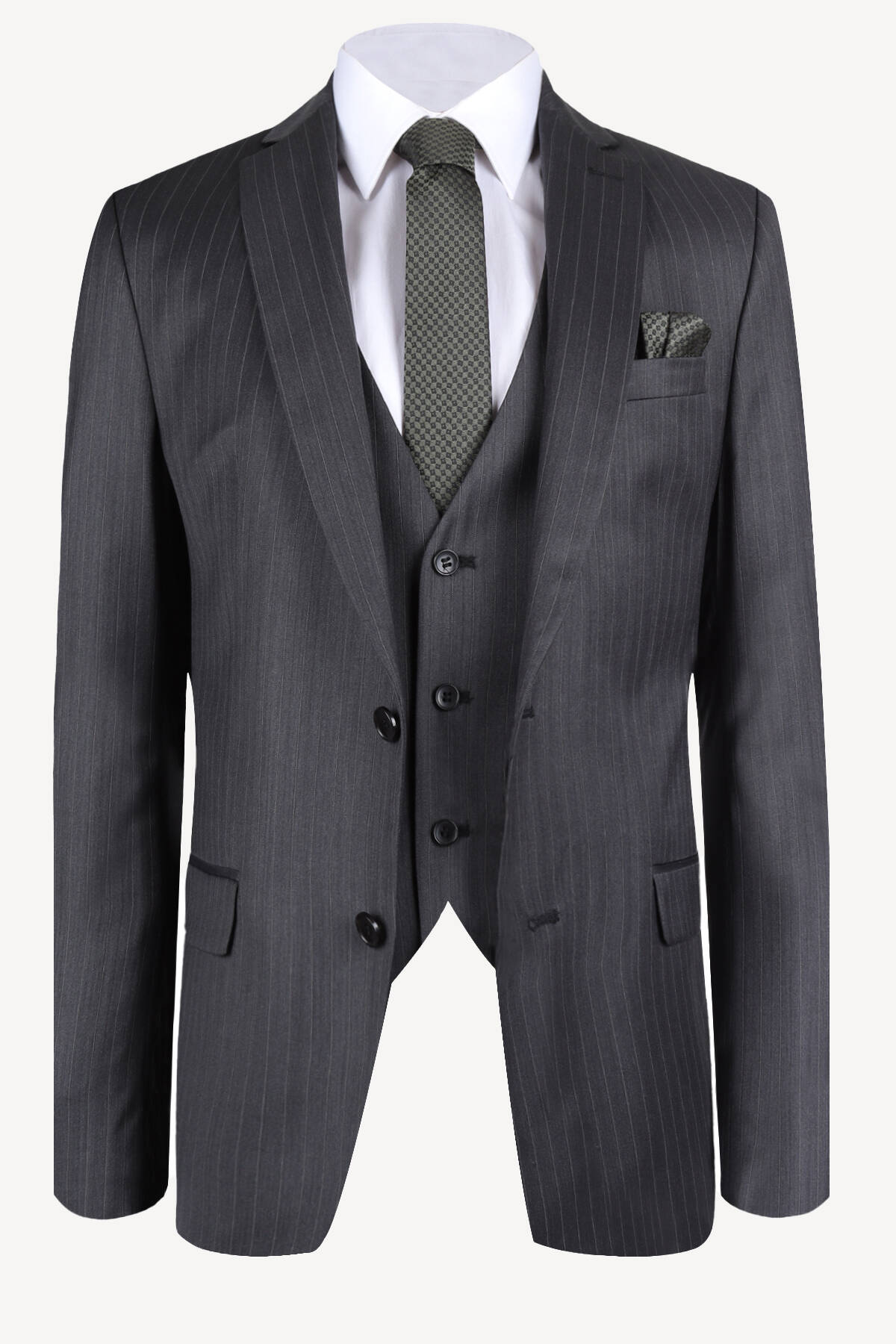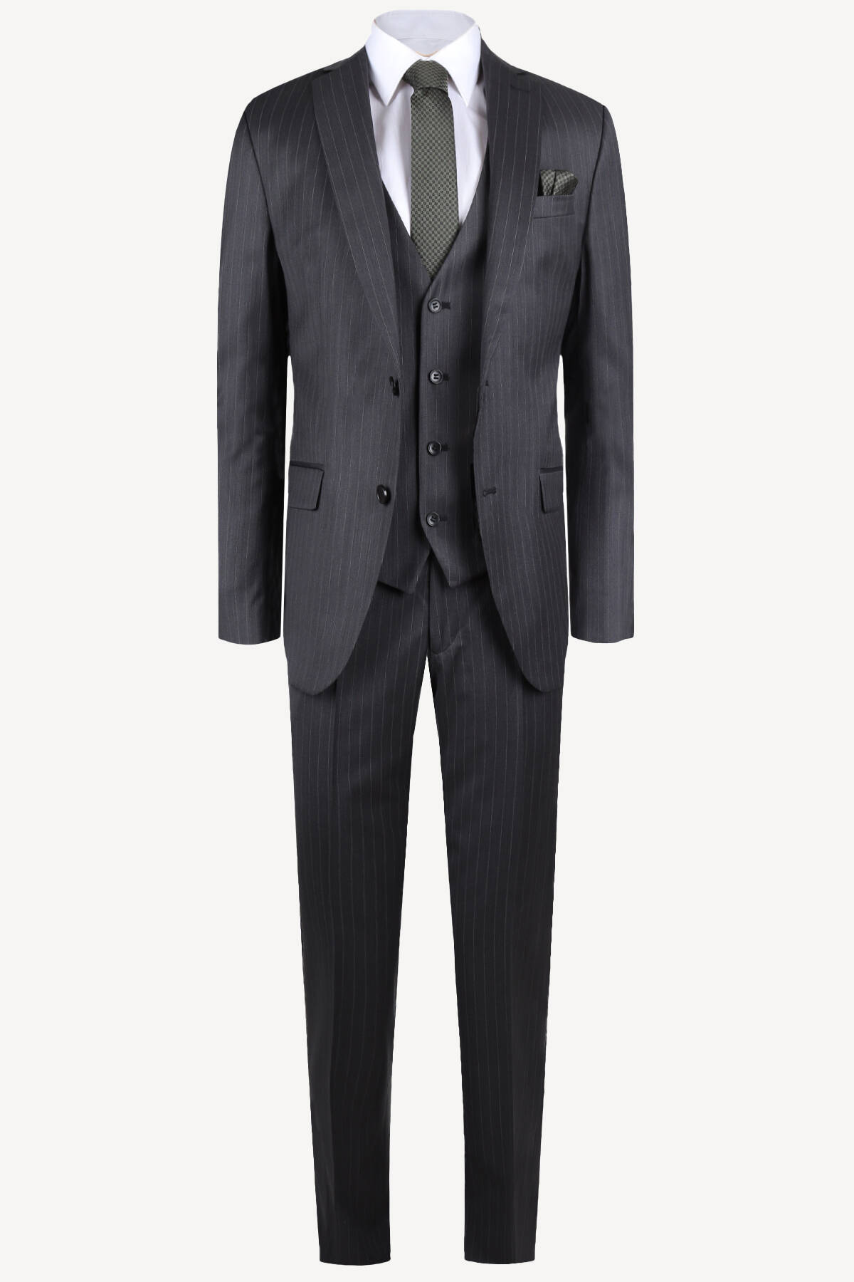 Erkek Antrasit Çizgili Yelekli Slim Fit Takım Elbise