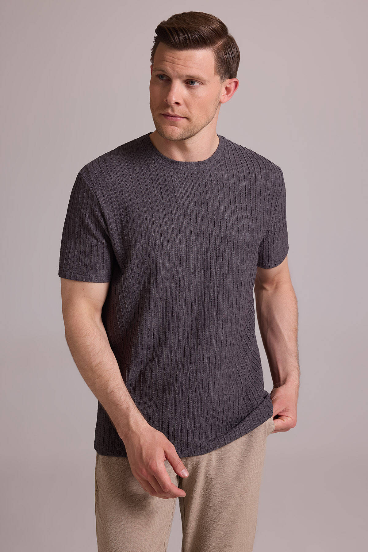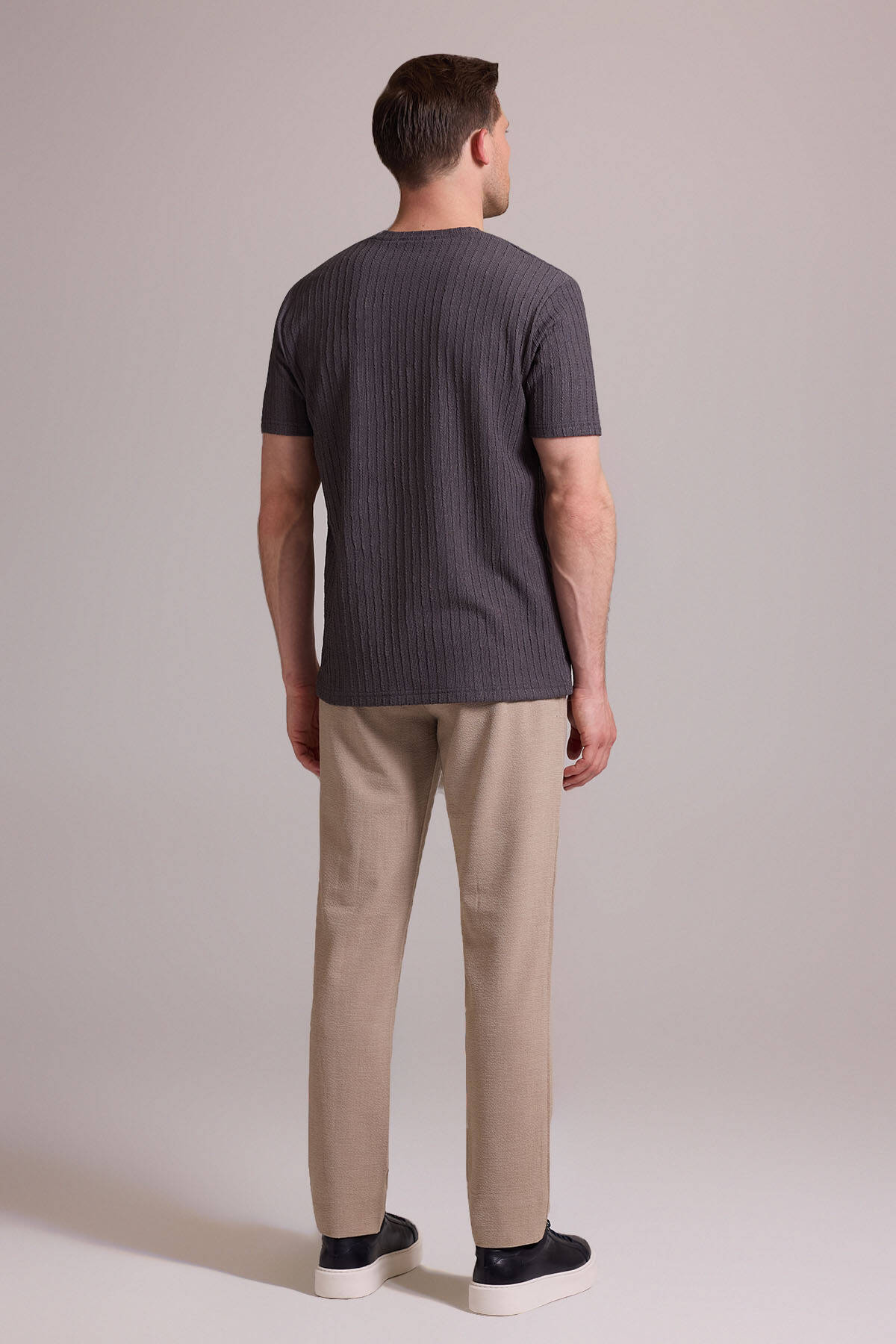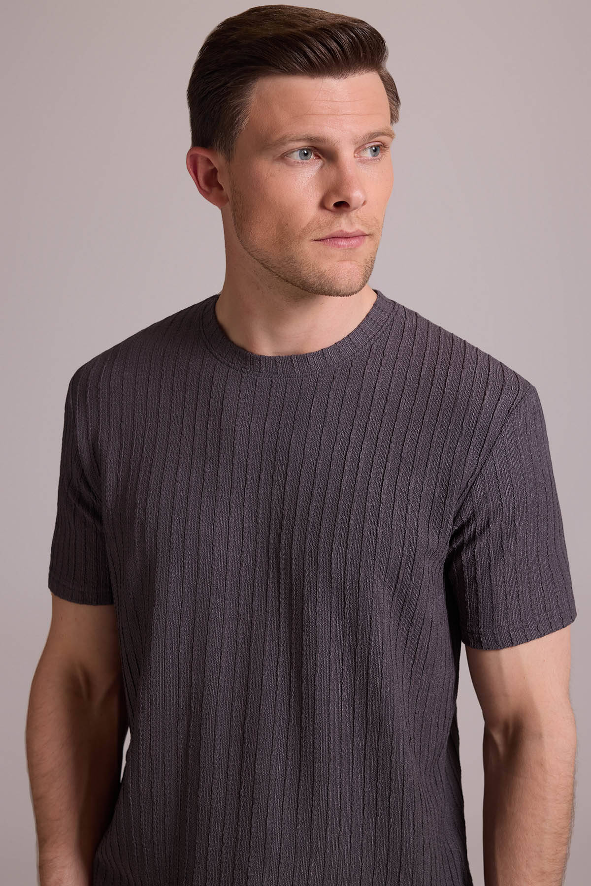 Erkek Antrasit Desenli Bisiklet Yaka T-shirt