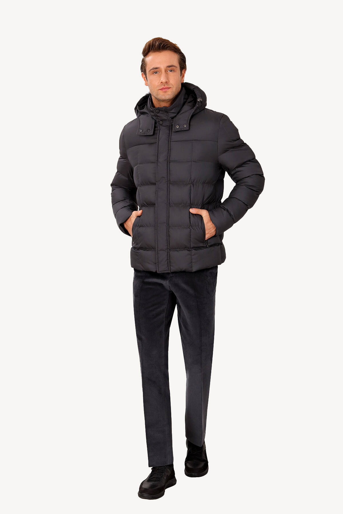 Erkek Antrasit Kapöşonlu Klasik Kaban