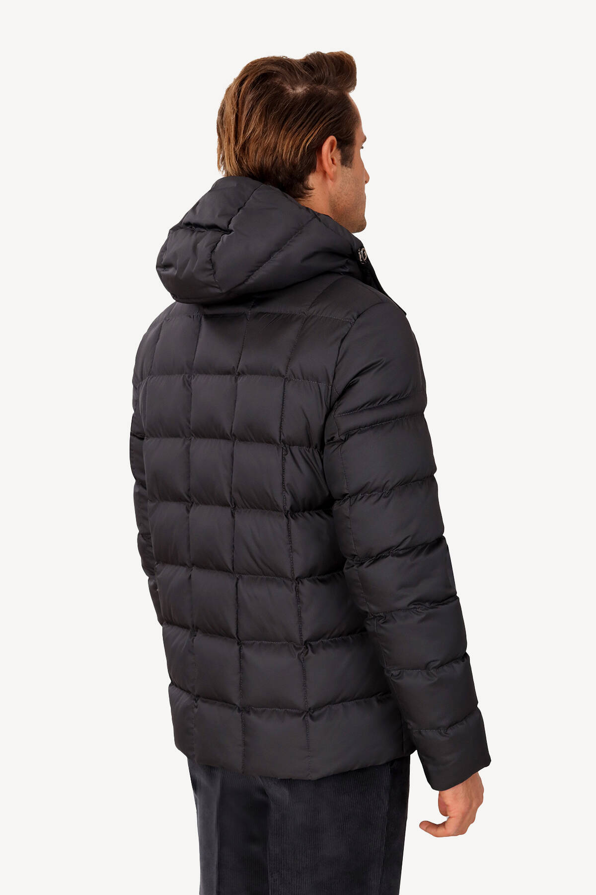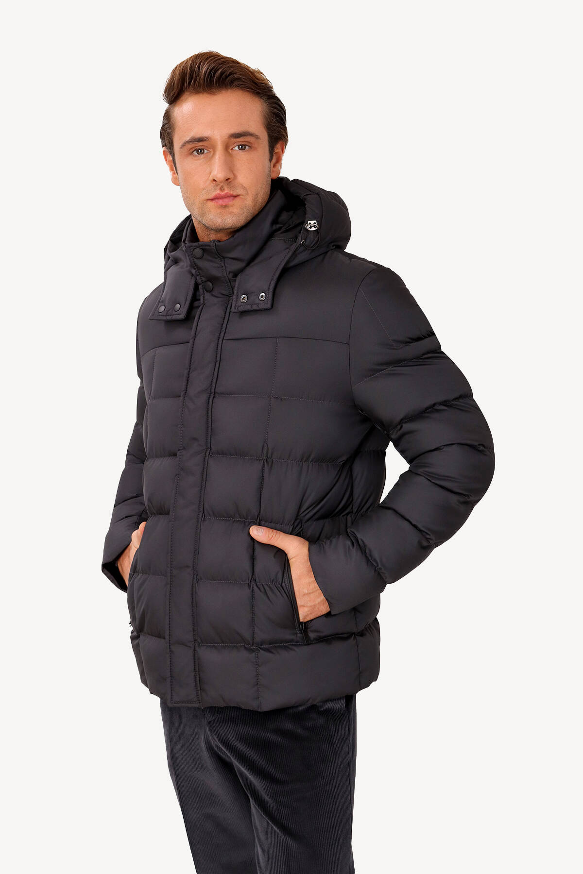 Erkek Siyah Kapüşonlu Klasik Kaban