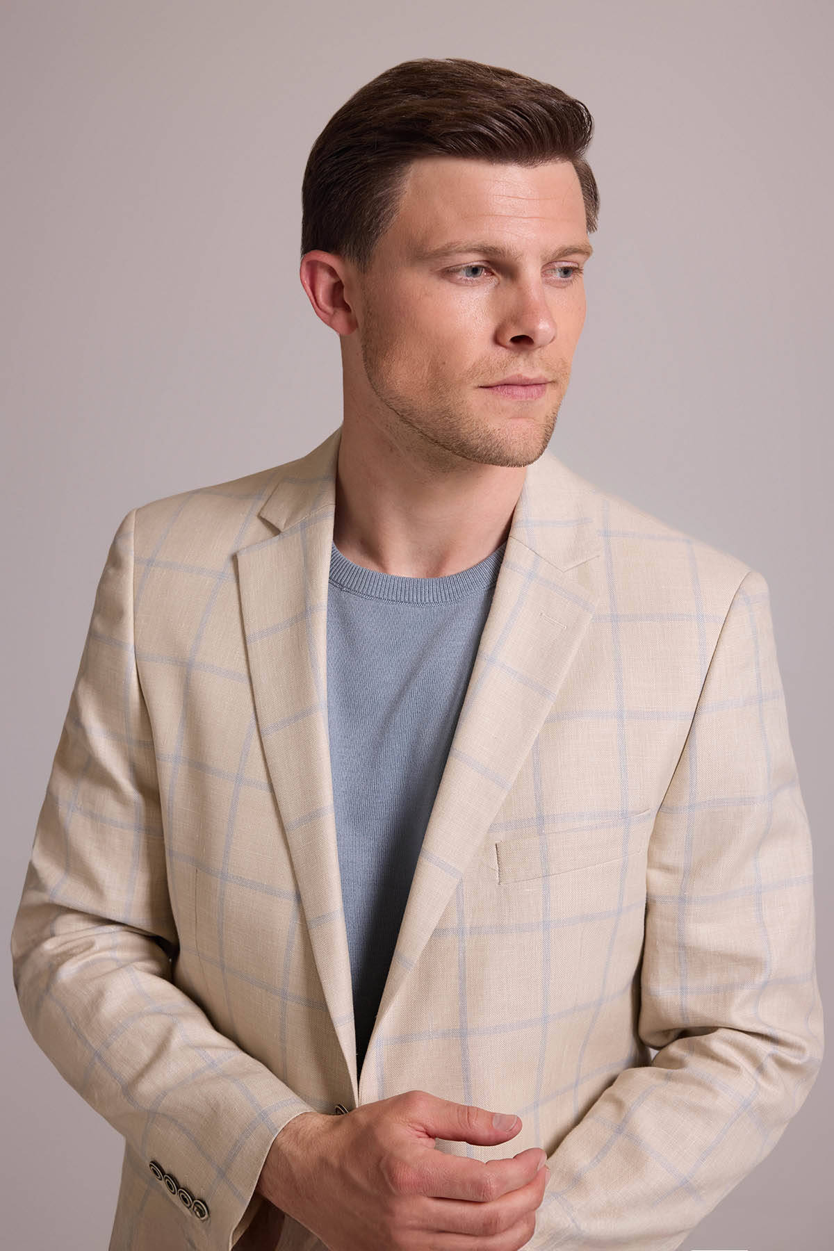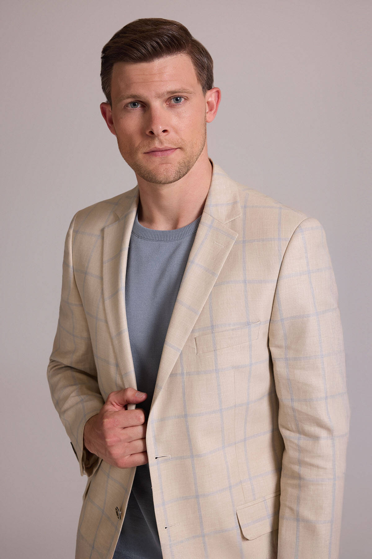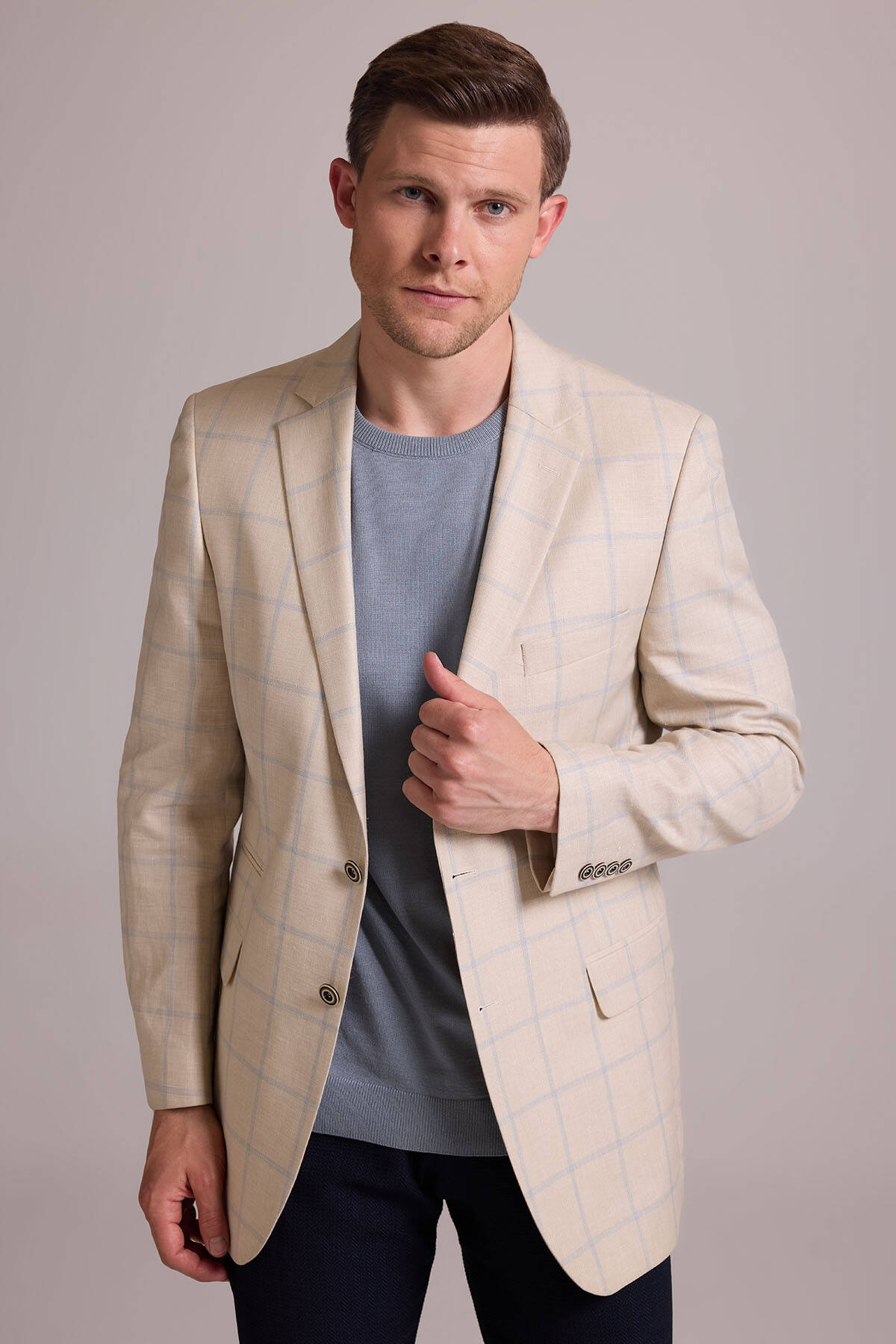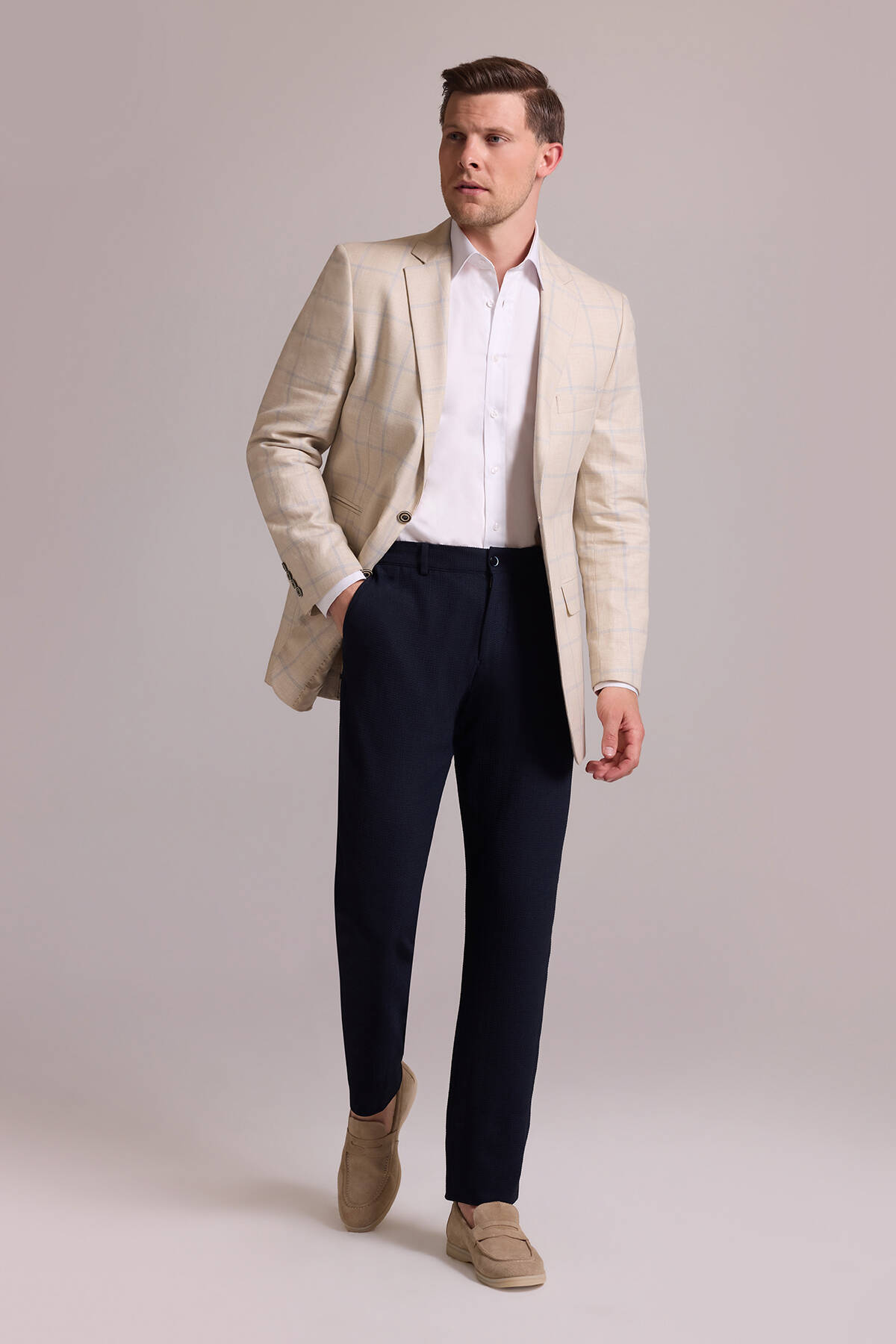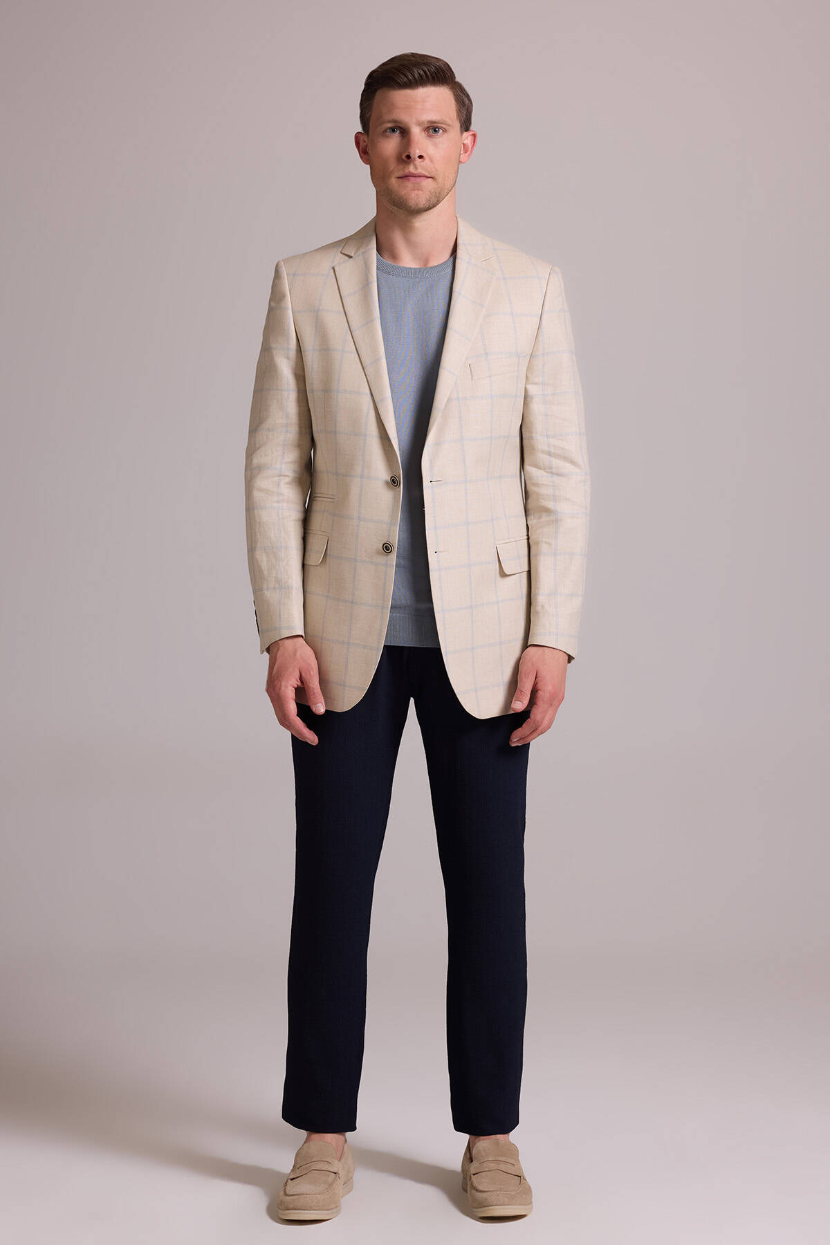 Ekose desen ceket, çok yönlü kesimi ve birinci sınıf kumaşıyla şık-rahat stili tercih eden her erkeğin dolabında bulunması gereken bir parçadır. Bej ve açık mavinin sofistike birleşimini yansıtan desenleri ise yaz boyunca tüm etkinliklerde ayırt edici bir şıklıkla öne çıkmanızı sağlar. Sessiz lüks yaz stili için ceketi, açık mavi slim fit gömlek, vizon rengi kumaş pantolon ve lacivert casual ayakkabı modelleri ile eşleştirebilirsiniz. Sportif-lüks tarzın hakkını verebilmek için koyu kahverengi ve lacivert tonlarından oluşan cep mendili de kullanabilirsiniz. YSF Giyim, sezonun en zarif erkek keten ceket modellerini en özel fiyatlarla sunar. Siz de stil duygunuzu en çok yansıtan erkek keten ceketleri YSF Giyim ayrıcalıklarıyla satın alabilir, özel değişiklikler için mağazayı ziyaret edebilirsiniz!
