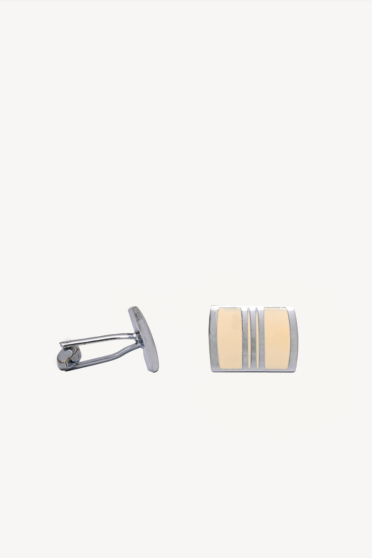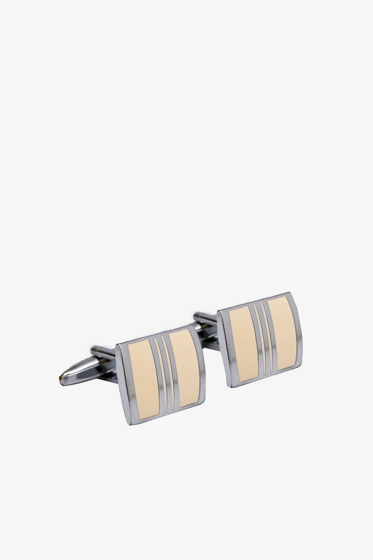 Erkek Bej Kare Metal Desenli Kol Düğmesi