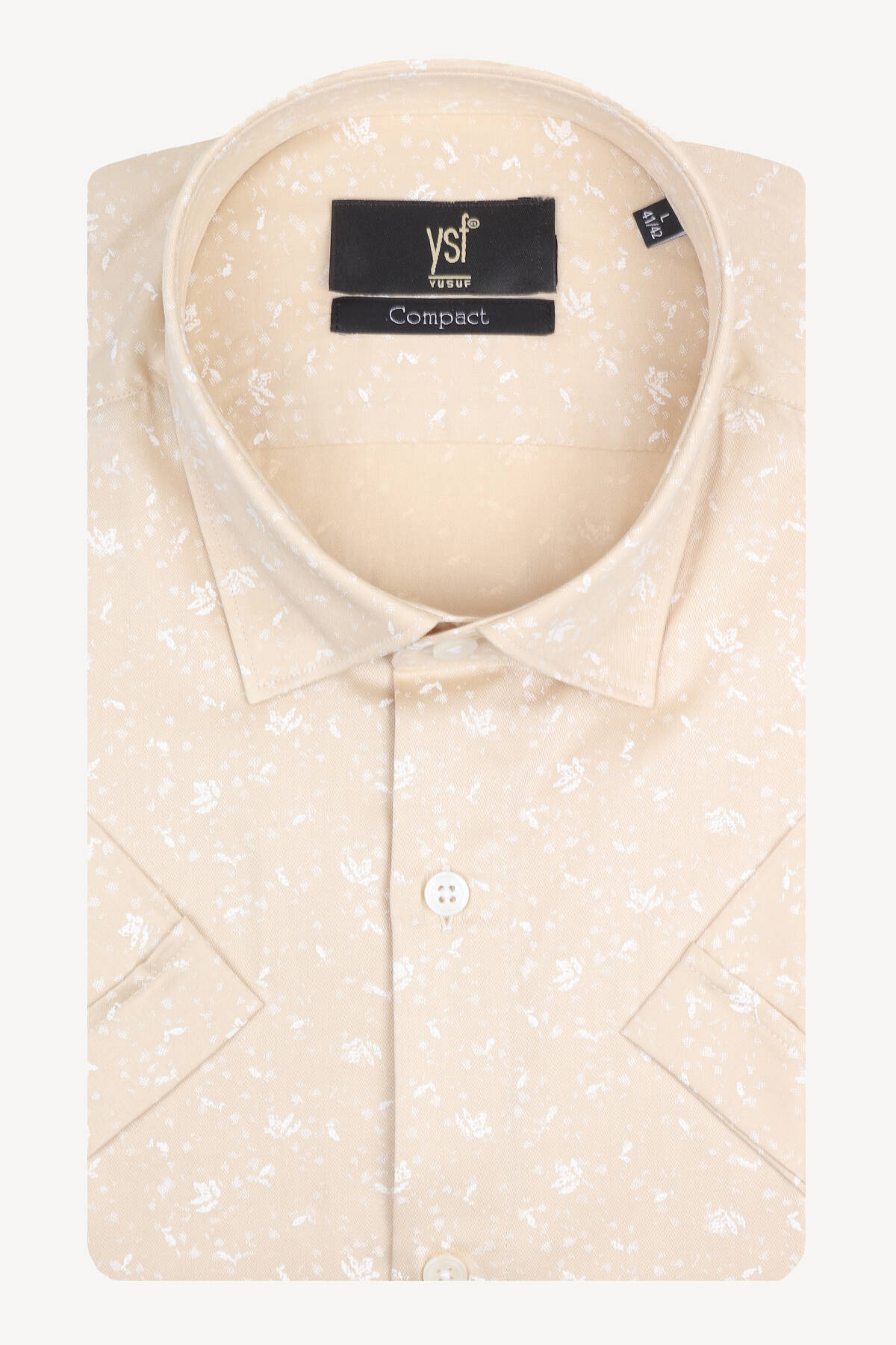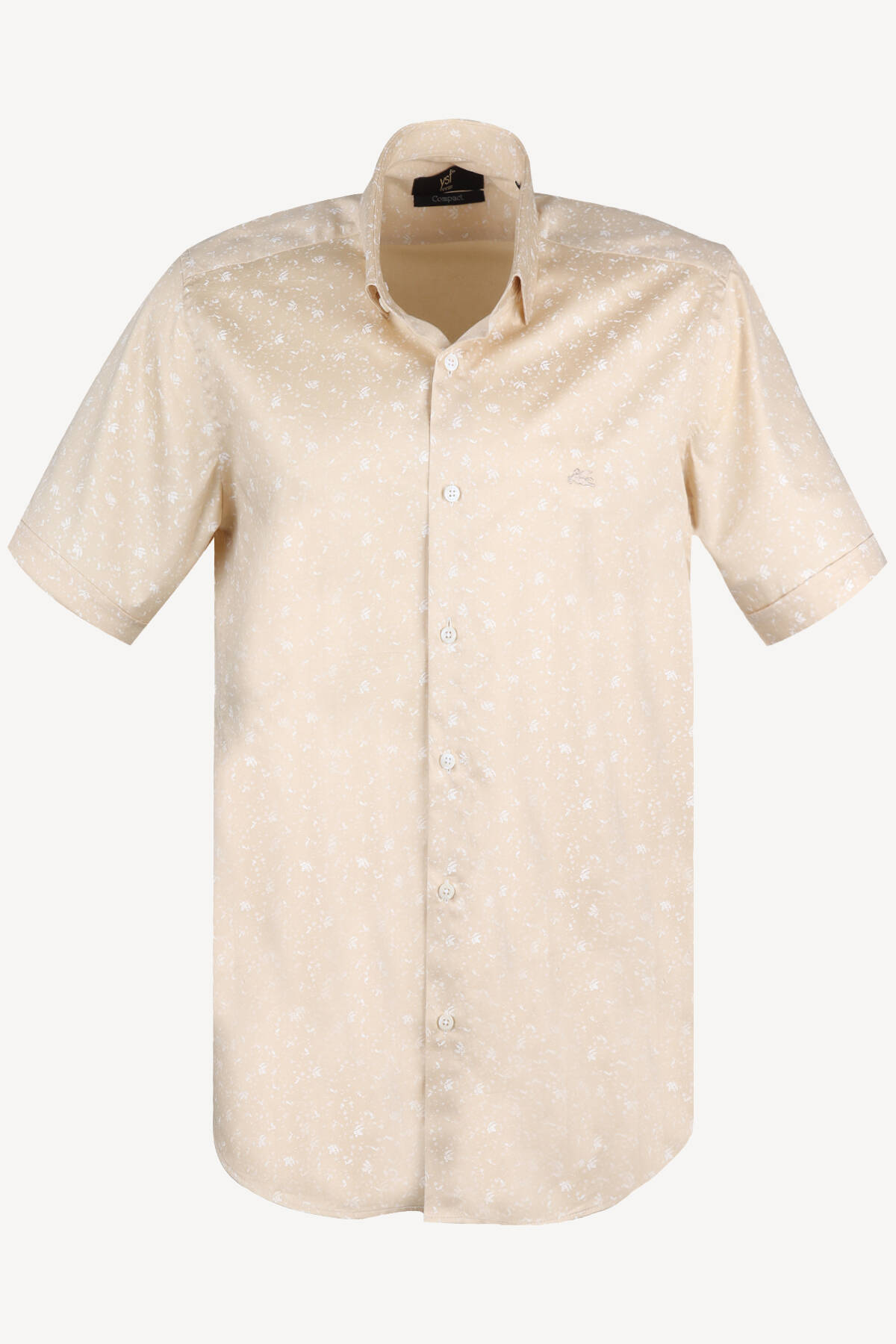 Erkek Bej Kısa Kol Desenli Slim Fit Gömlek