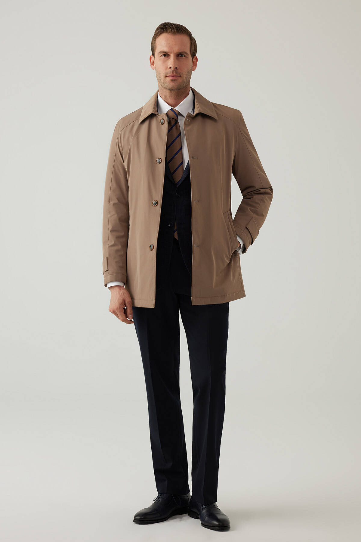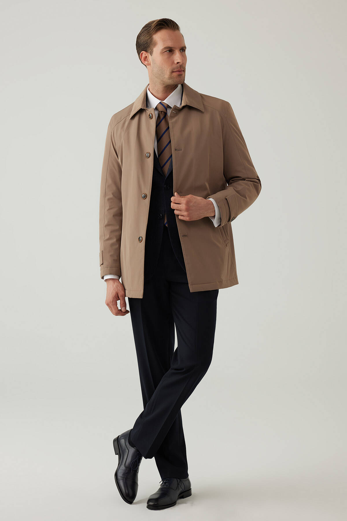 Erkek Bej Regular Fit Apolet Kol Kaban