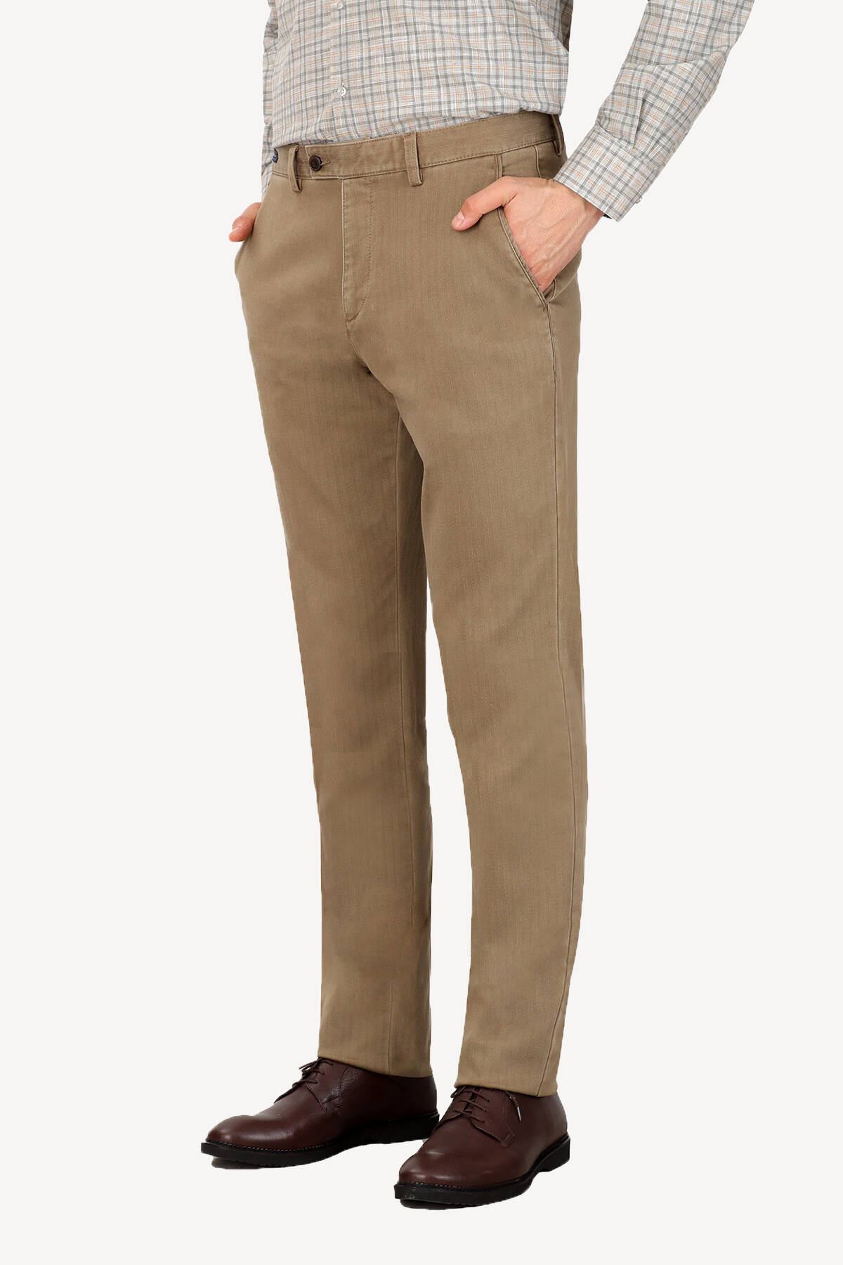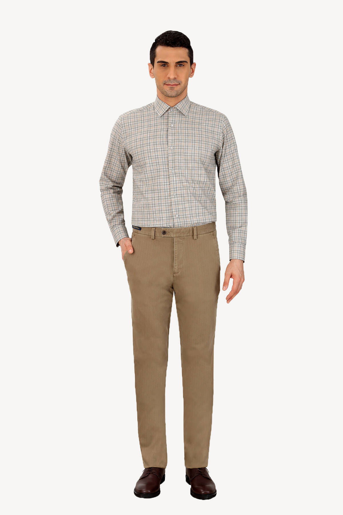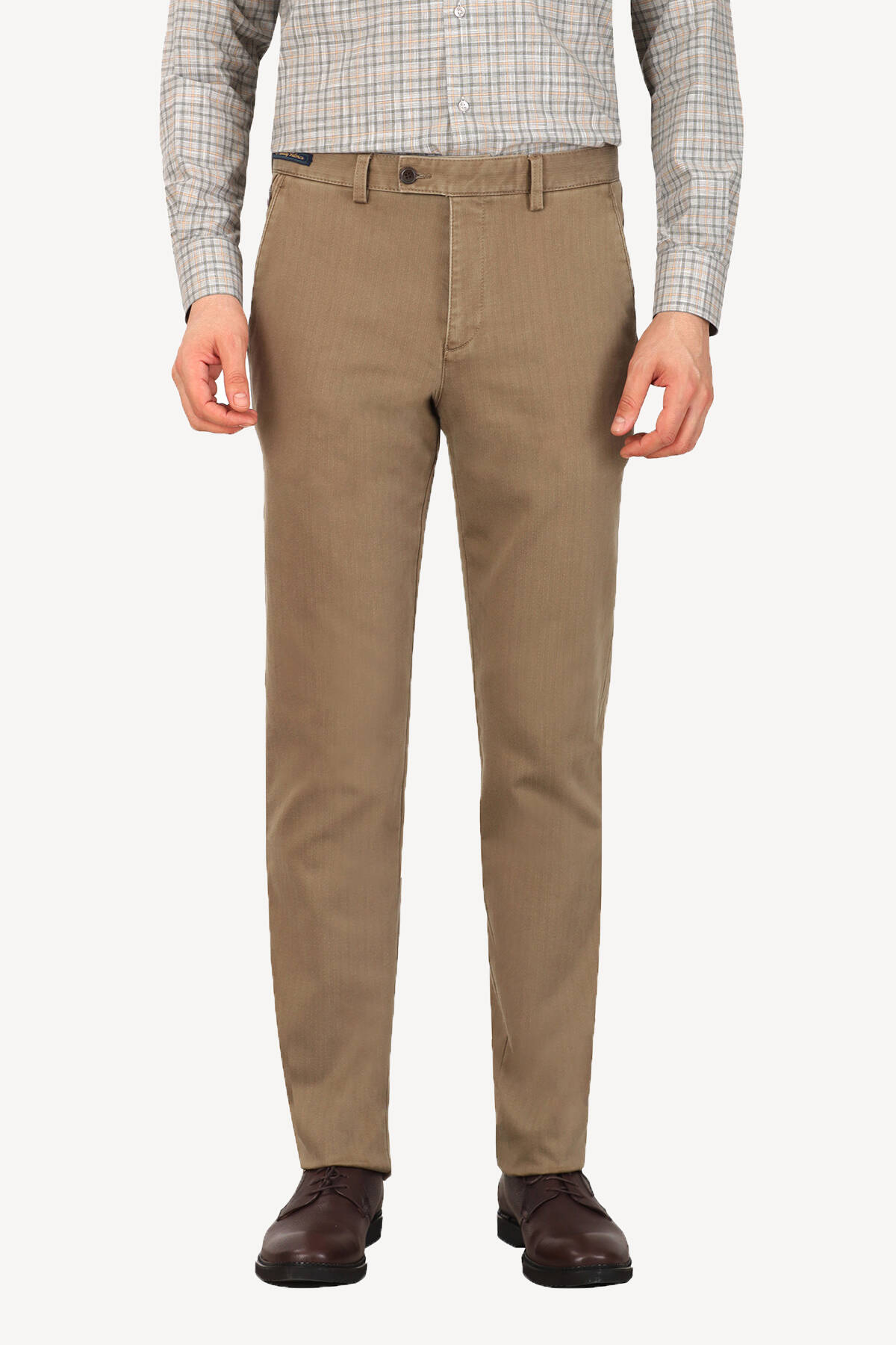 Erkek Bej Regular Fit Kanvas Spor Çizgili Pantolon