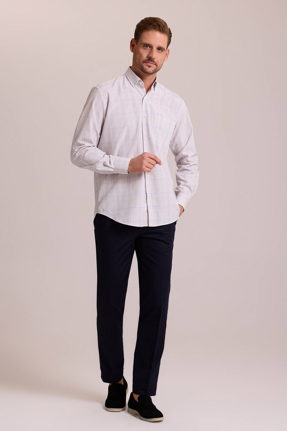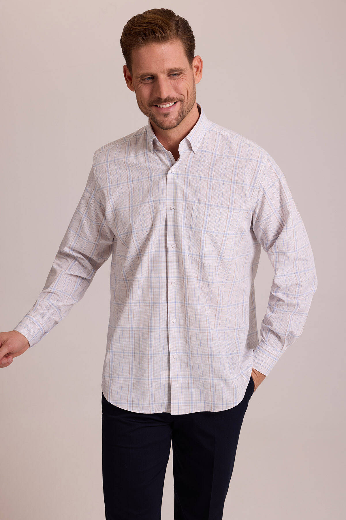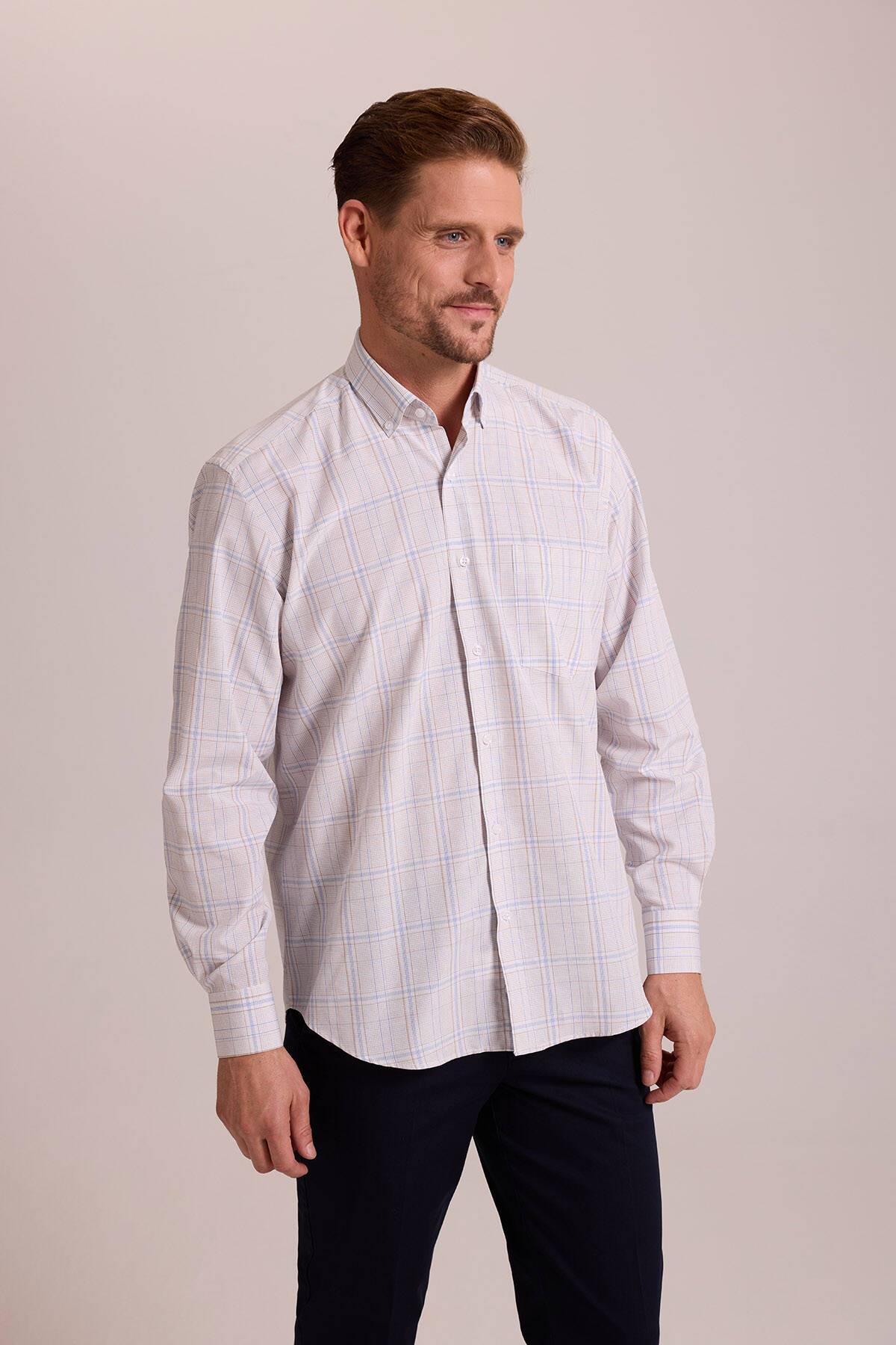 Gelince Haber VerYSF Giyim Erkek Bej Regular Fit Kareli Düğmeli Yaka Pamuklu Gömlek, her modern tarza kolayca uyum sağlayabilen joker bir parçadır. En üst düzey şık-rahat görünüme ulaşabilmeniz için %100 saf pamuk liflerinden tasarlanmıştır. Yumuşak ve cildinize karşı son derece hassas olan pamuk tuşesi, en sıcak havalarda dahi rahatlıkla kombinlenebilir. Erkek kareli gömlek, spor tarzdan ilham alan kareli desenler ile günlük tarzınıza dinamik bir ambiyans katar. Preppy-şık kombinler için temel oluşturan bu parça geleneksel kareli desenleri ile en minimal stilleri dahi canlandırabilir. Büyük beden spor kombinler için 4XL’a varan geniş yelpazeye sahip gömlek her stil sahibi erkeğin ihtiyaçlarına cevap verebilir.