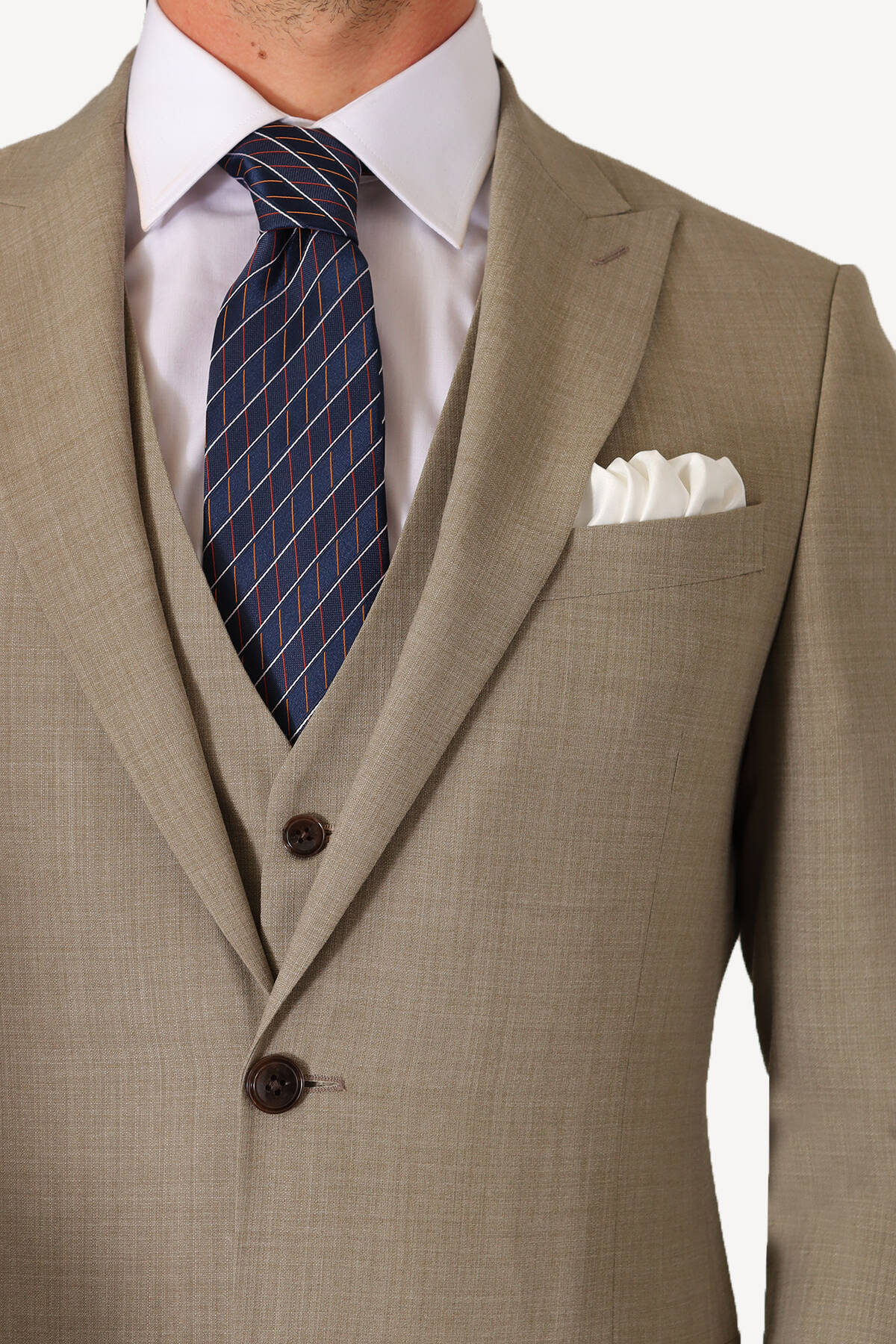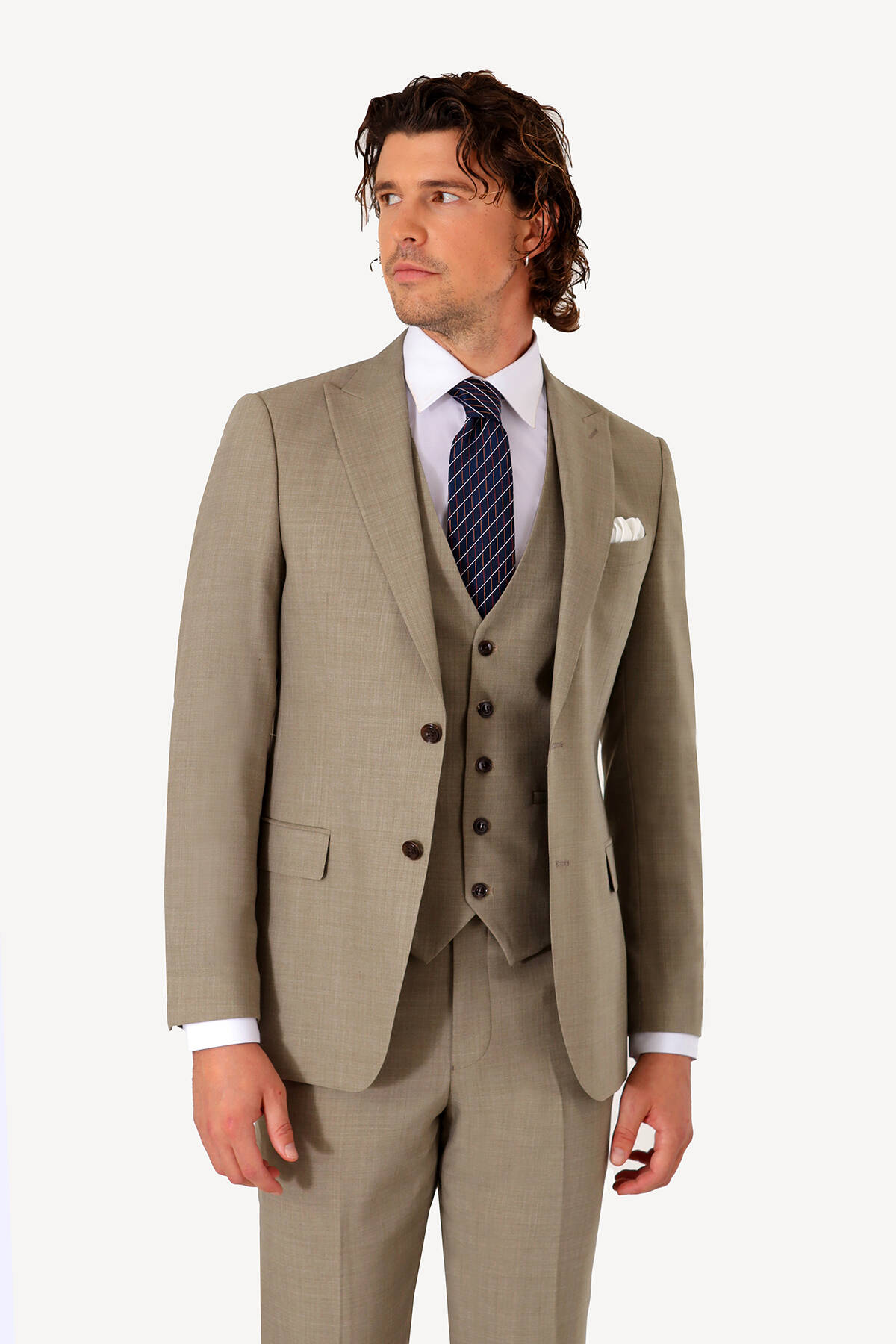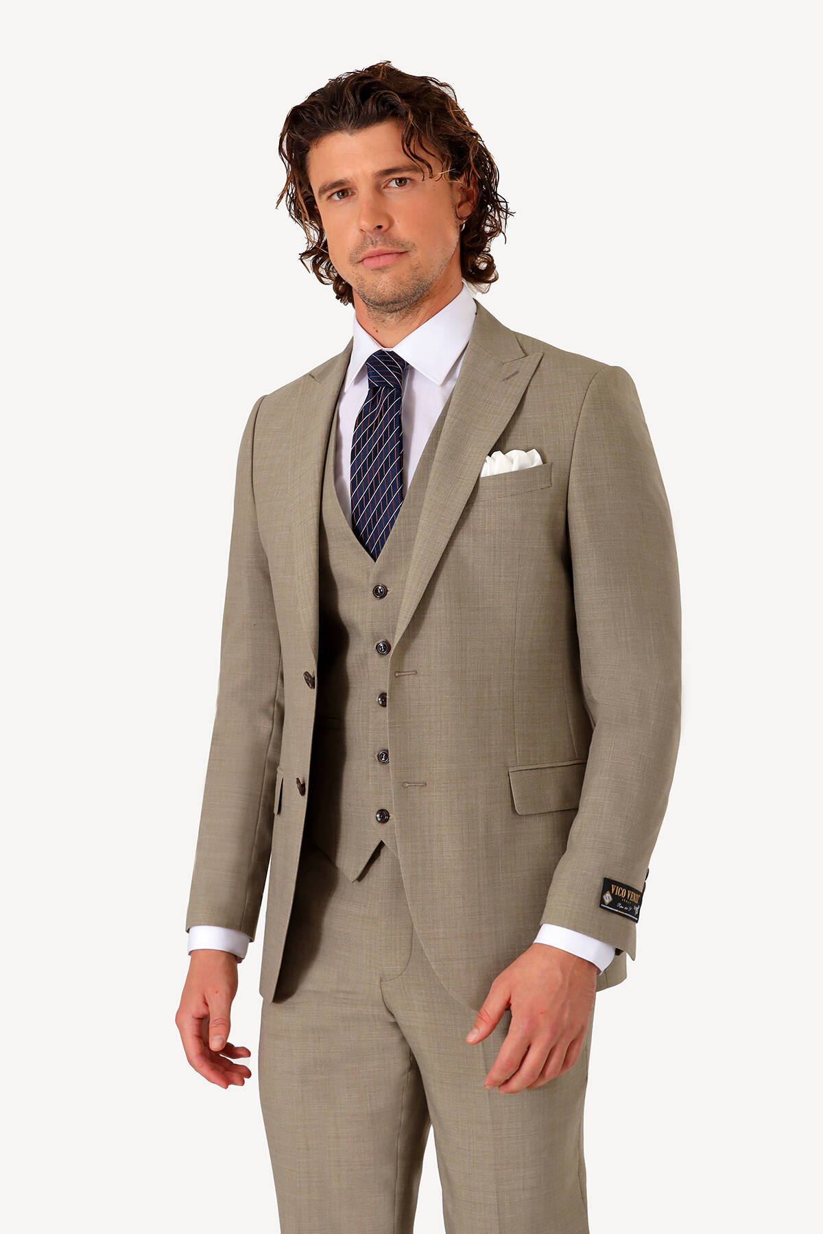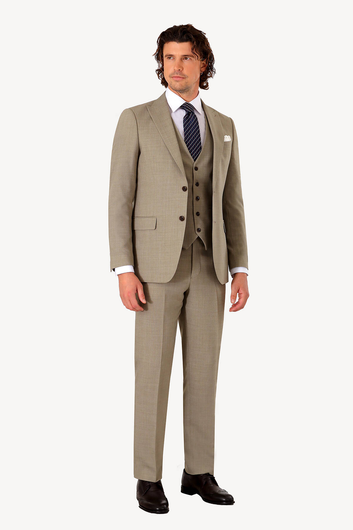 Erkek Bej Mono Yaka Regular Fit Takım Elbise