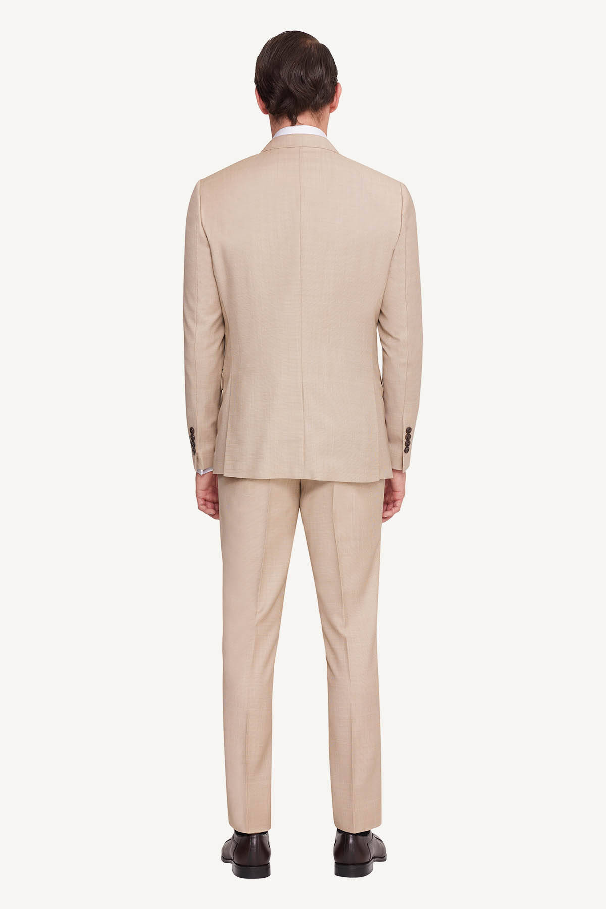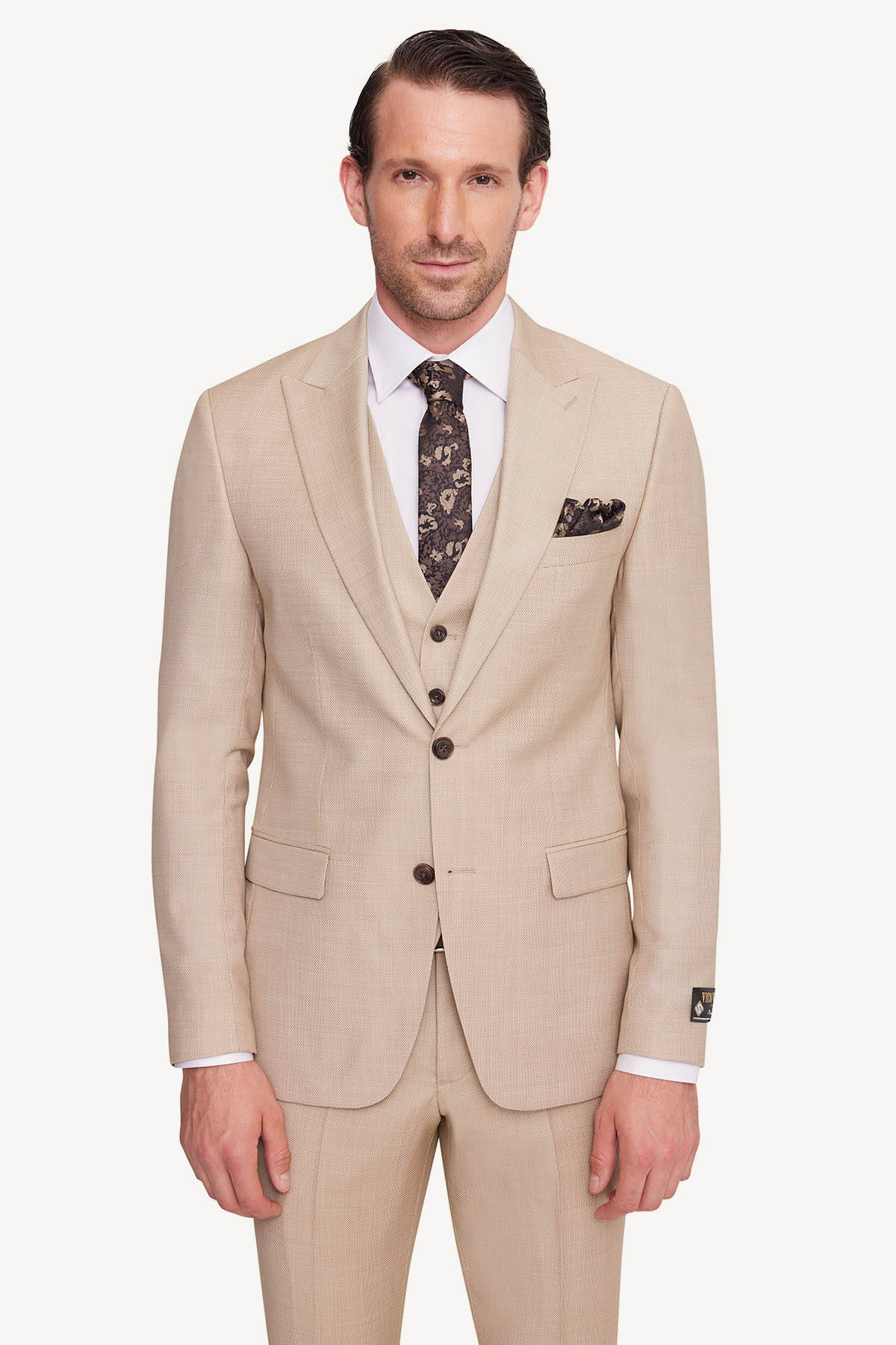 Erkek Bej Slim Fit Sivri Yaka Takım Elbise