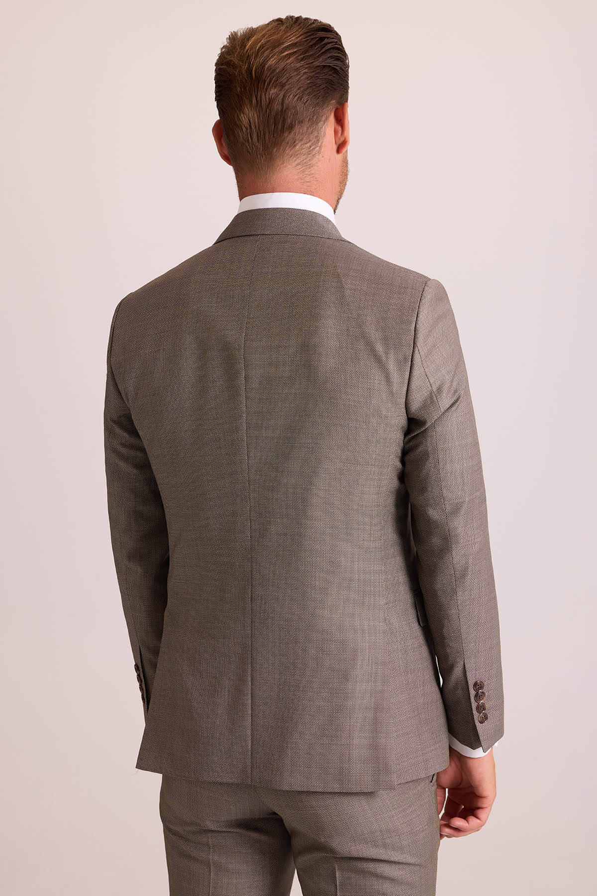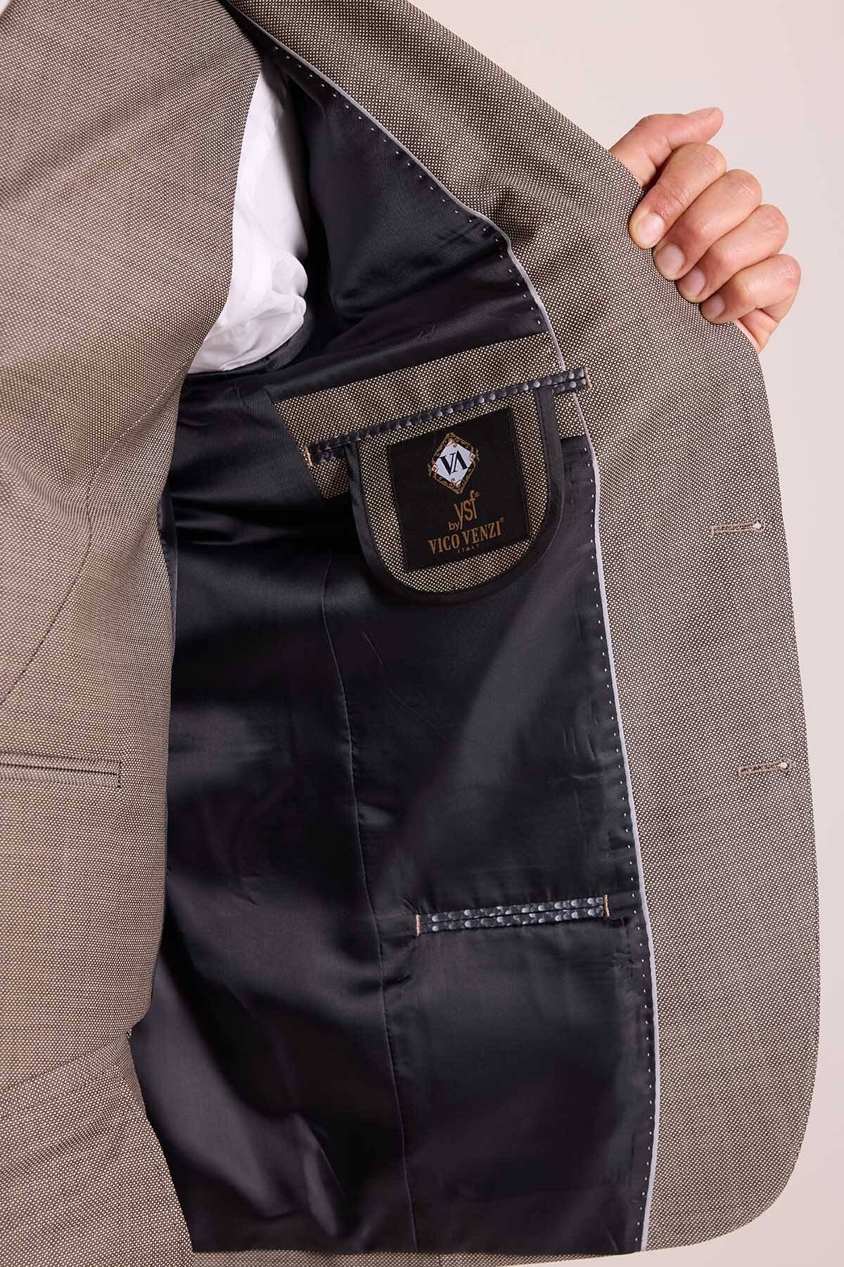 Erkek Bej Slim Fit Sivri Yaka Takım Elbise