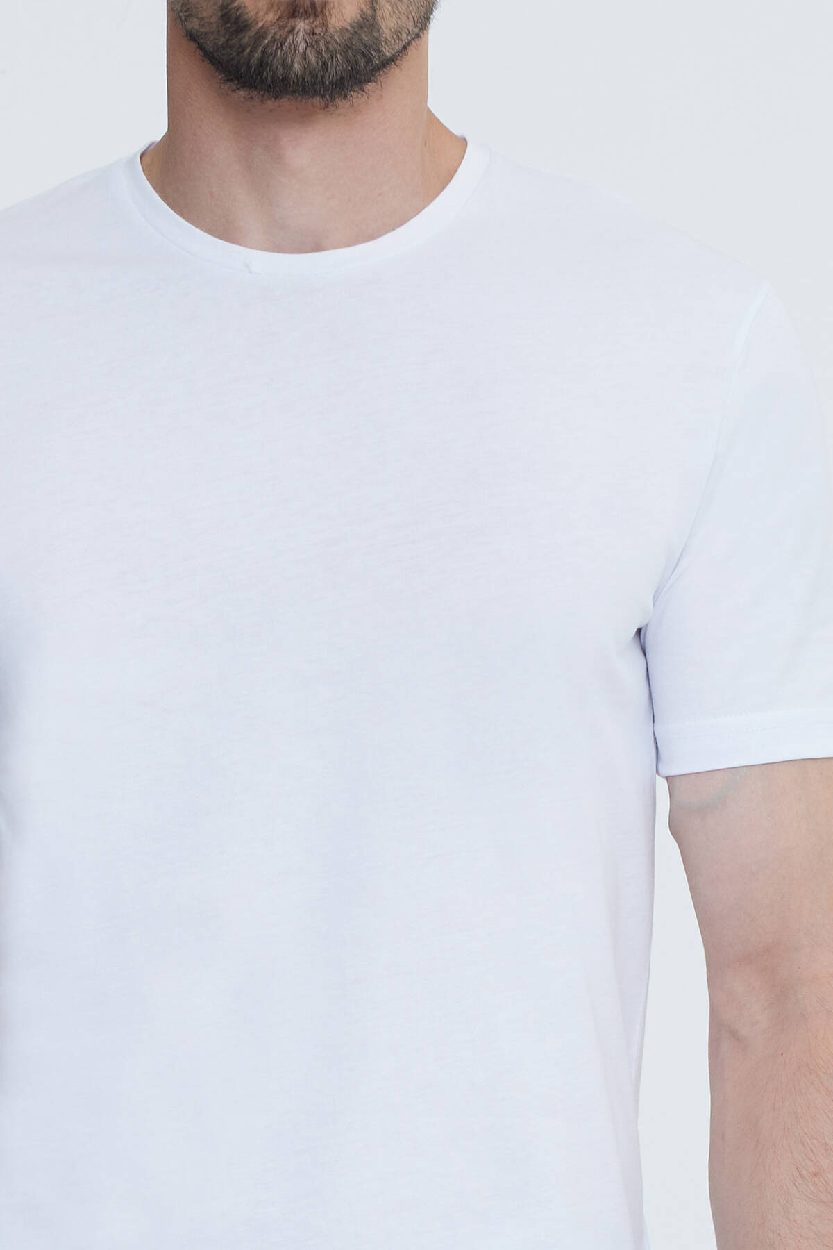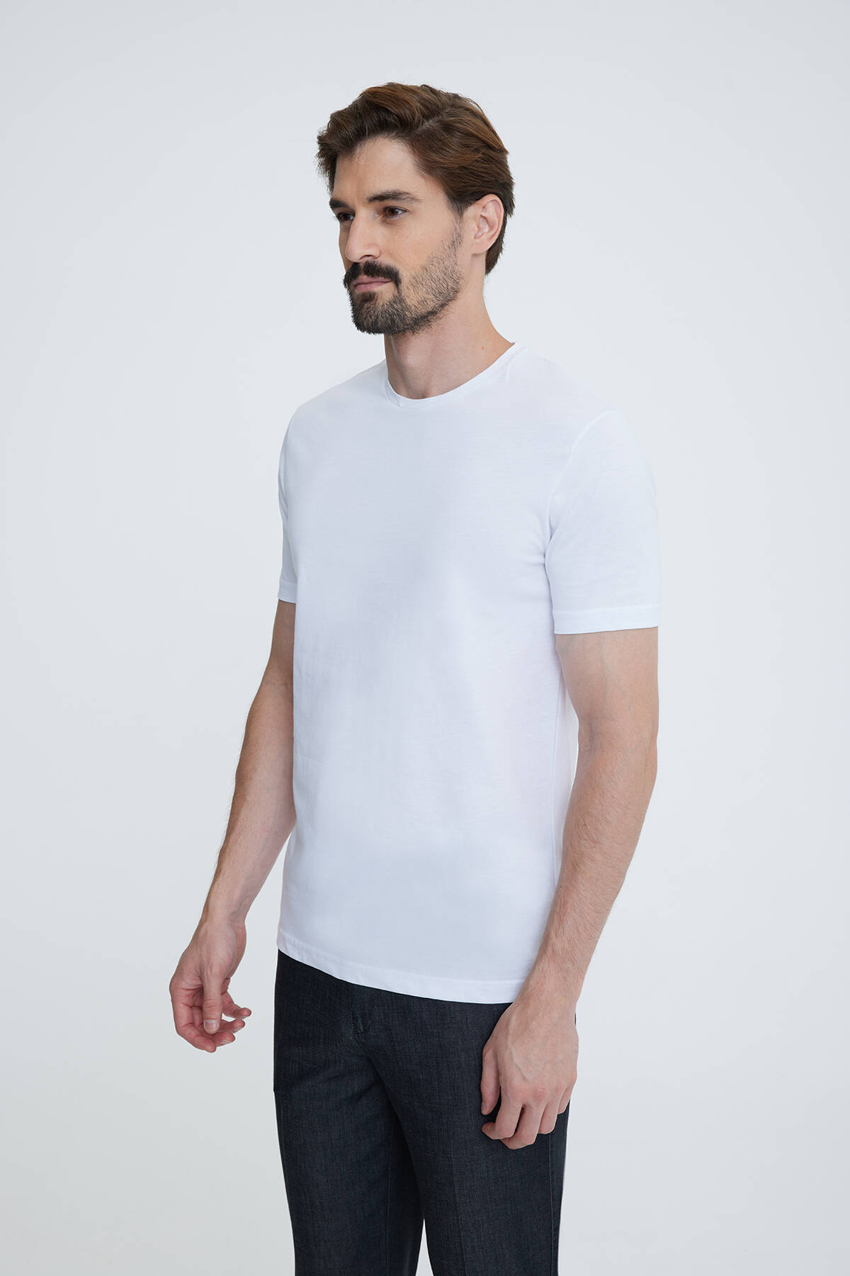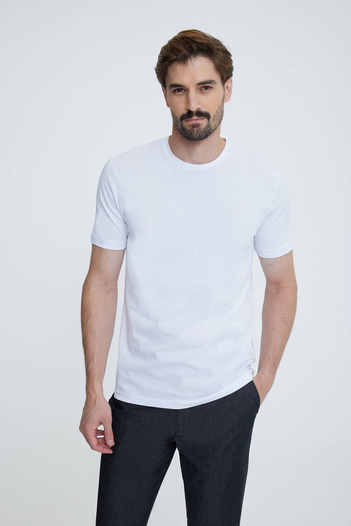 Erkek Beyaz Bisiklet Yaka T-shirt