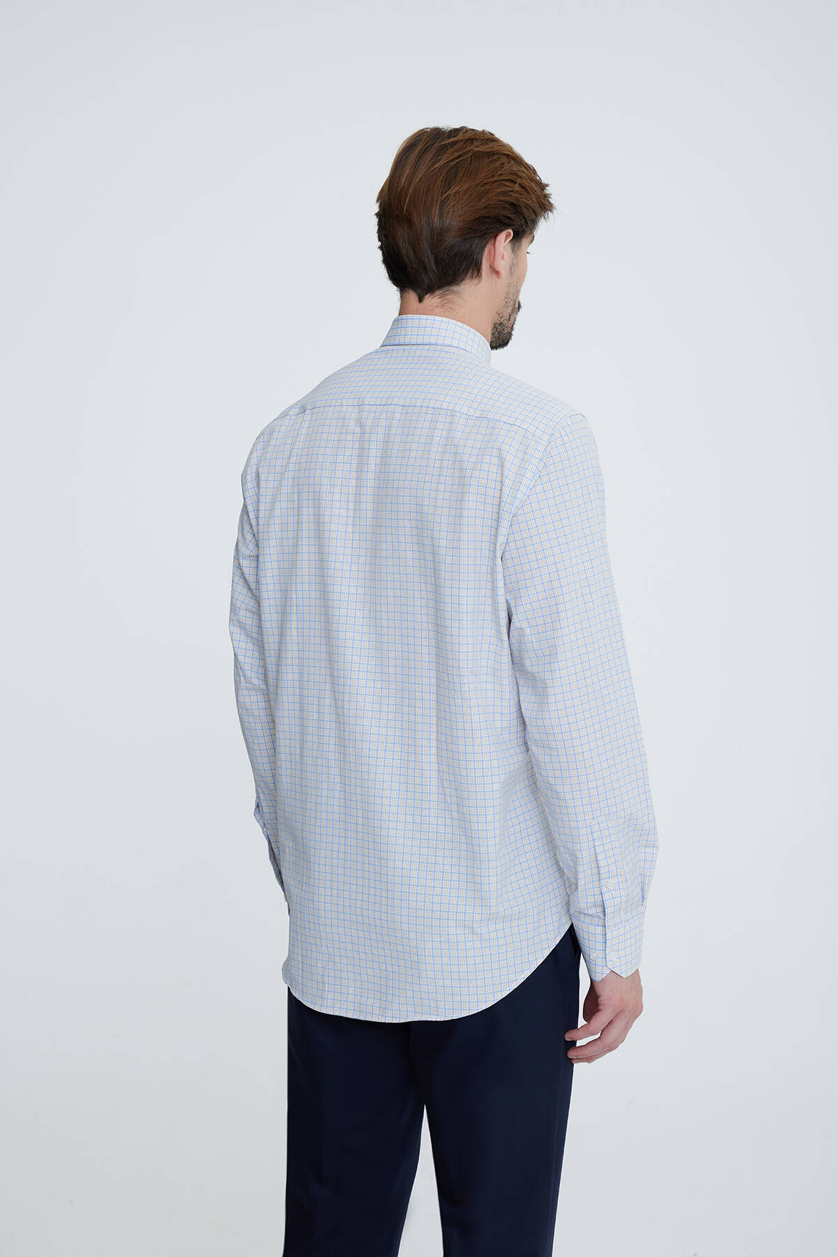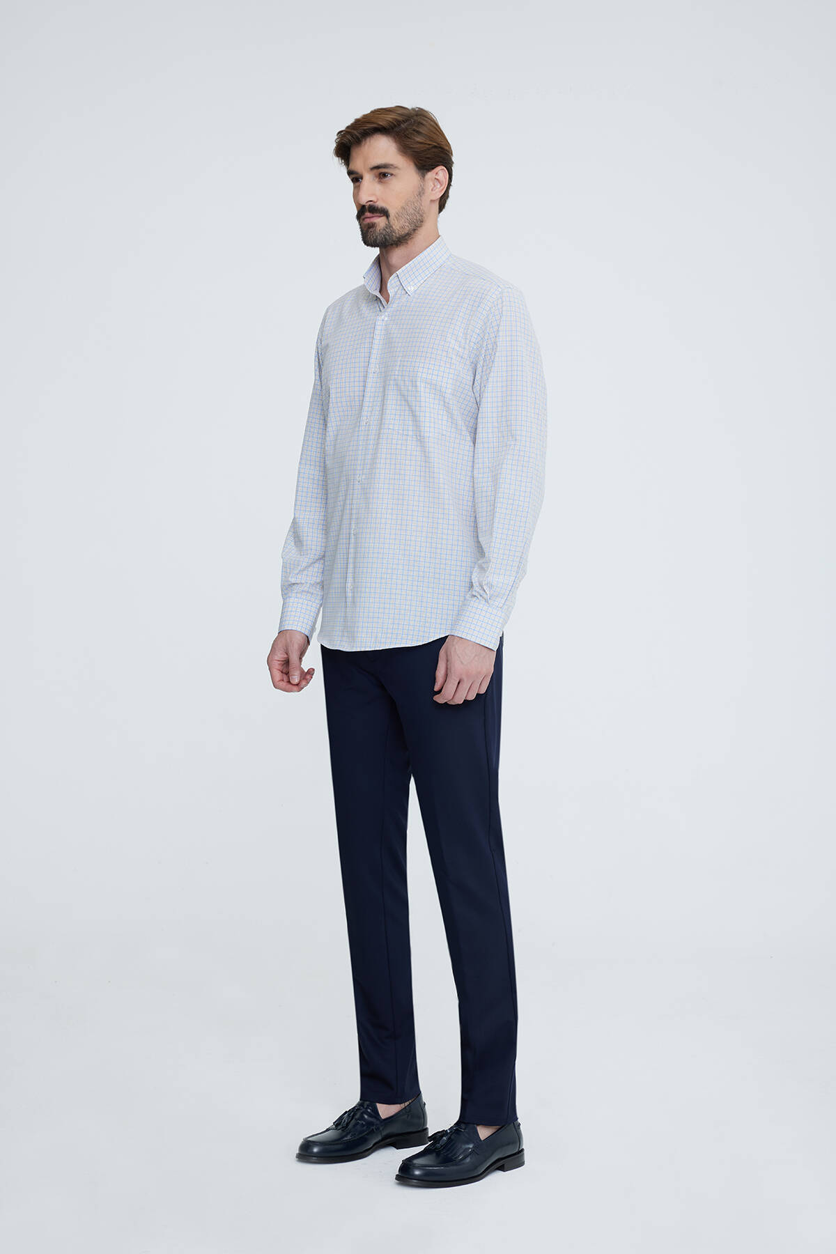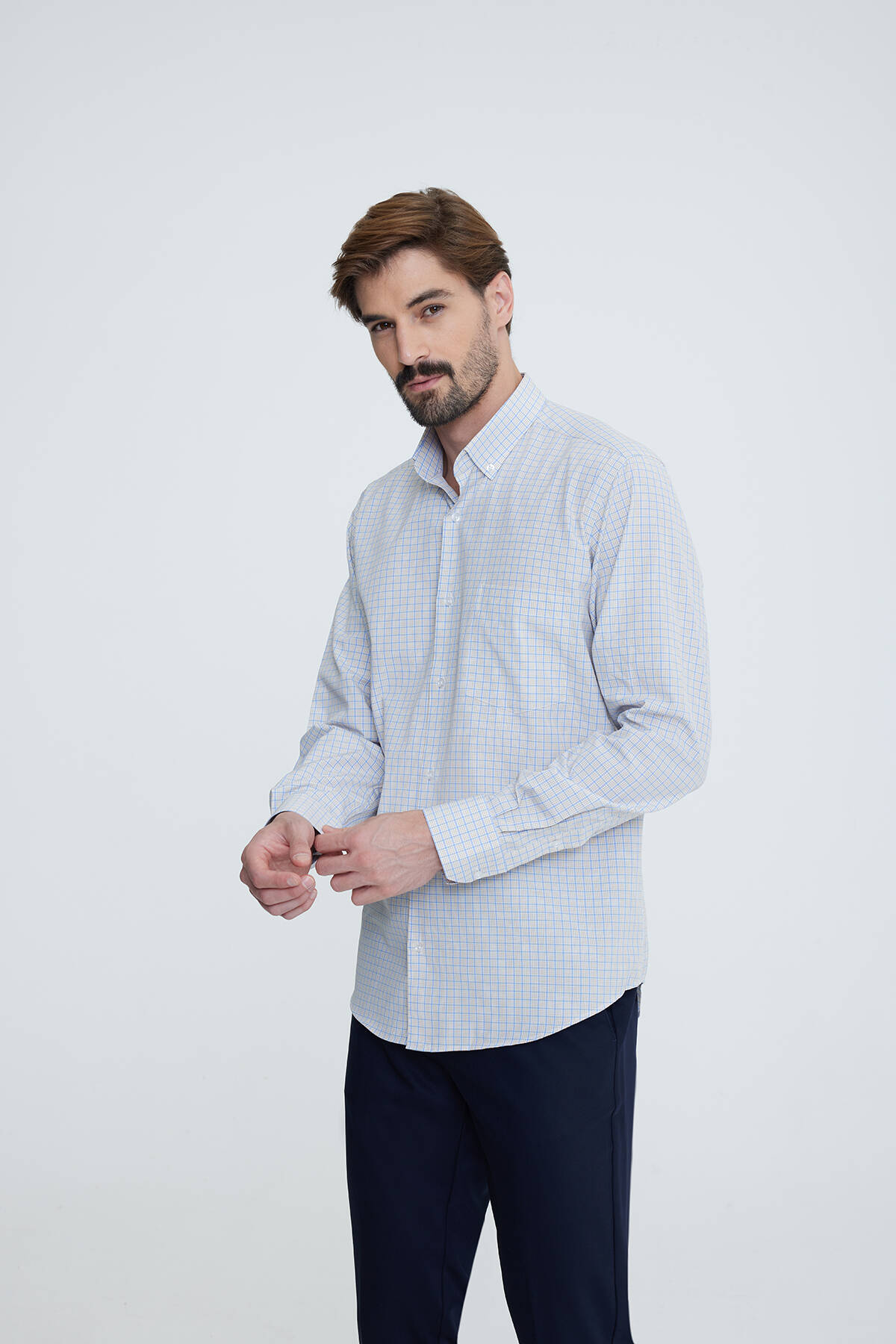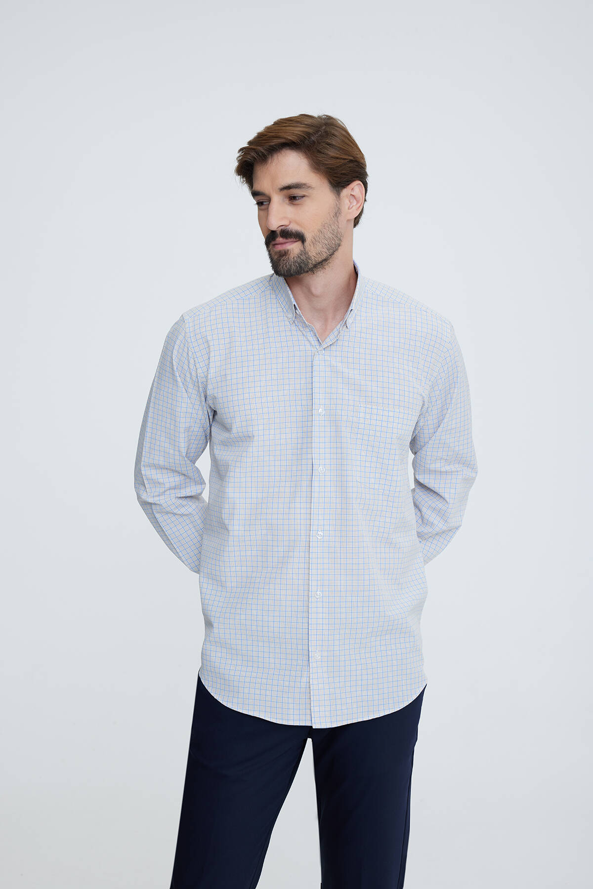 Erkek Beyaz Mavi Uzun Kol Regular Fit Yaka Düğmeli Gömlek