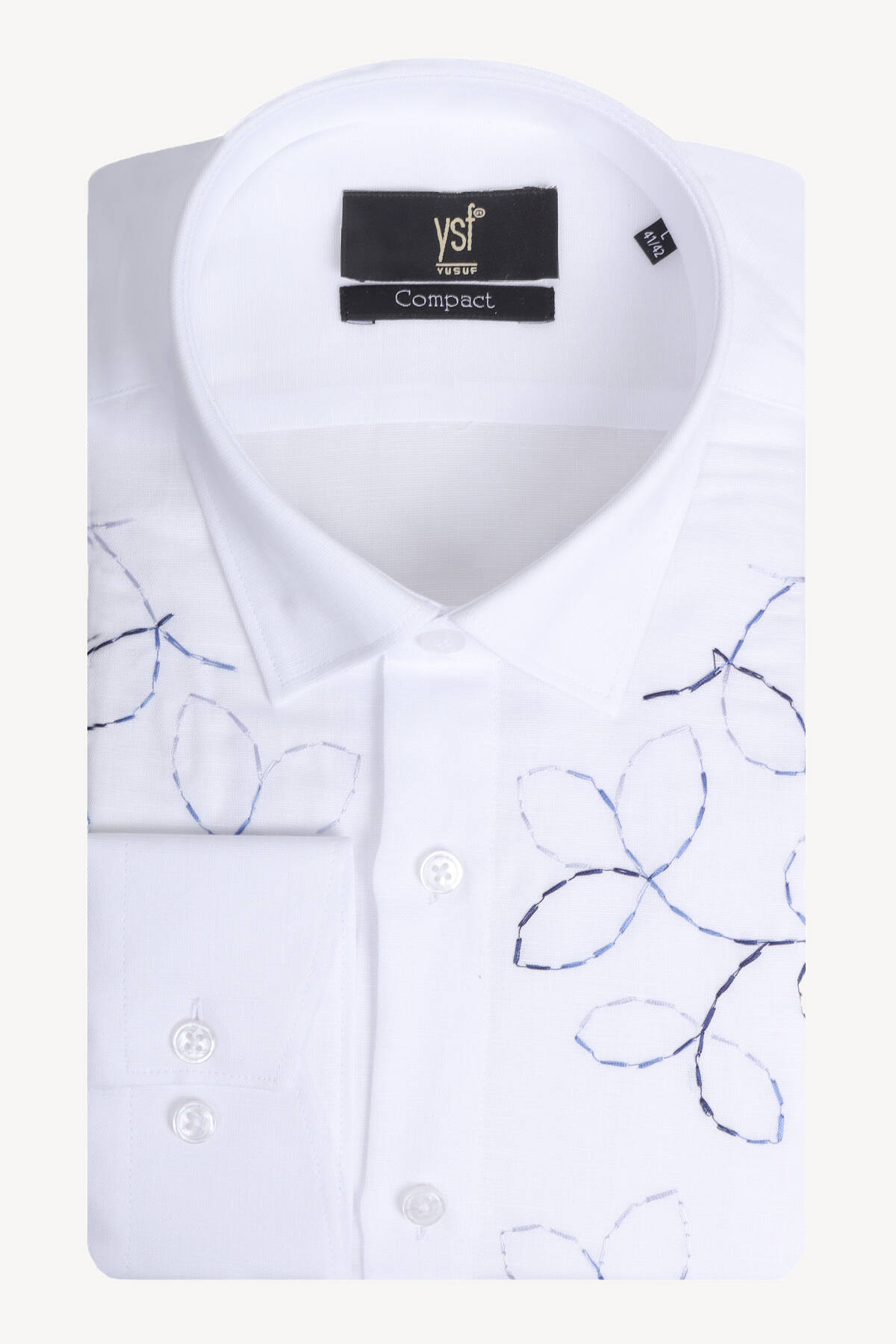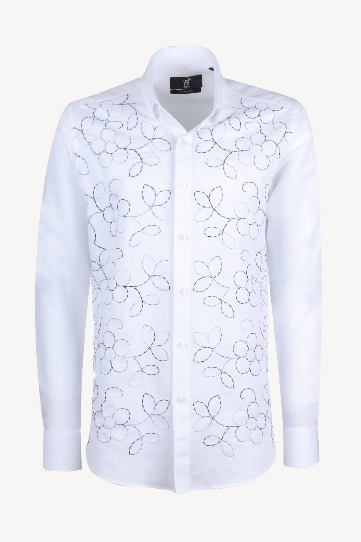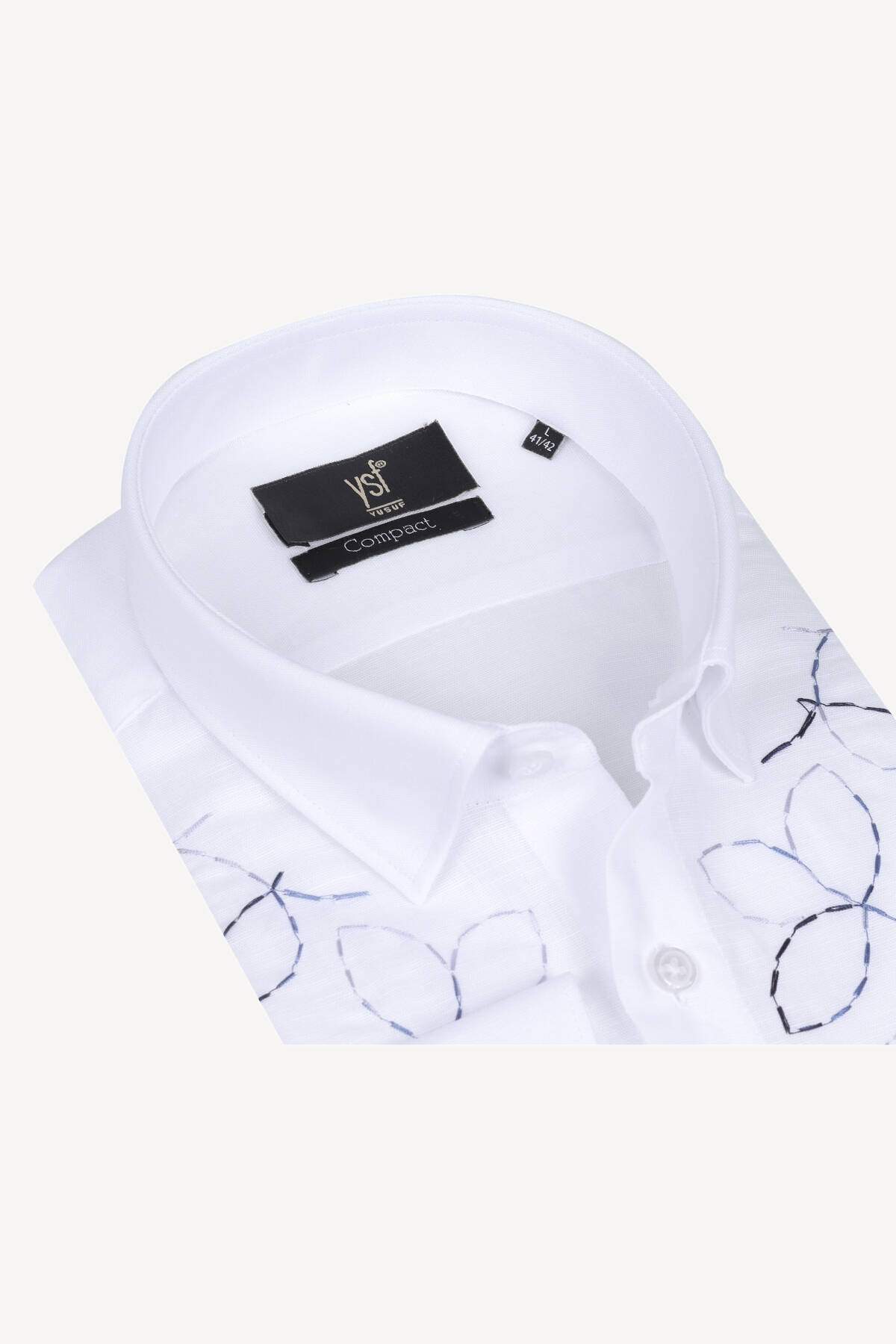 Erkek Beyaz Slim Fit %100 Keten Desenli Gömlek