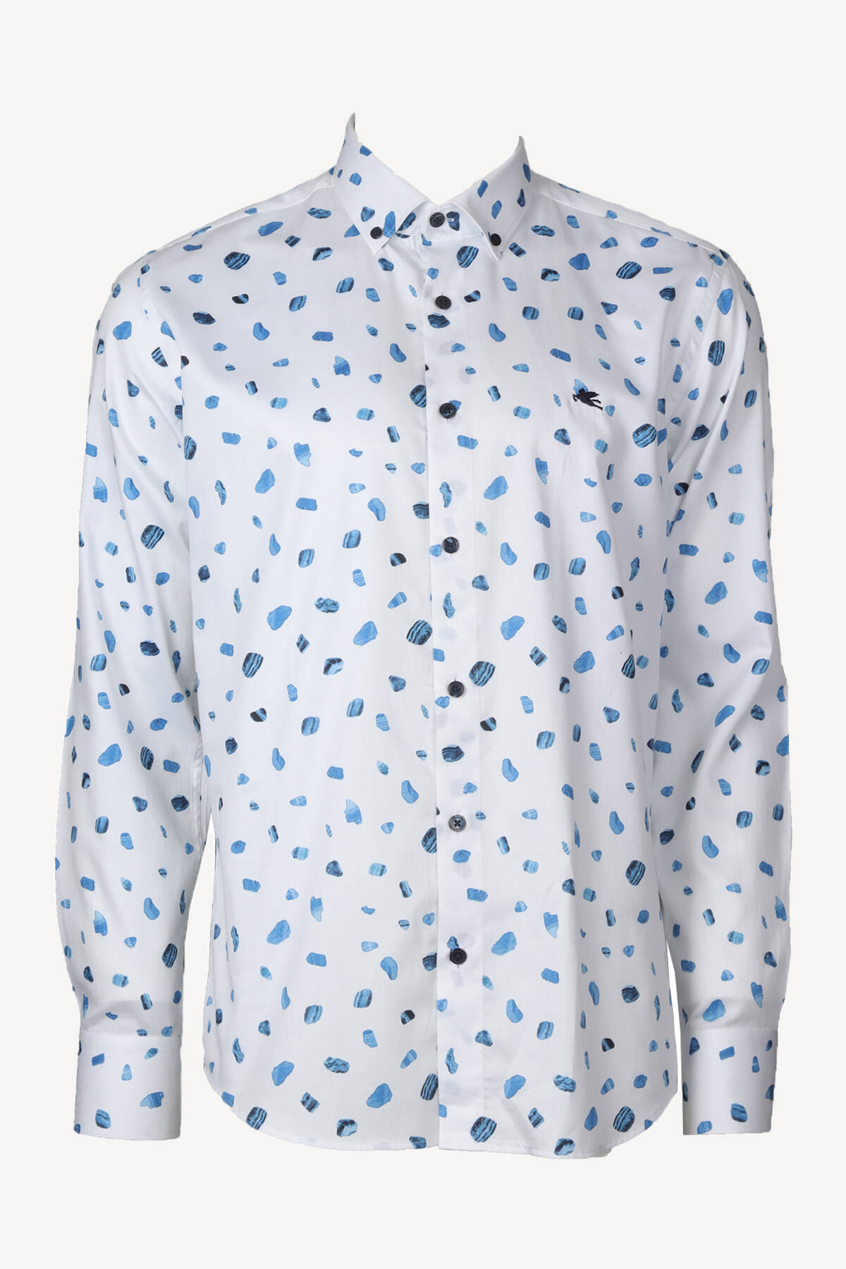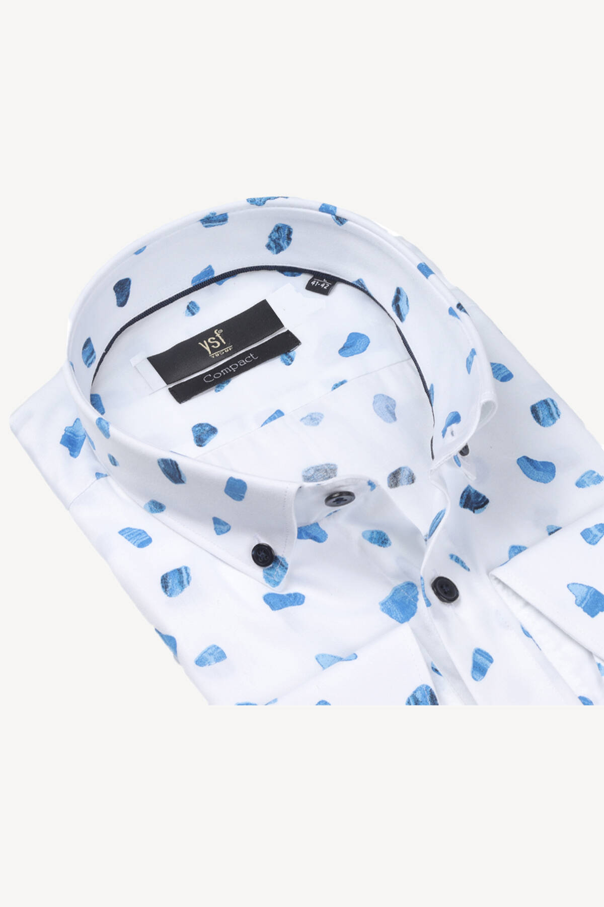 Erkek Beyaz Slim Fit Mavi Desenli Uzun Kollu Gömlek