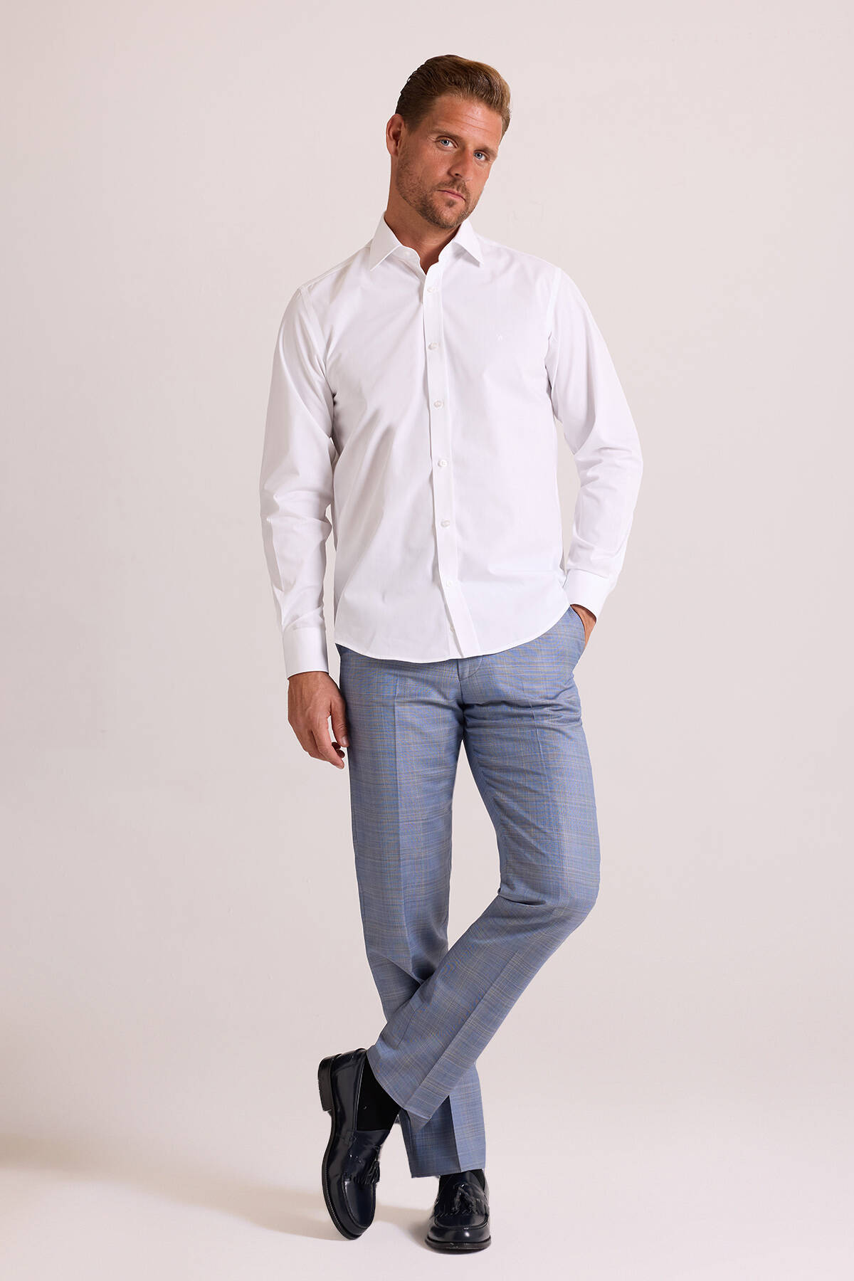 İtalyan yaka gömlek, şık günlük kıyafetlere canlı bir his katan taze beyaz rengi ile dikkat çeker. Beyazın değişmeyen çekici etkisi, stilinizde bir tuval rolü üstlenerek her parçayı üst düzey bir şıklığa ulaştırır. Akıllı-gündelik görünümlerin hayranıysanız bu şık tasarımı kombinlemek için pek çok fırsat bulabilirsiniz. Risk almadan karizmatik ve güçlü bir imaj oluşturmak için beyaz gömleği, siyah kumaş pantolon ve aynı renk klasik ayakkabı modelleri ile tamamlayabilirsiniz. İtalyan Rivierası şıklığı için beyaz erkek gömlek ile açık mavi keten pantolon ve bej tonlarda süet loafer kombini yapabilirsiniz. Gündelik gardırobunuzda klas tarzdan ödün vermeyen bir stil oluşturabilmek için YSF Giyim erkek beyaz gömlek modellerini en özel fiyatlarla seçebilirsiniz!