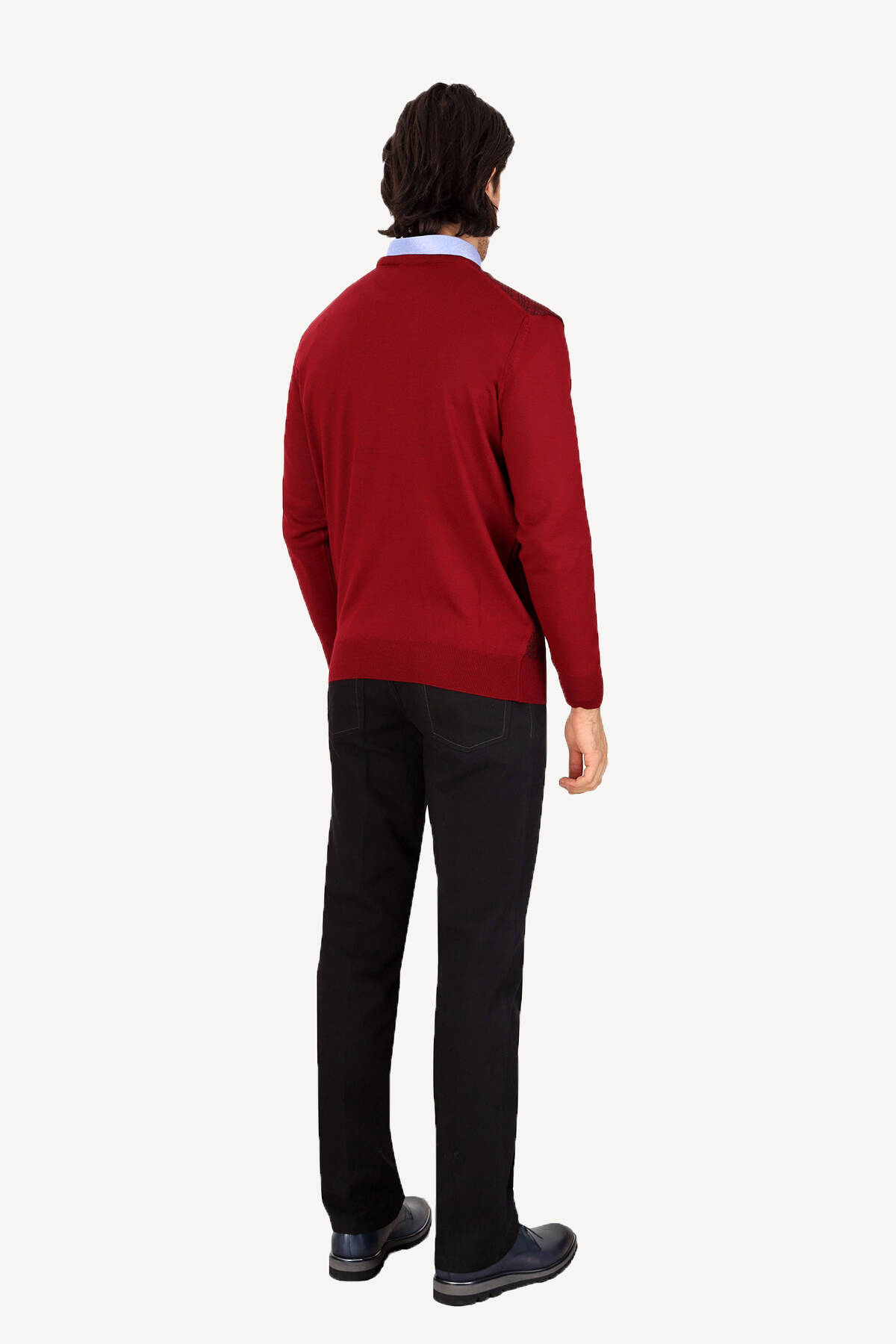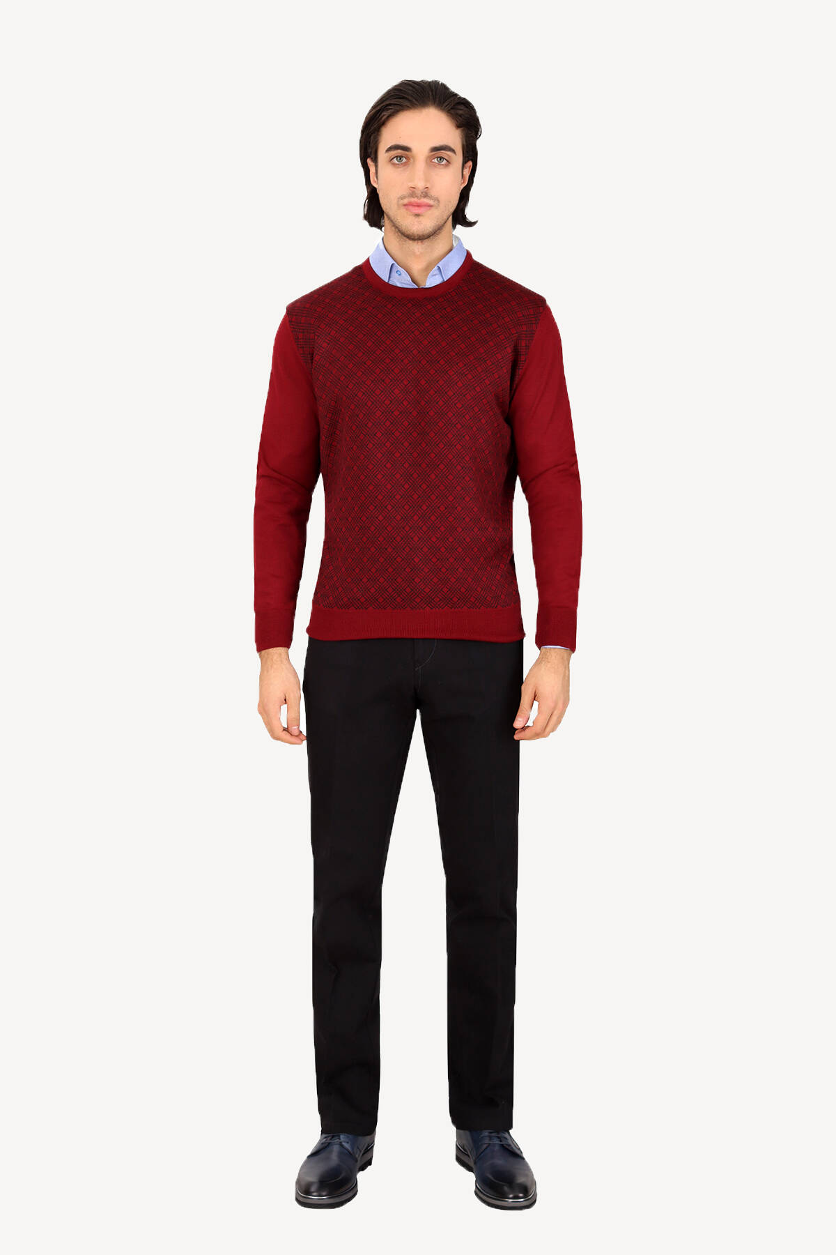 Erkek Bordo Bisiklet Yaka Desenli Klasik Triko