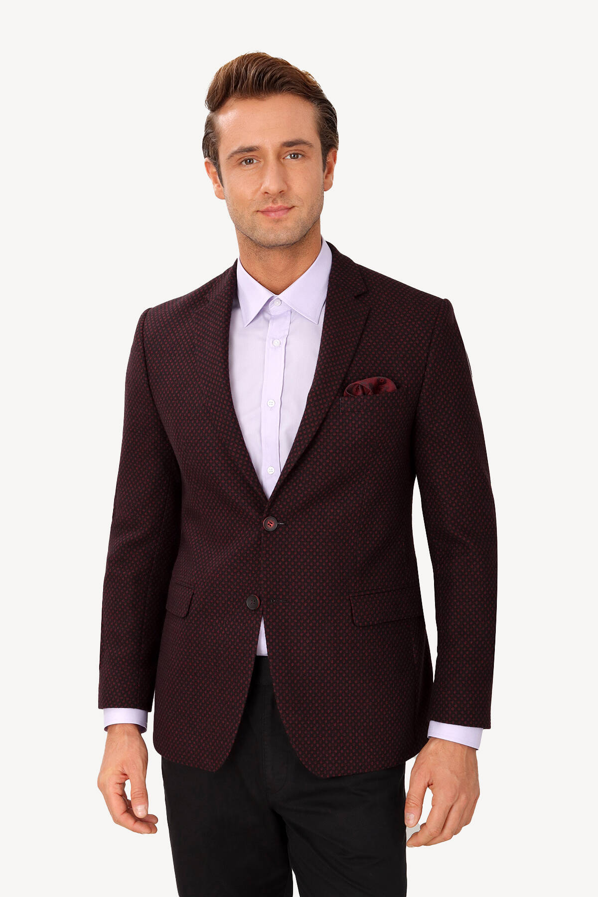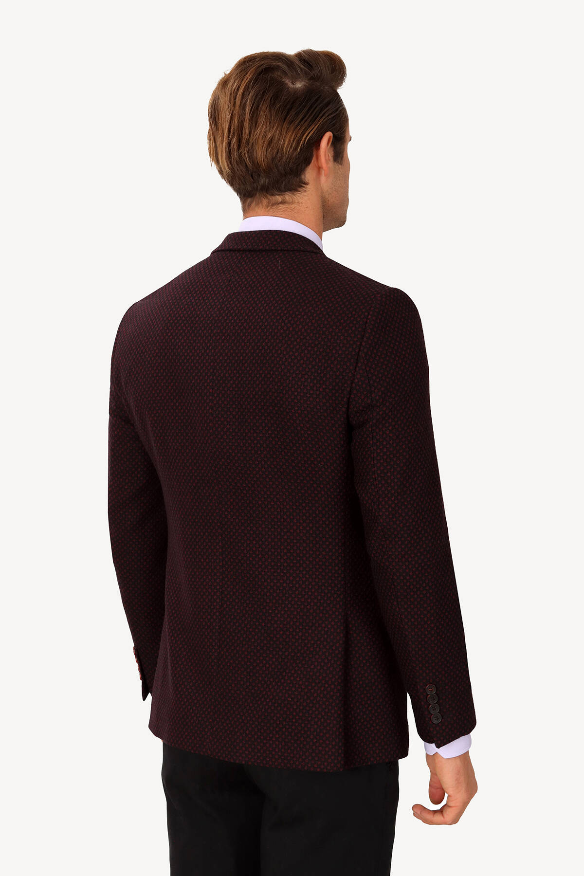 Erkek Bordo Desenli Spor Yünlü Ceket
