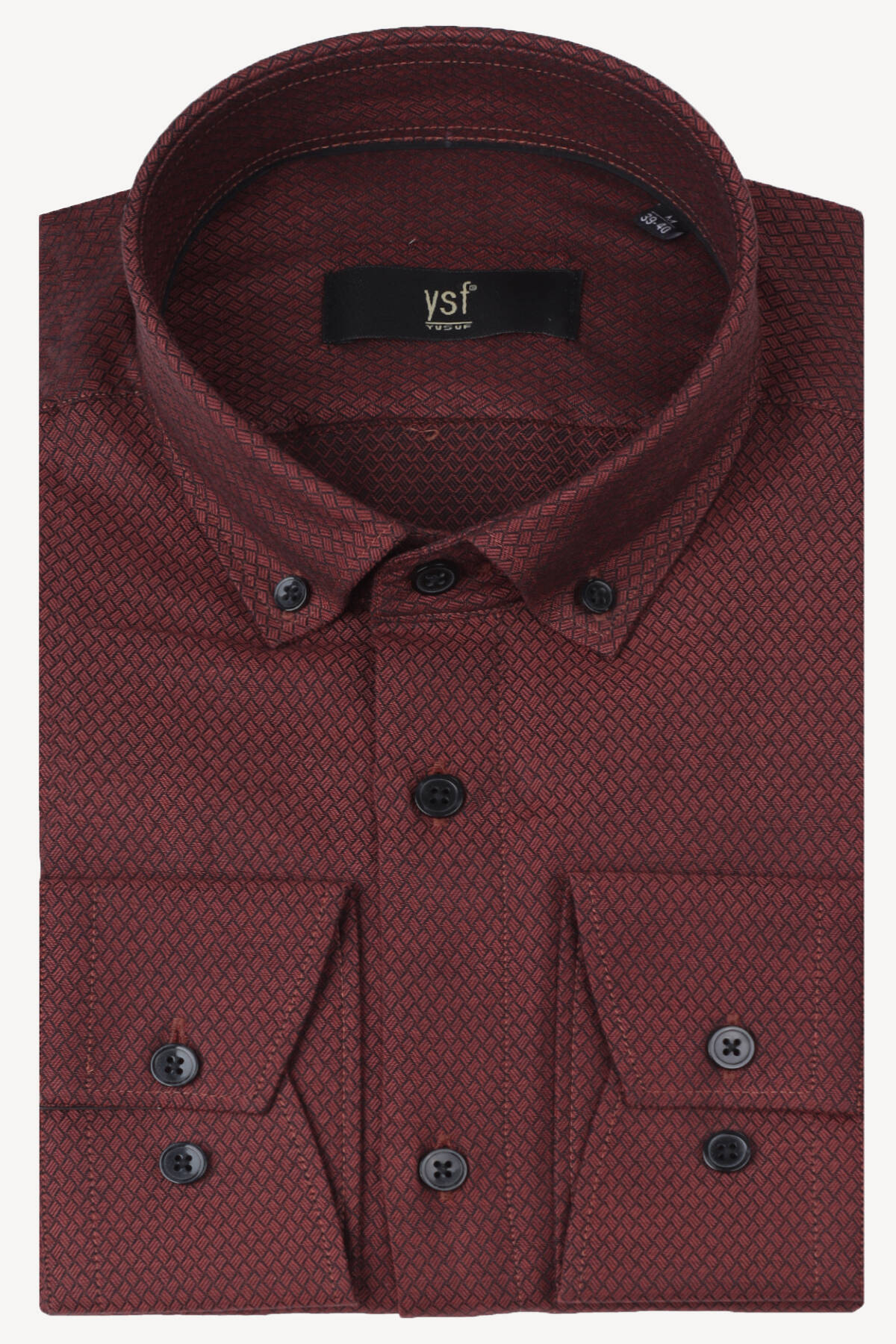 Erkek Bordo Desenli Uzun Kol Slim Fit Gömlek