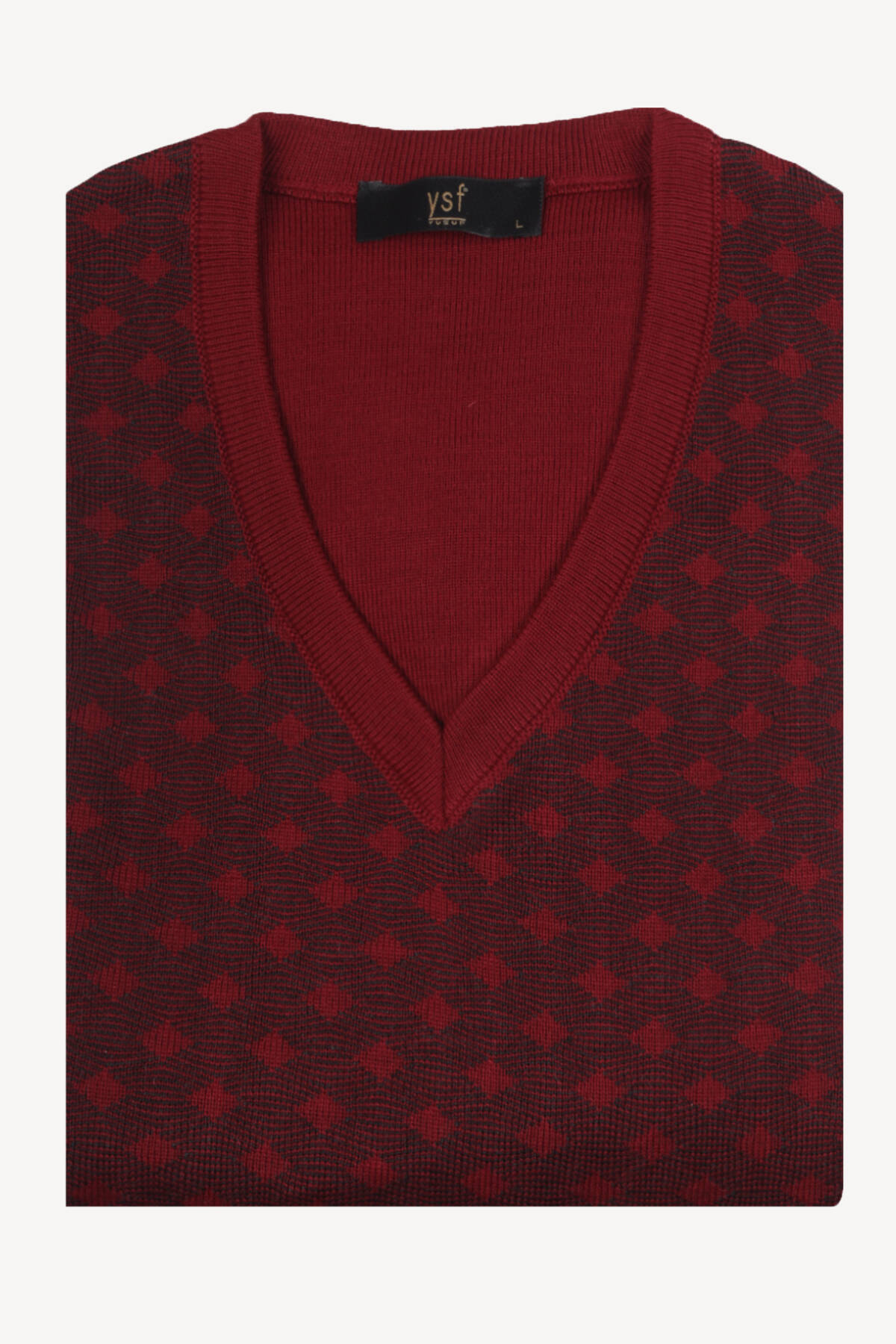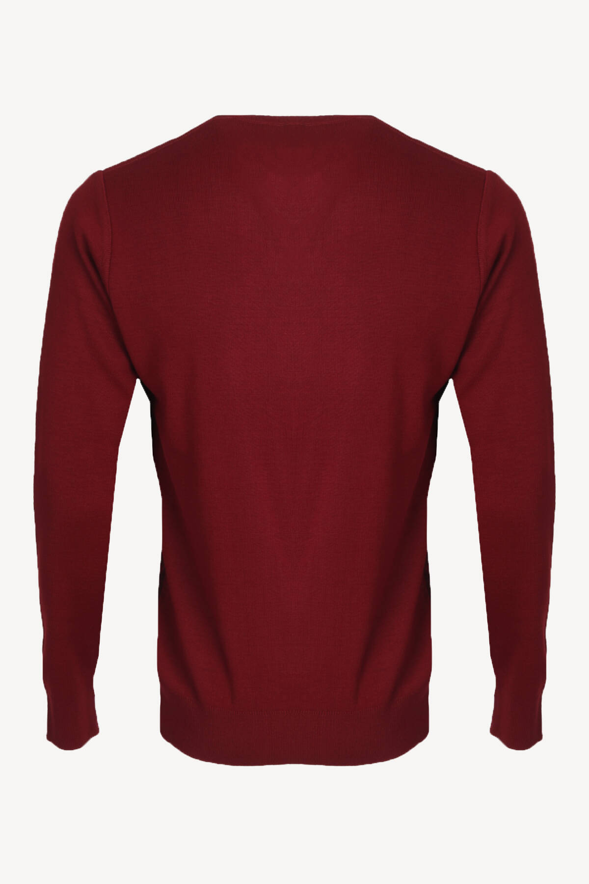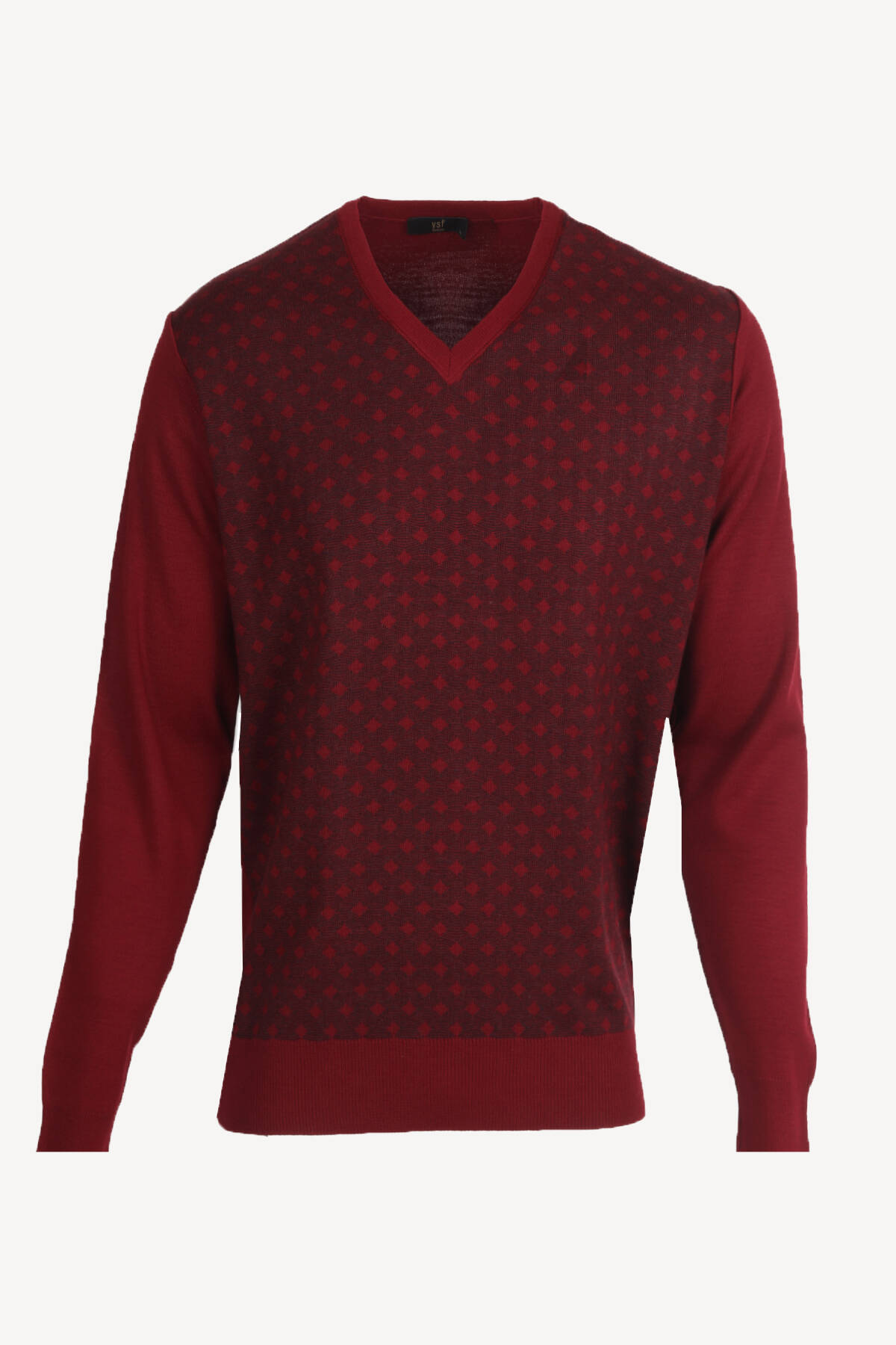 Erkek Bordo Klasik Desenli V Yaka Triko