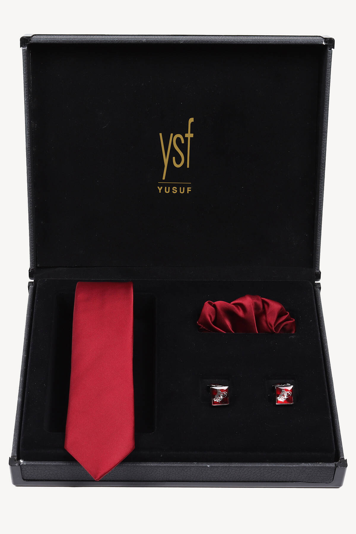 Erkek Bordo Kravat Mendil Kol Düğmesi Set