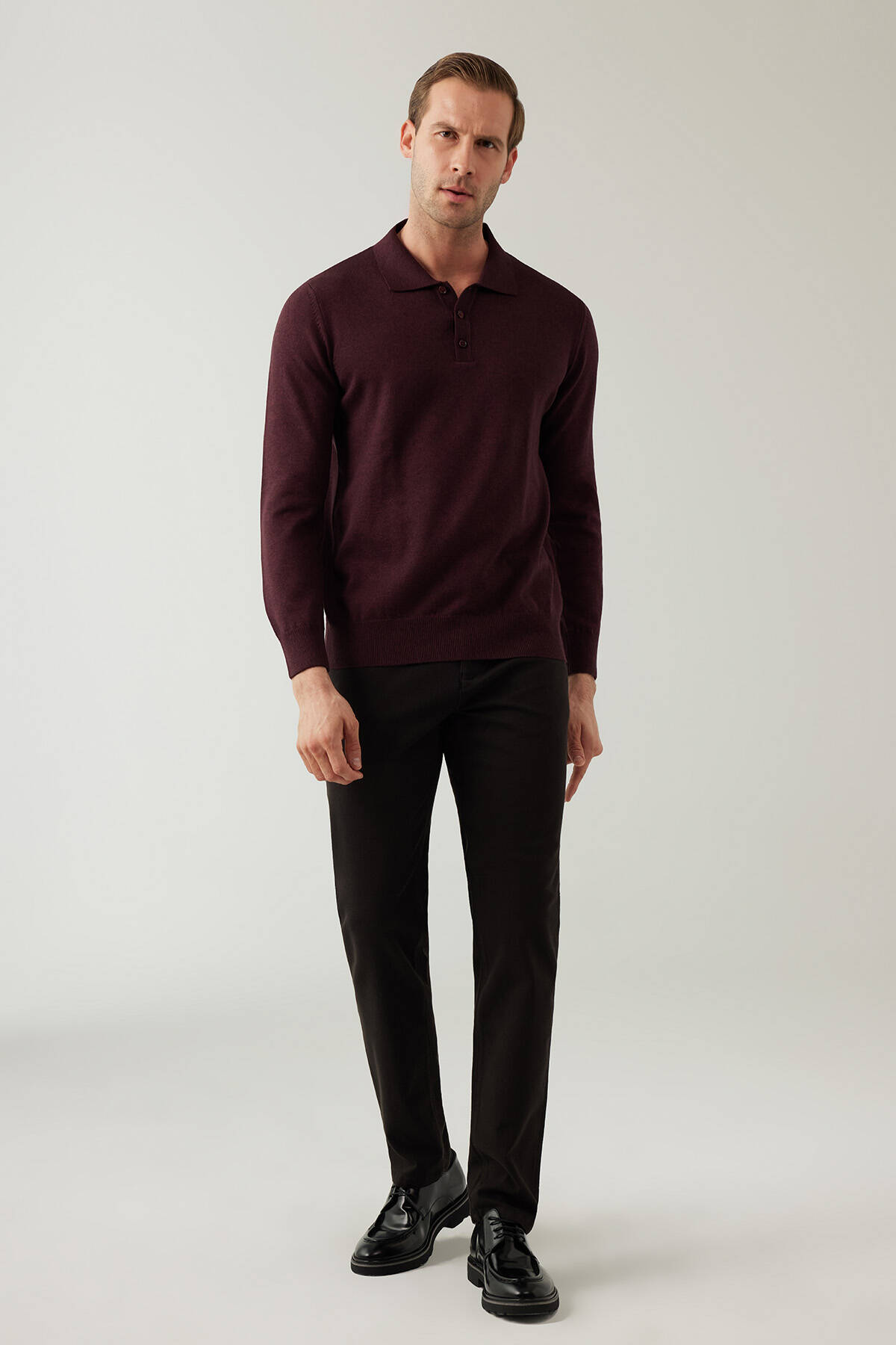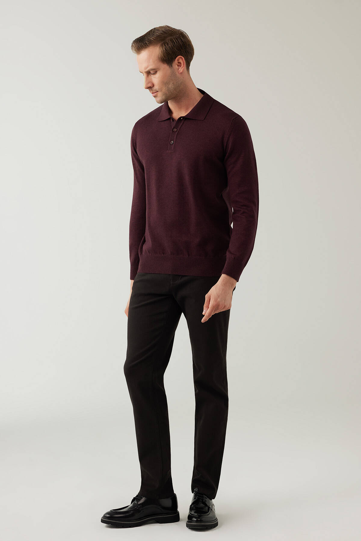 Erkek Bordo Pamuklu Polo Yaka Triko