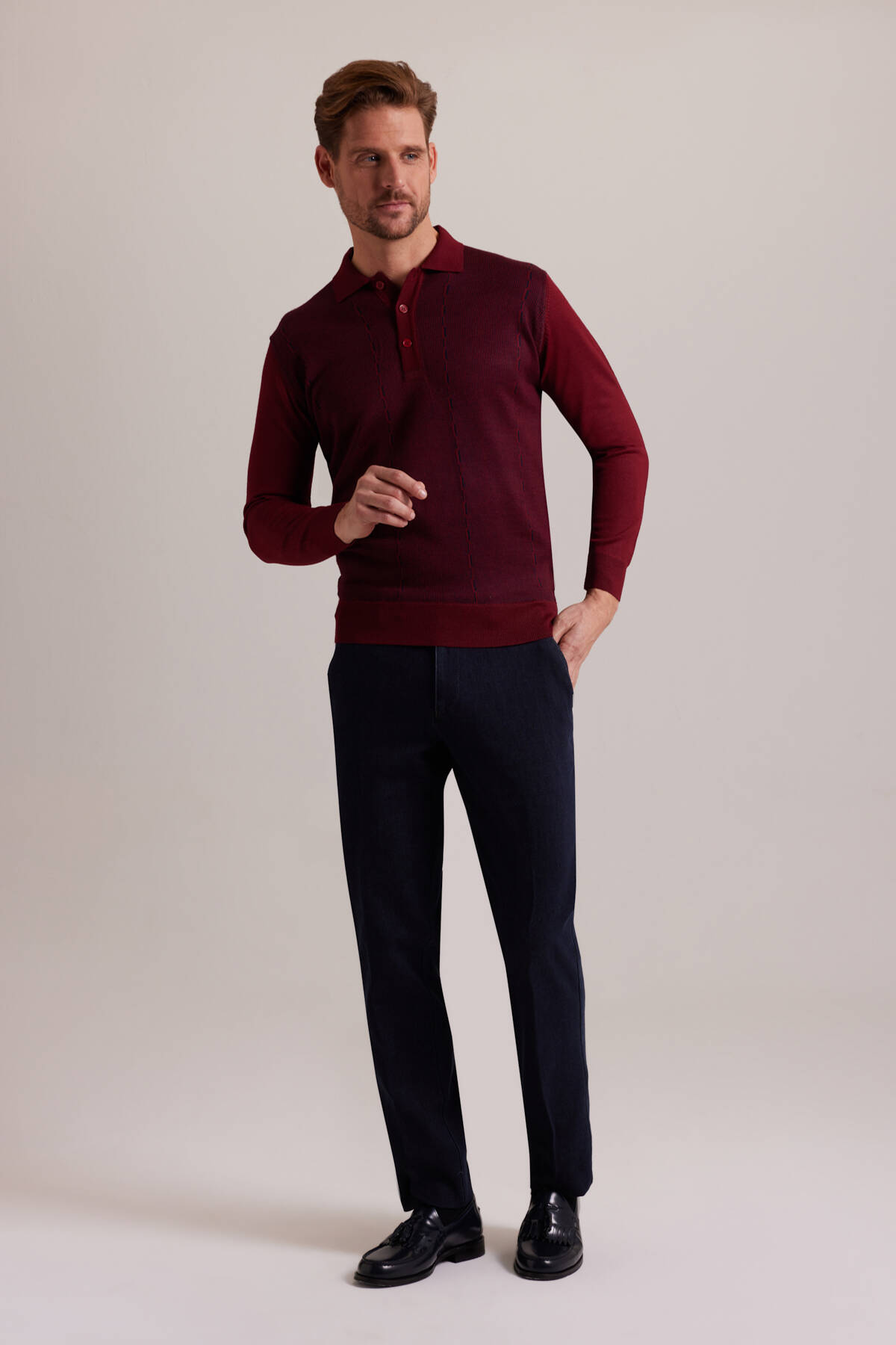 Erkek Bordo Polo Yaka Desenli Triko