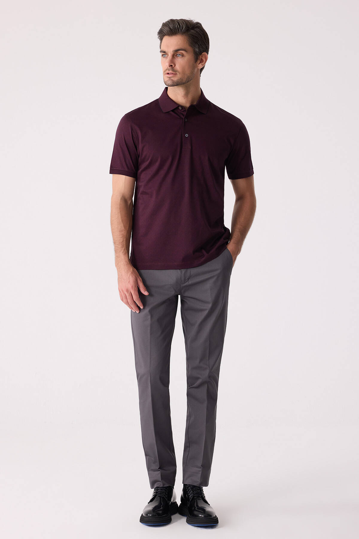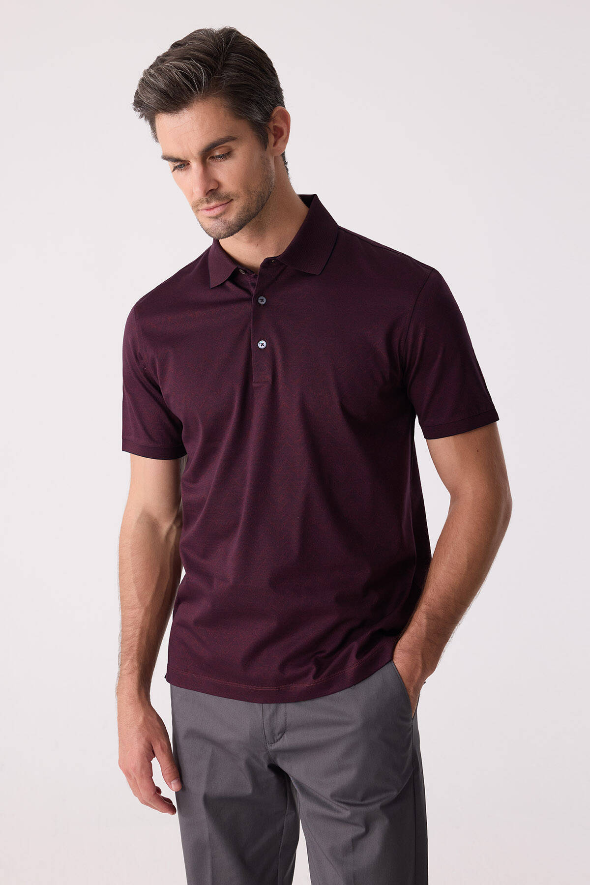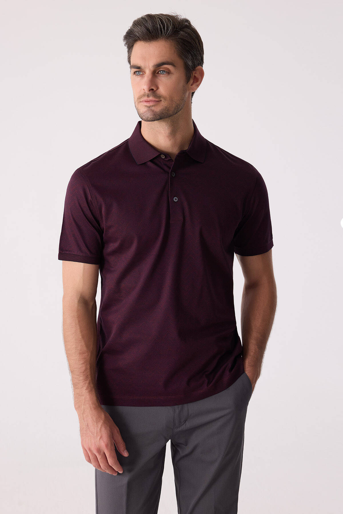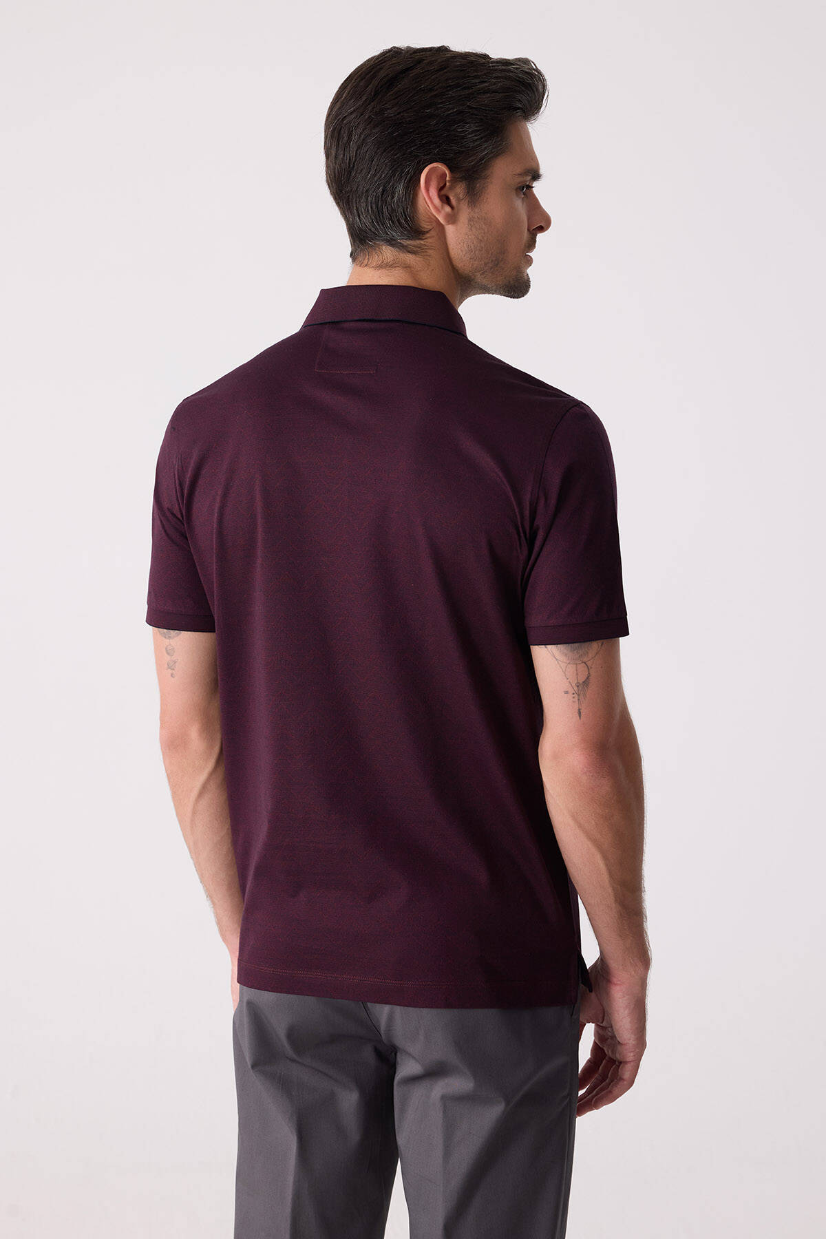 Erkek Bordo Regular Fit Desenli Merserize Polo Yaka Tişört