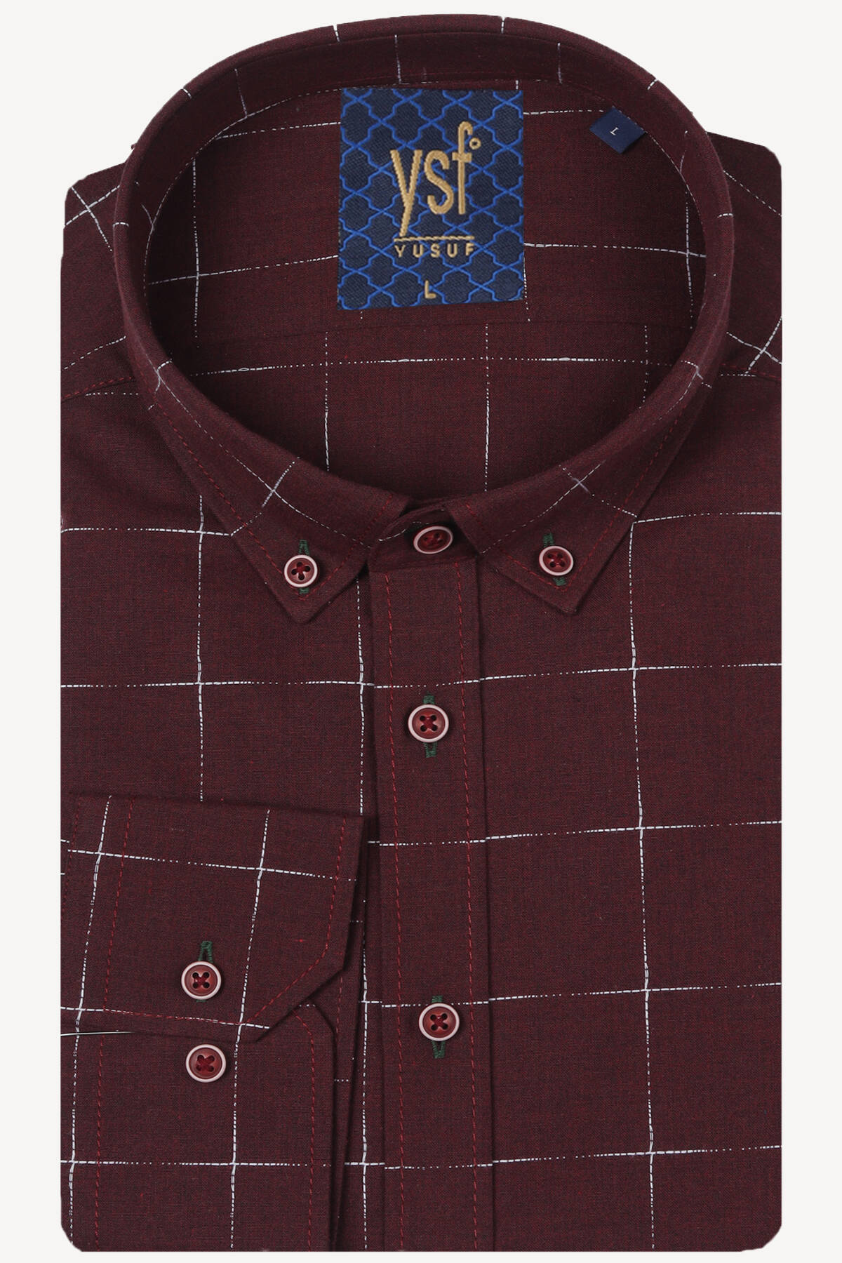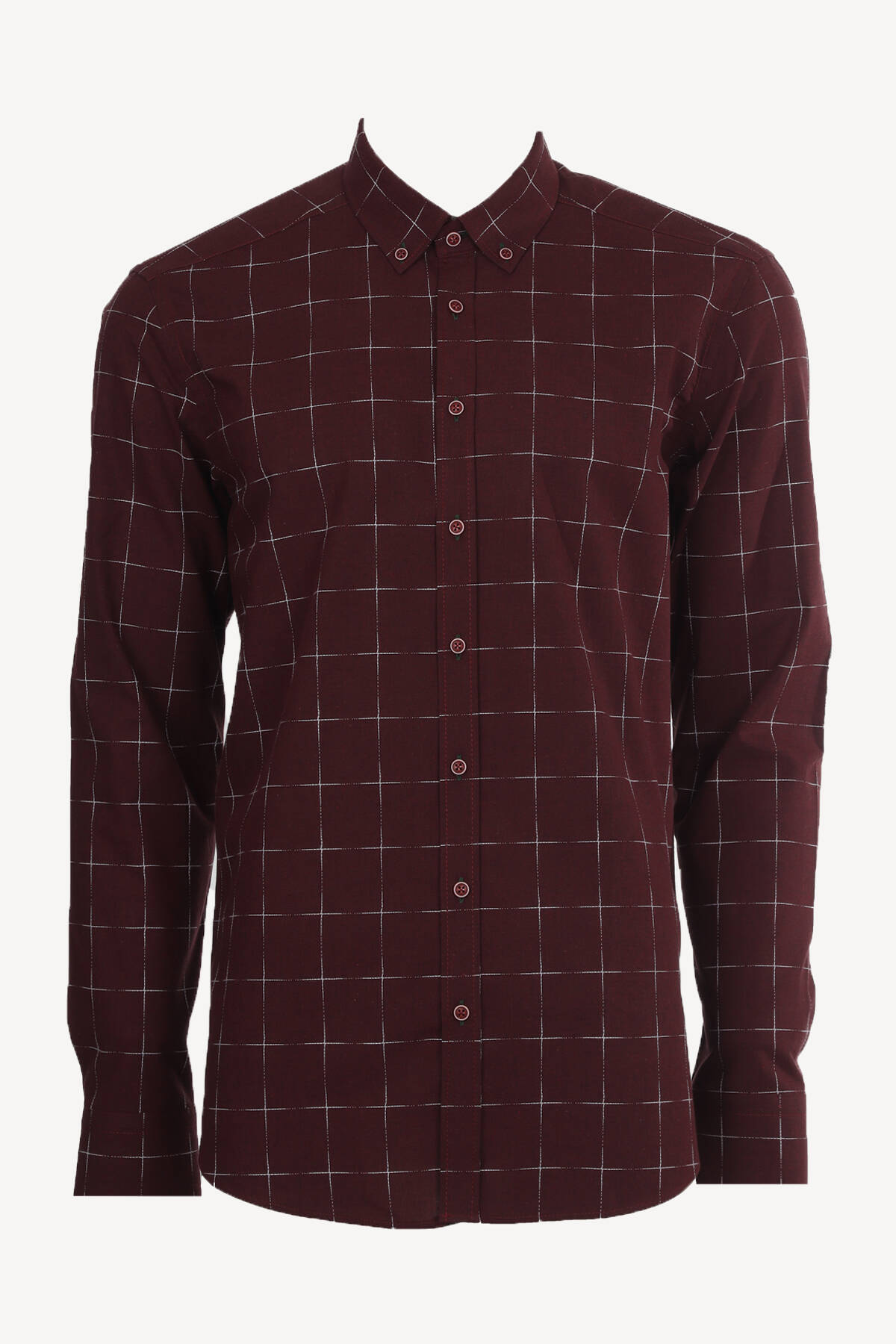 Erkek Bordo Regular Fit Uzun Kollu Gömlek