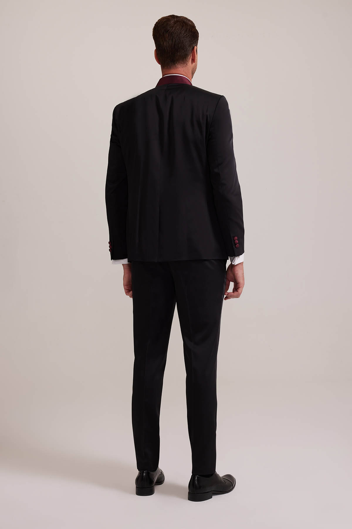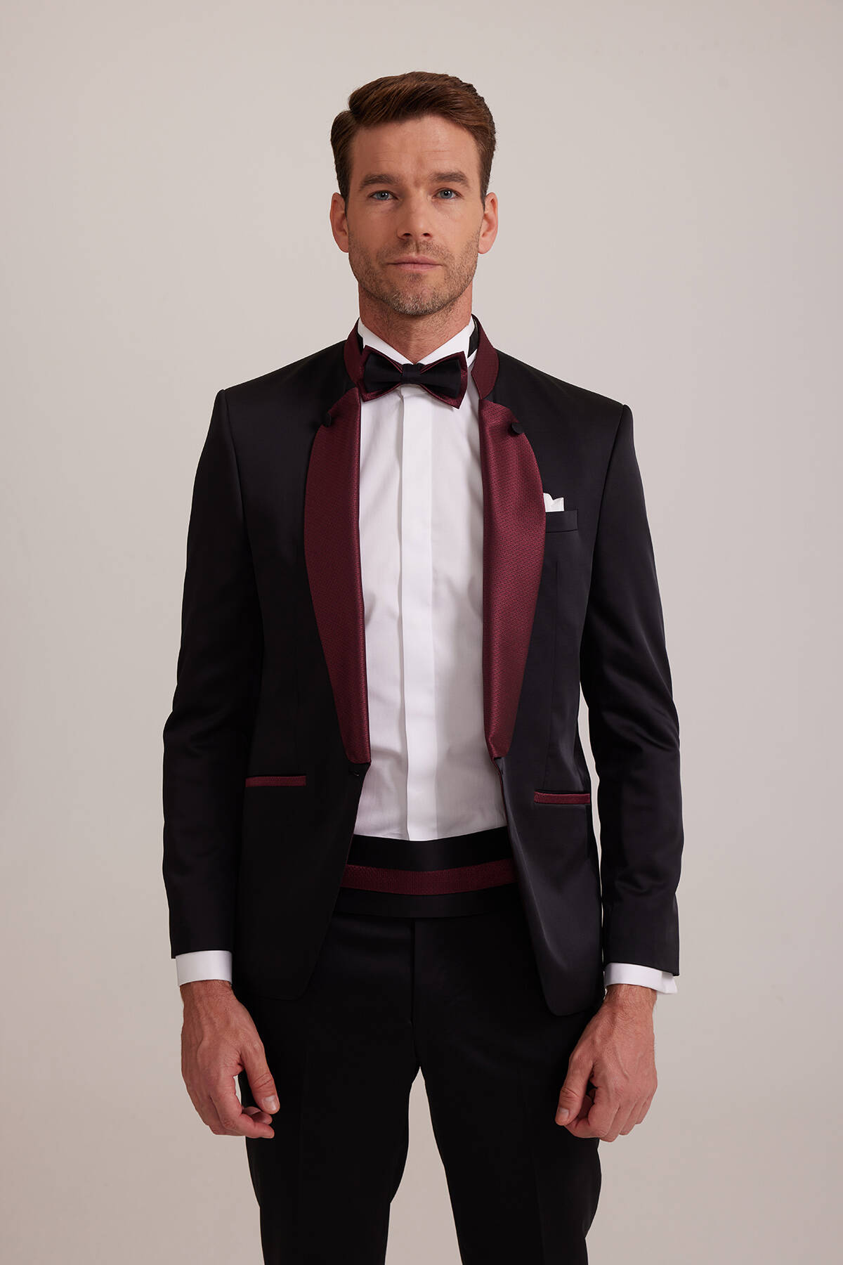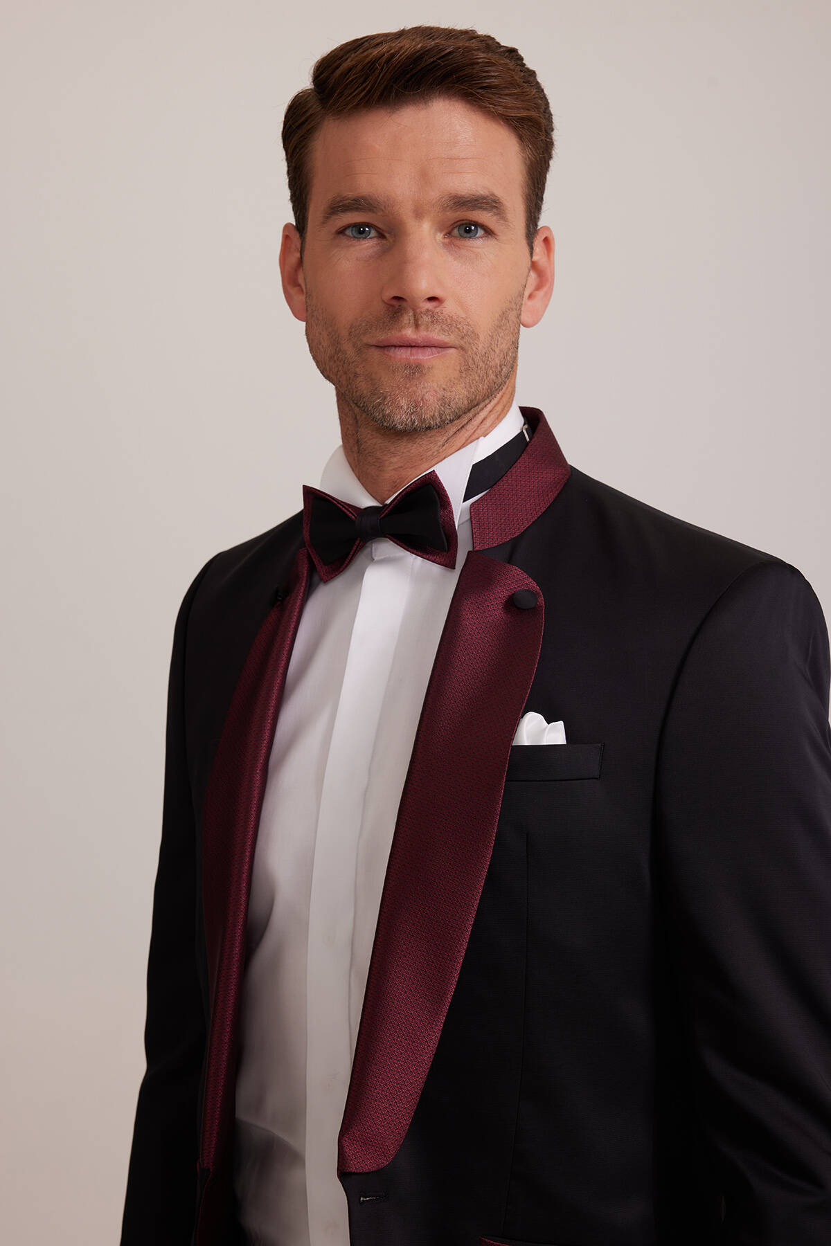Düz siyah rengin bordoyla kusursuz bir uyumunu yansıtan damatlık, doğru miktarda parlaklık sunan kontrast detayları ile seçkin bir tarz yaratır. Kış düğünleri için kusursuz bir seçim olan bu damatlık modeli kadife papyon ve bordo biyeli kuşak seti ile birlikte satışa sunulur. Ata Yaka Gömlek, klasik ayakkabı, karizmatik ve özgün bir tarzda kombinleyebilirsiniz. En özel davetlerde gerçekten fark yaratmak istiyorsanız gümüş kare kol düğmesi gibi çekici aksesuarlarla stilinizi güçlendirebilirsiniz. YSF Giyim, hayatınızın en özel anlarına ilham verici bir stille eşlik eden damatlık modellerini beğeniye sunar. Siz de dikkat çekici bir silüet için kusursuz form ve kalitedeki damatlıkları mağazada ücretsiz tadilat ve özel fiyat ayrıcalıklarıyla deneyimleme şansı yakalayabilirsiniz!