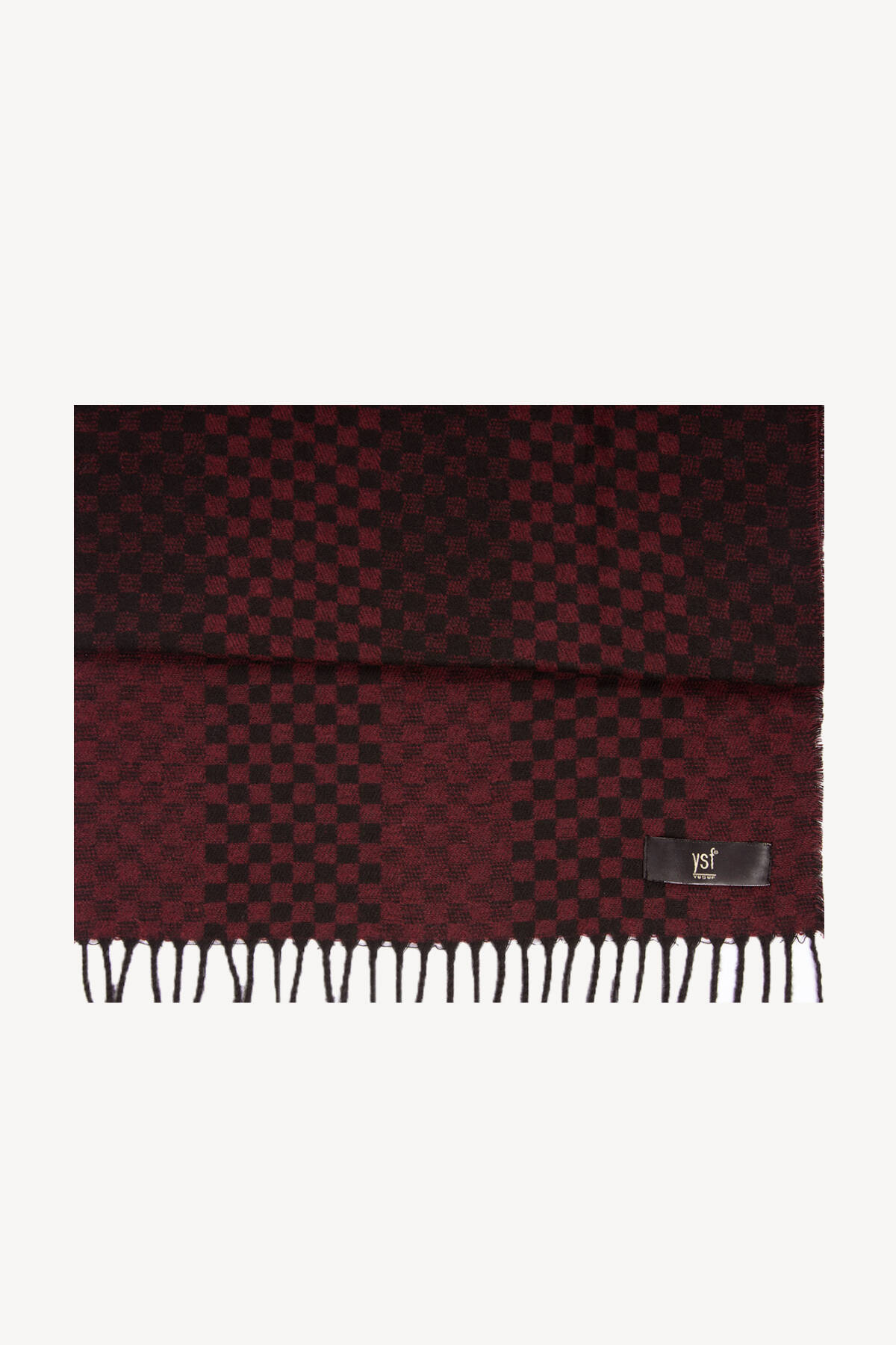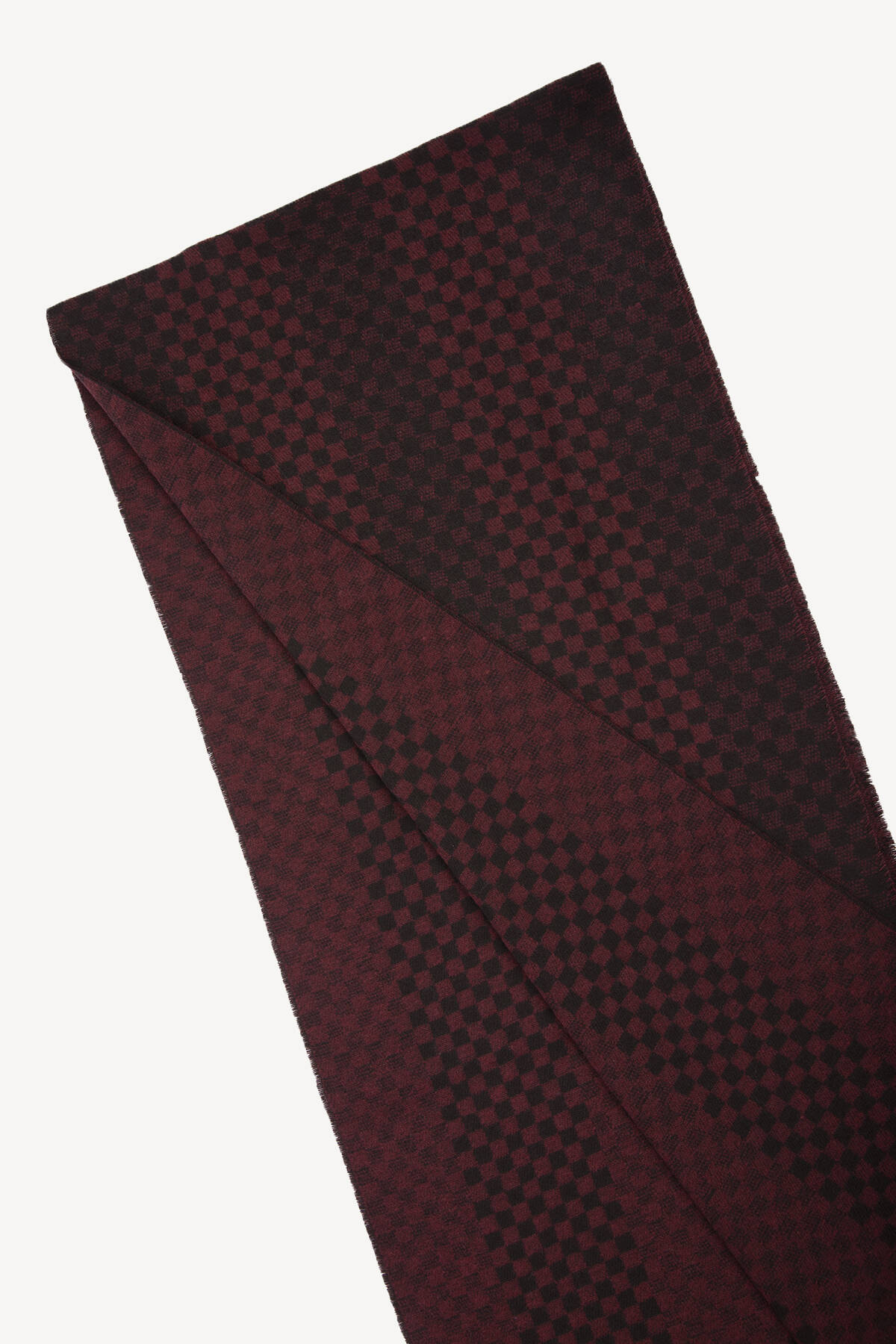 Erkek Bordo Siyah Yünlü Kareli Kaşkol