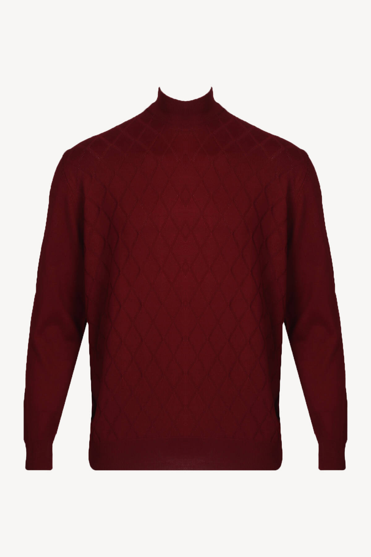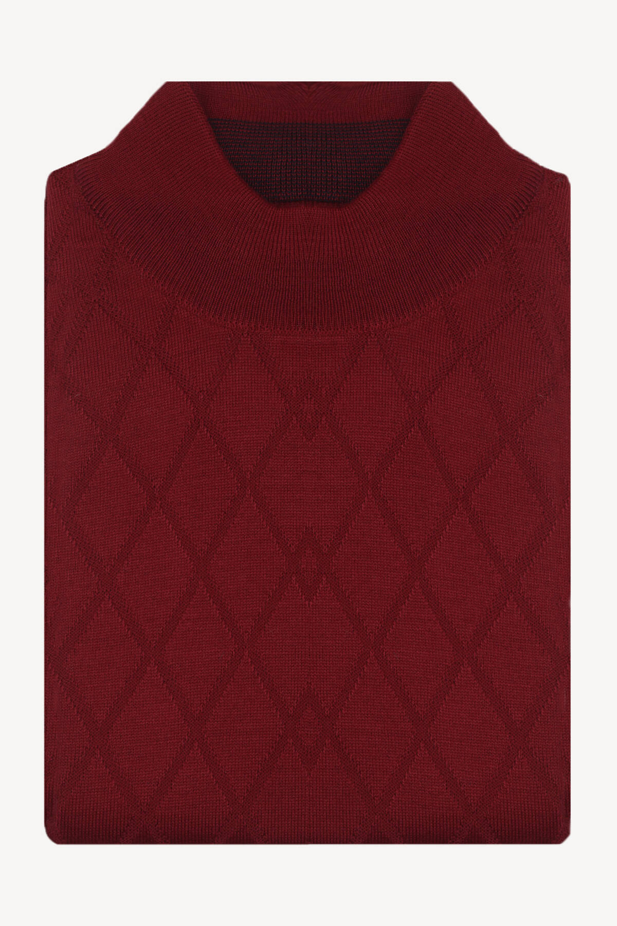 Erkek Bordo Yarım Balıkçı Yaka Klasik Desenli Triko