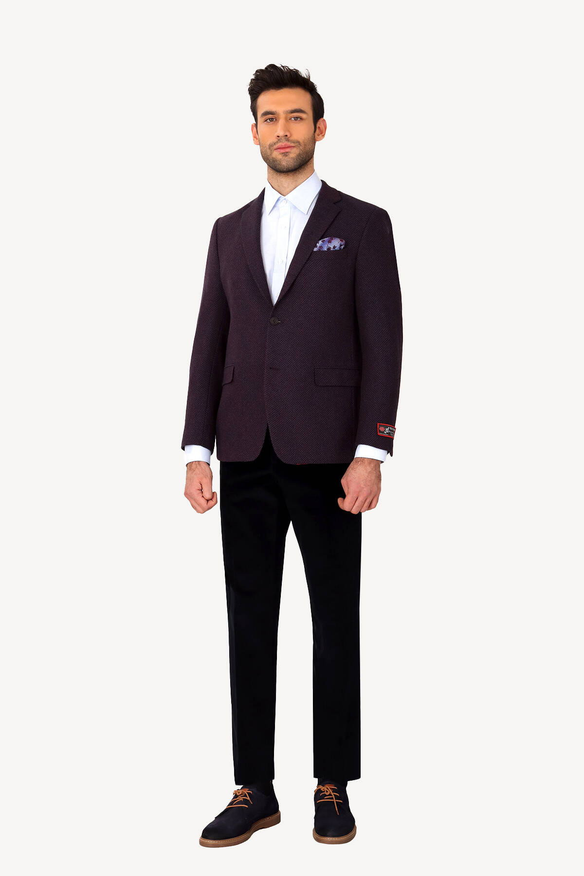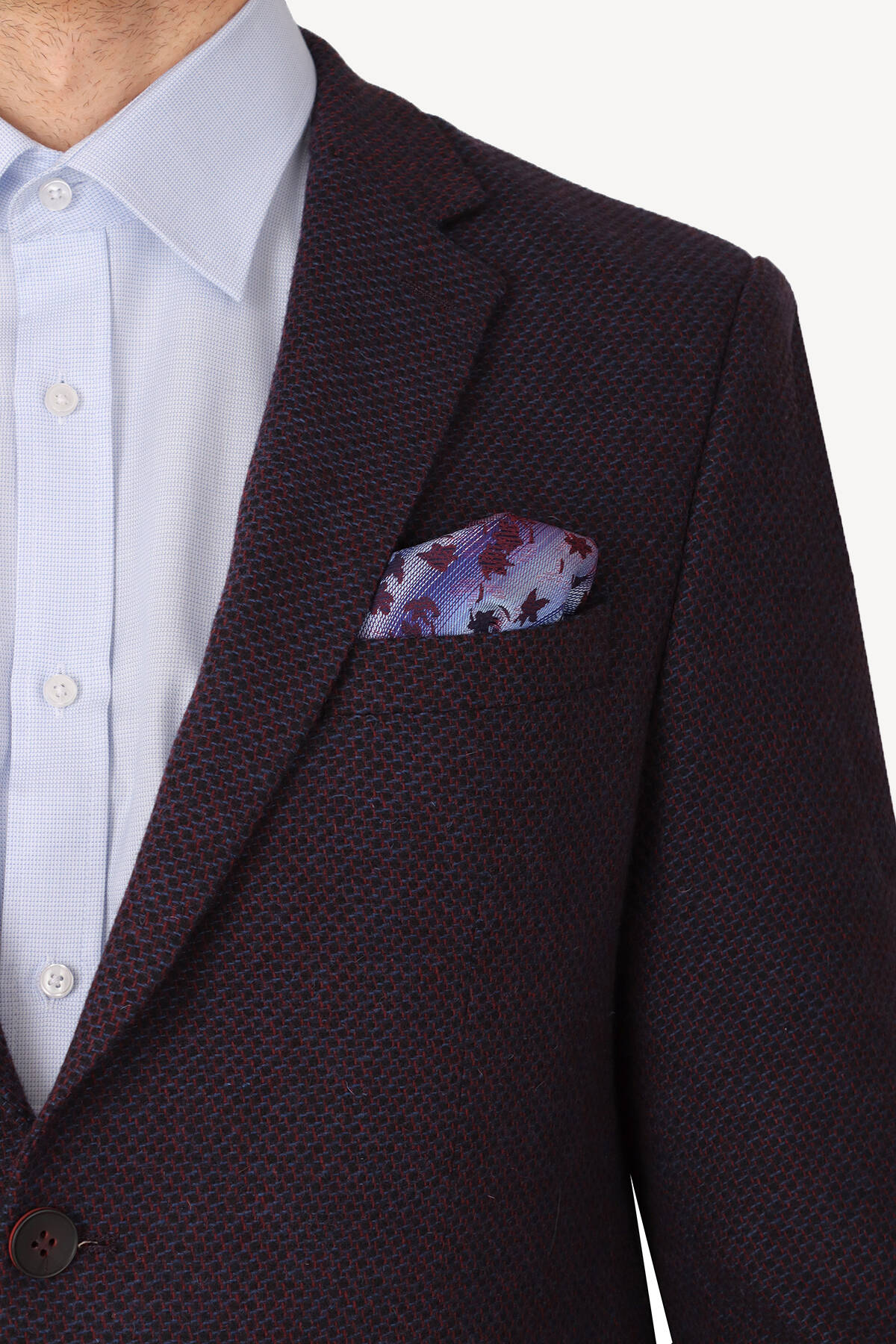 Erkek Bordo Yünlü Desenli Spor Ceket