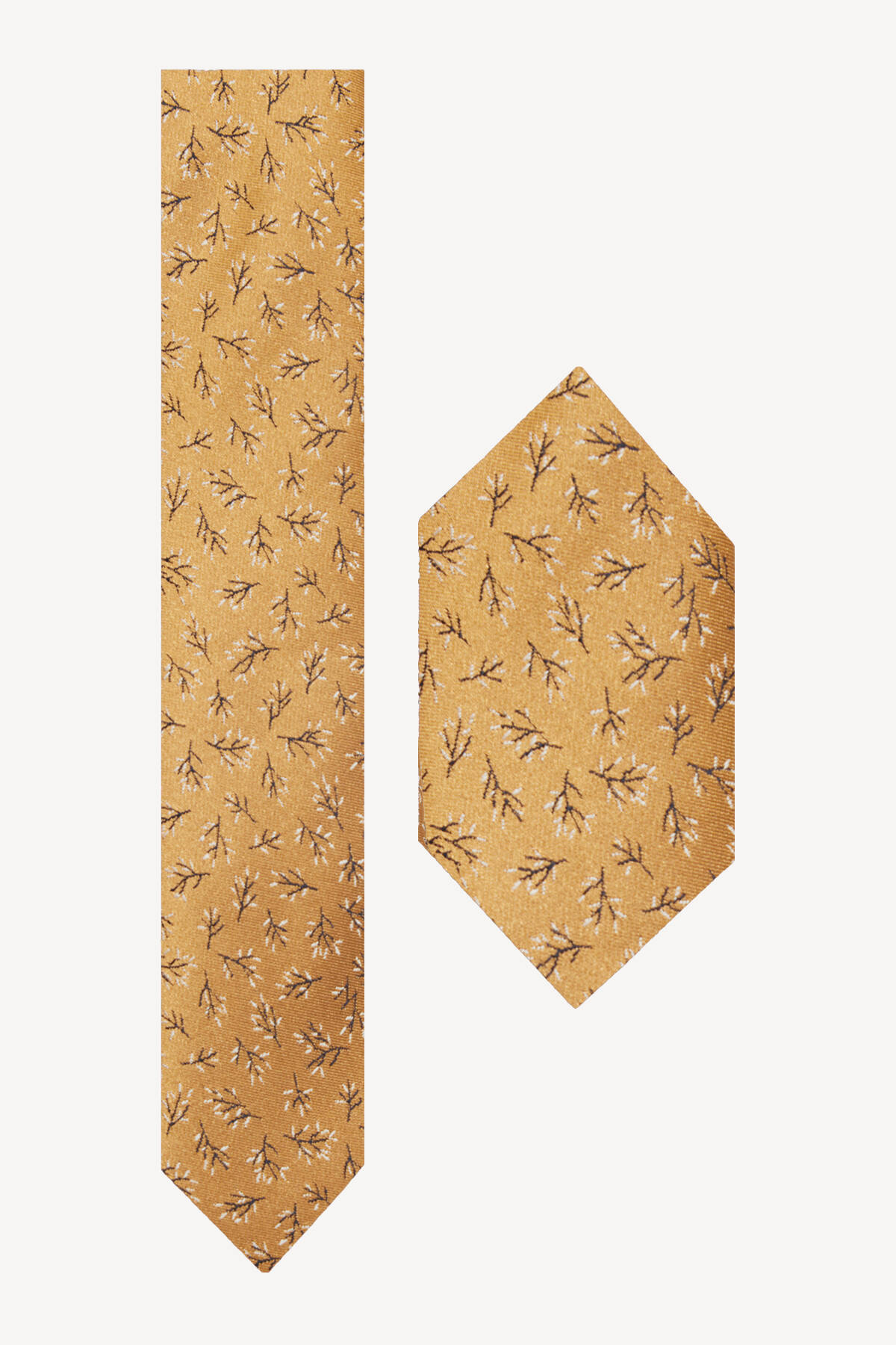 Erkek Camel Desenli Kravat Mendil Set