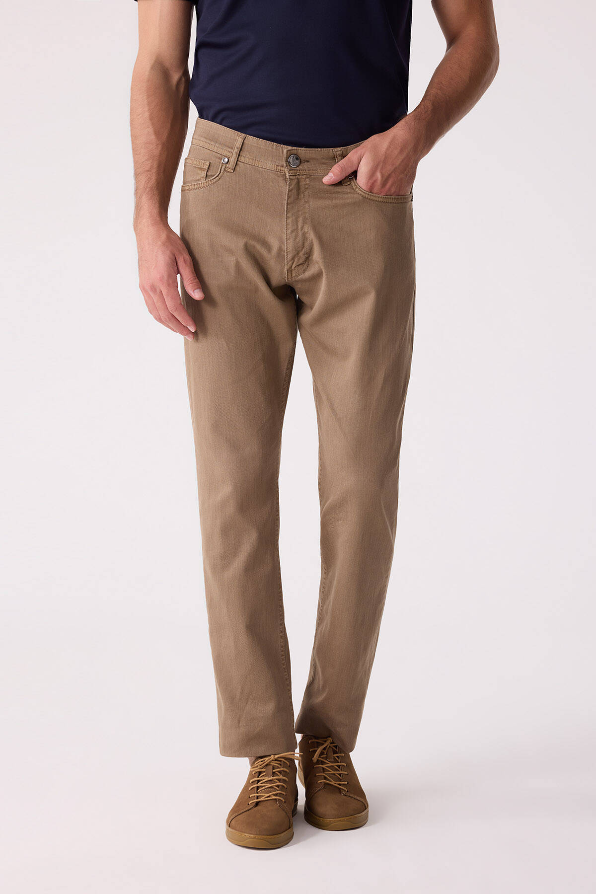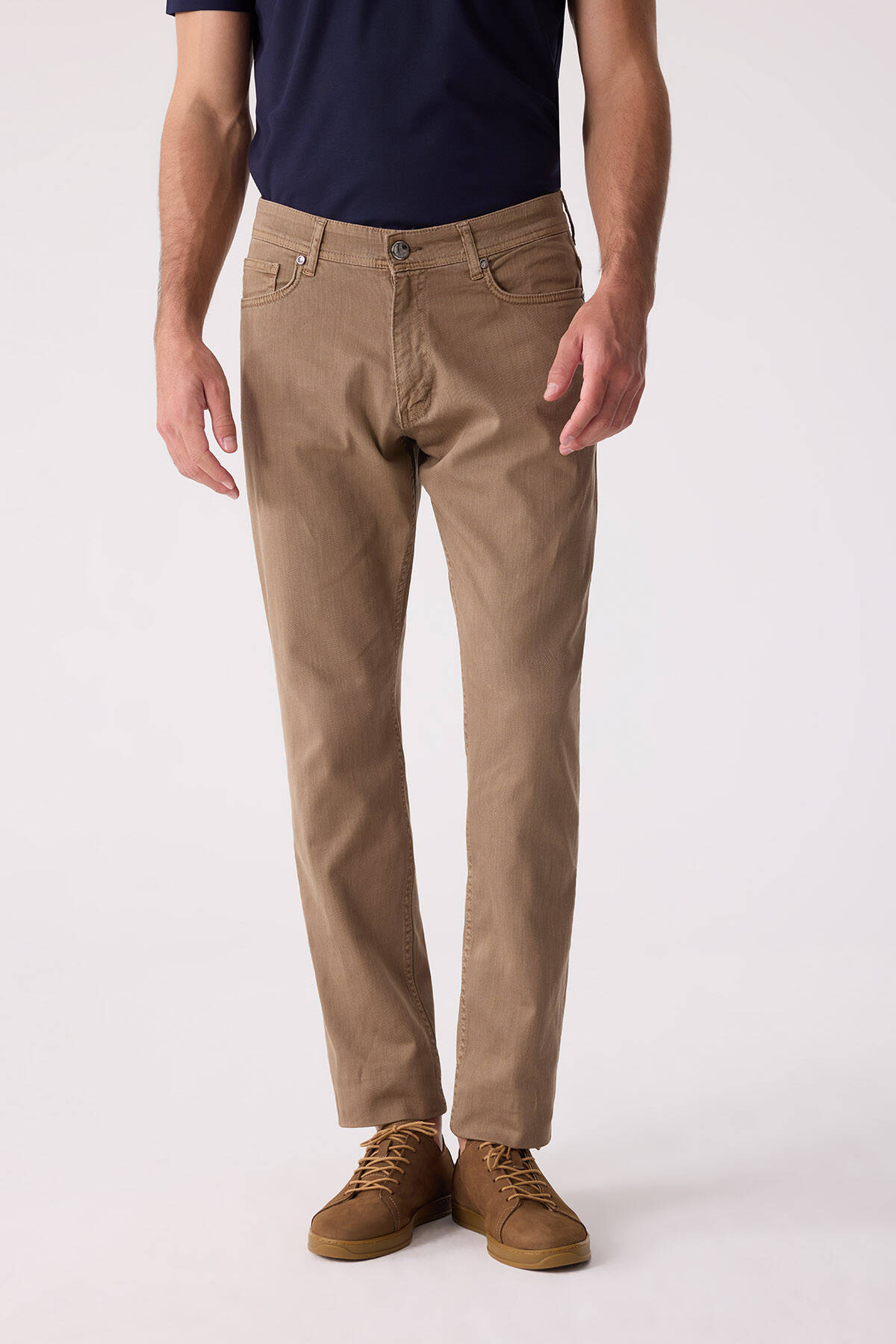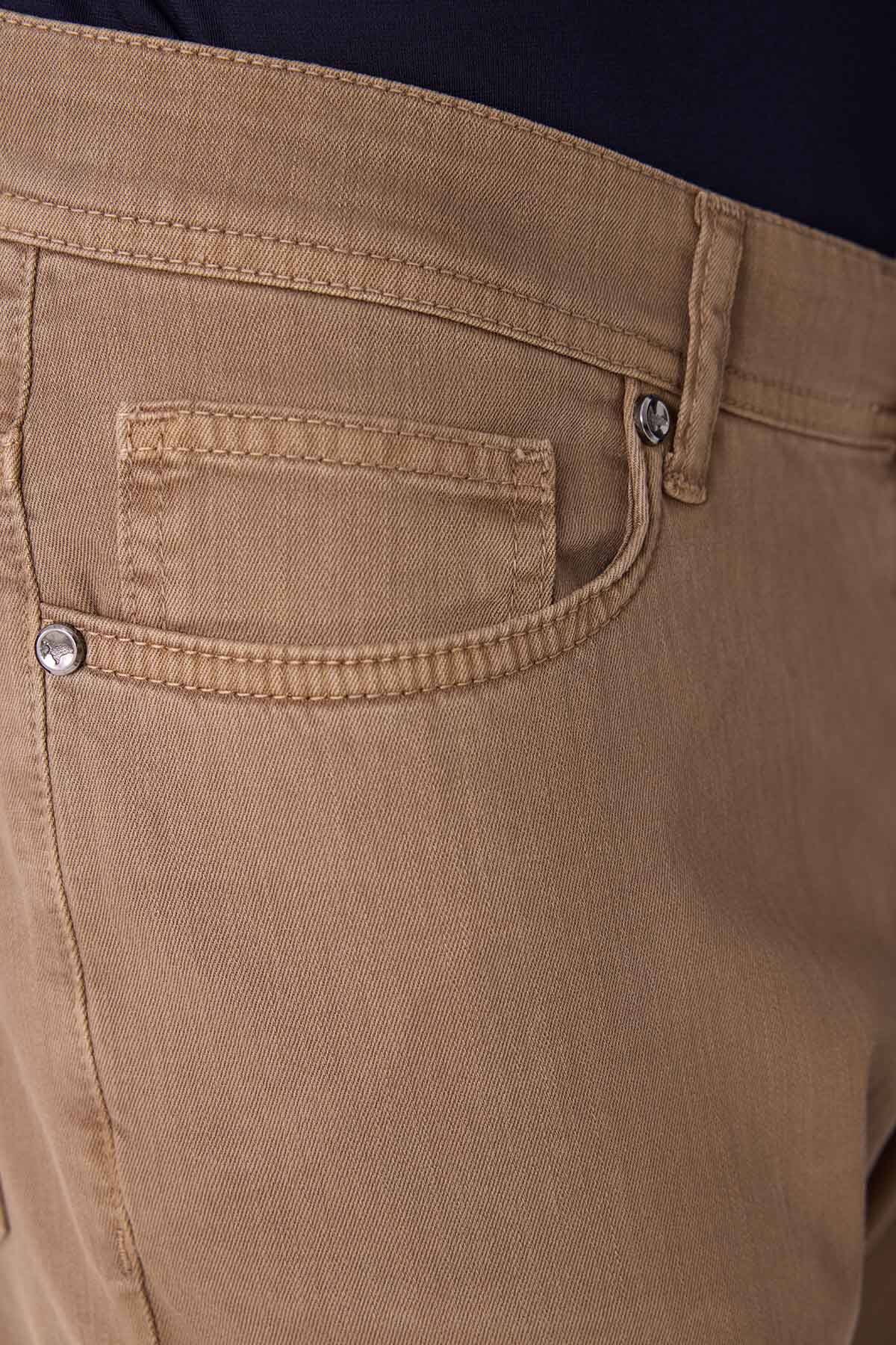 Erkek Camel Slim Fit Üst Cep Kanvas Pantolon