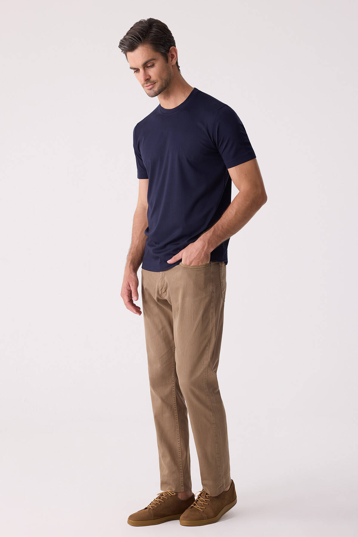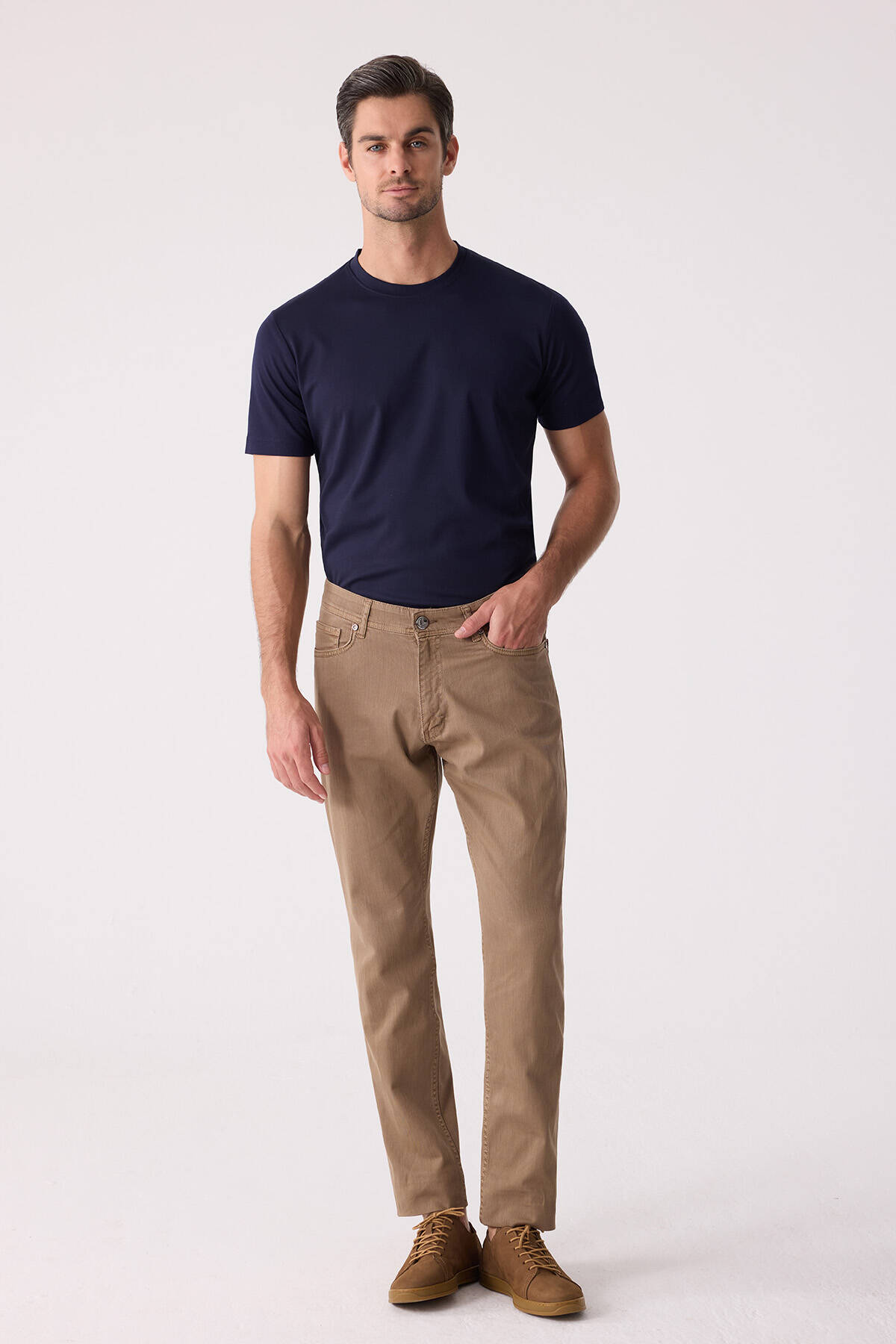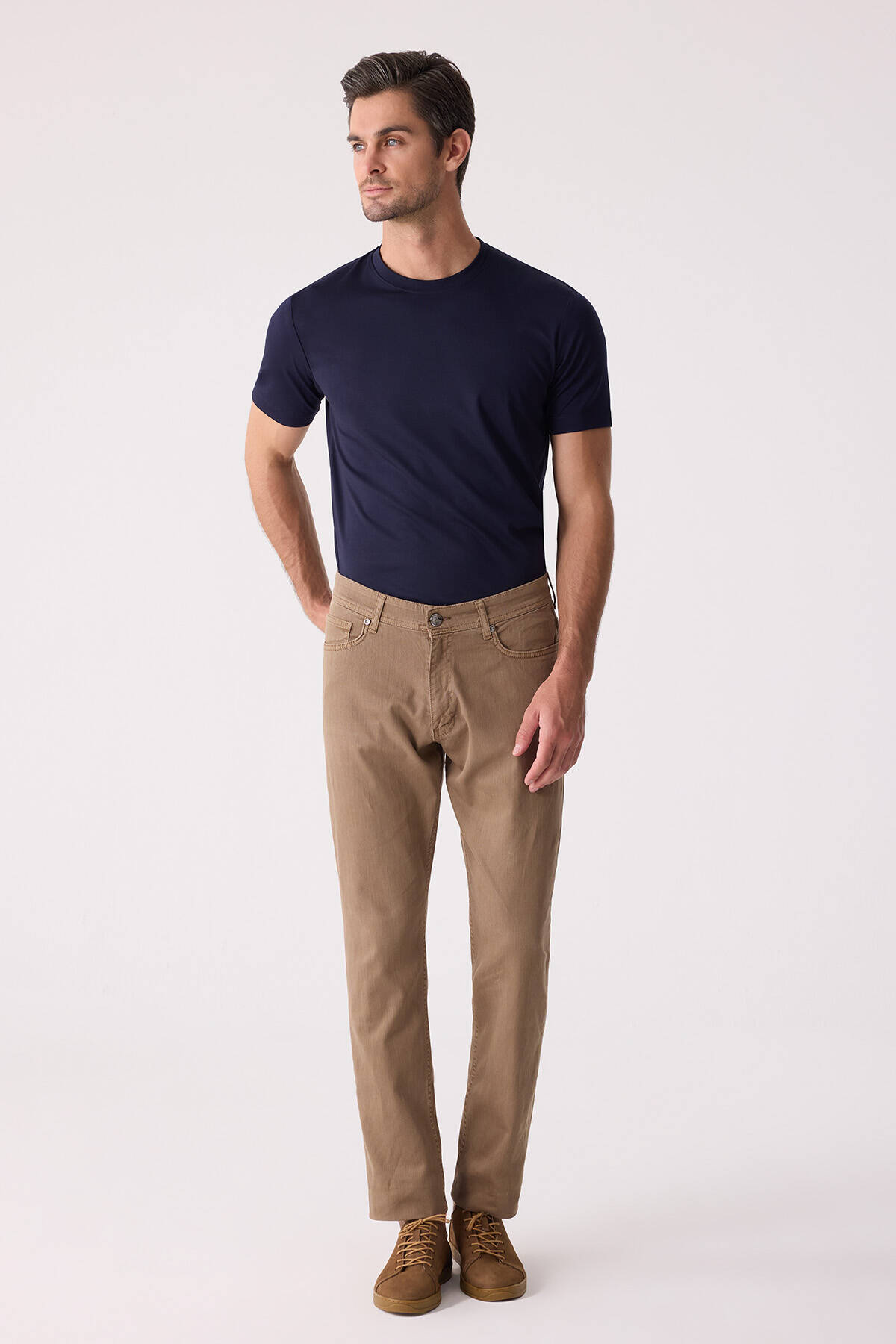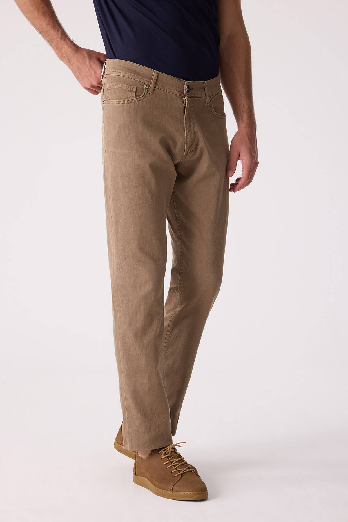 Erkek Camel Slim Fit Üst Cep Kanvas Pantolon