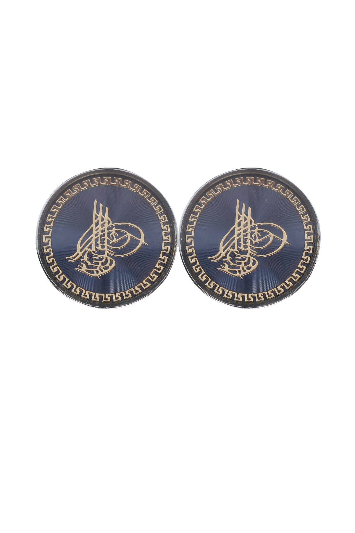 Erkek Lacivert Sarı Desenli Kol Düğmesi
