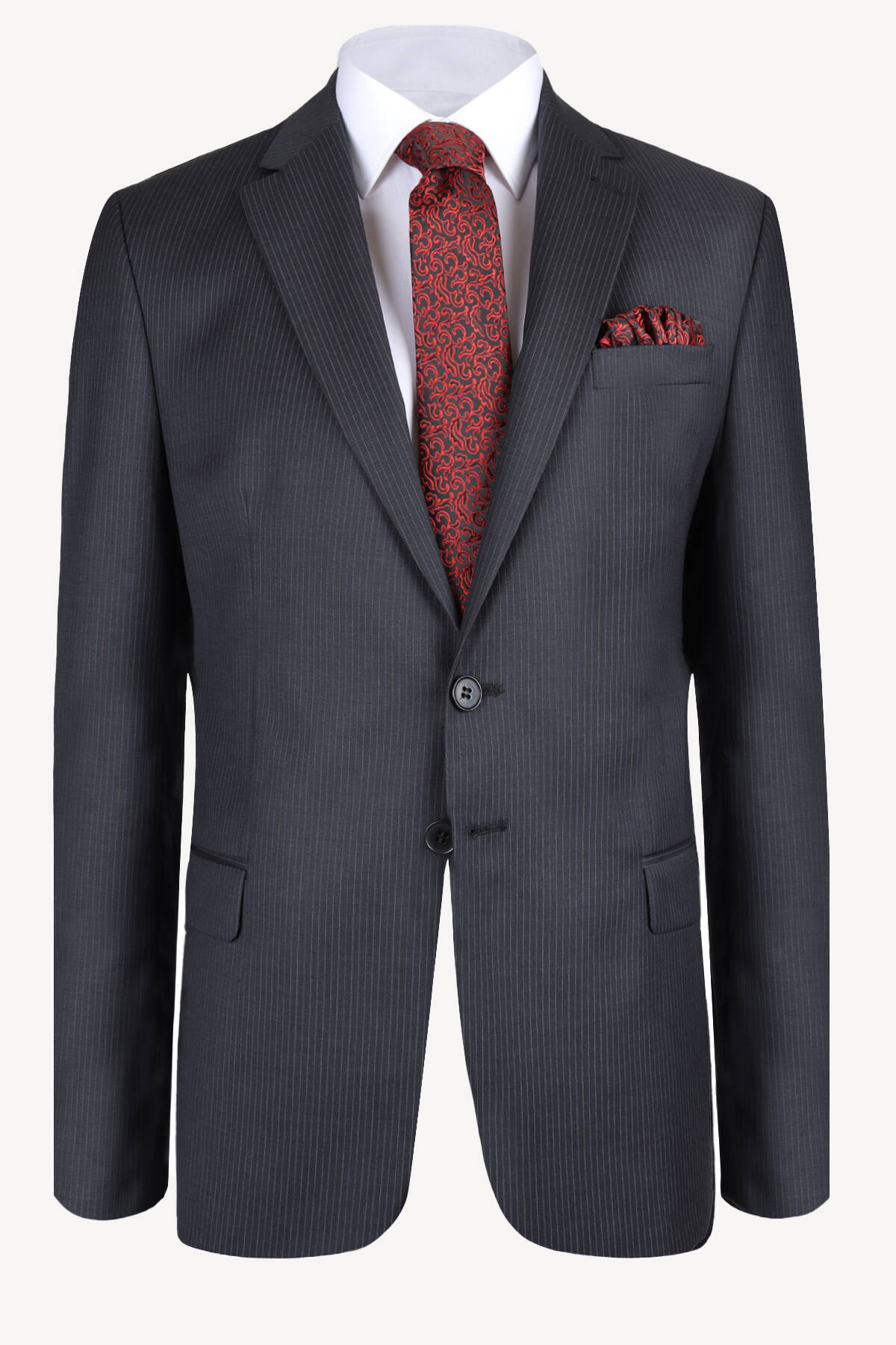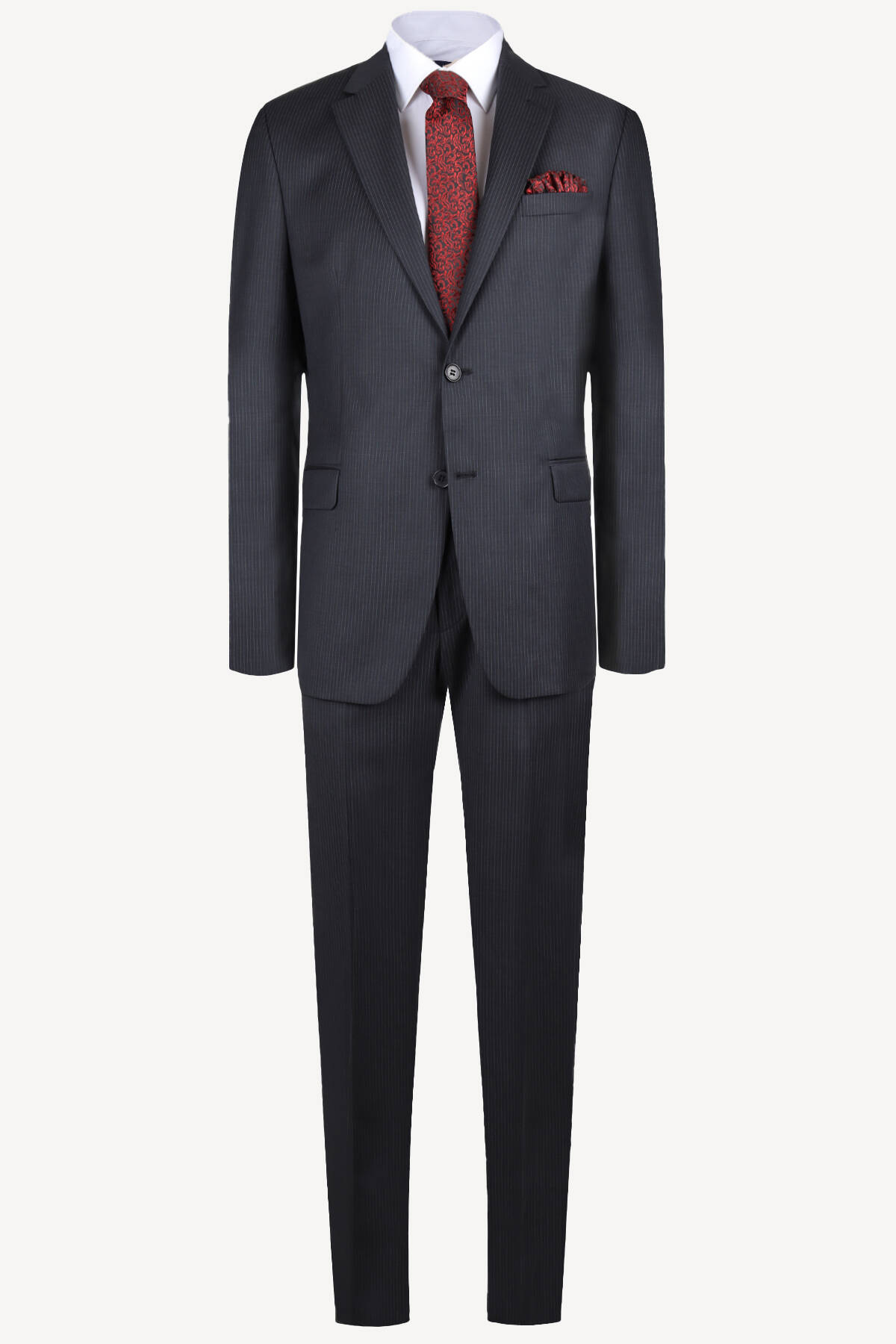 Erkek Füme Çizgili Regular Fit Takım Elbise
