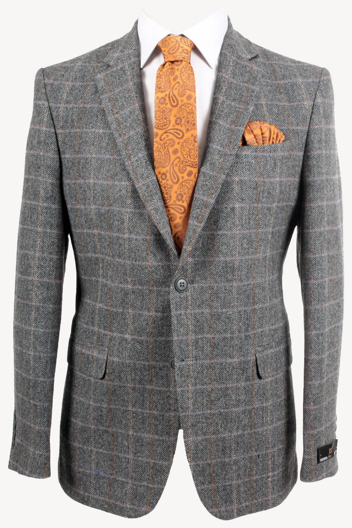 Erkek Füme Klasik Mono Yaka Ekose Ceket