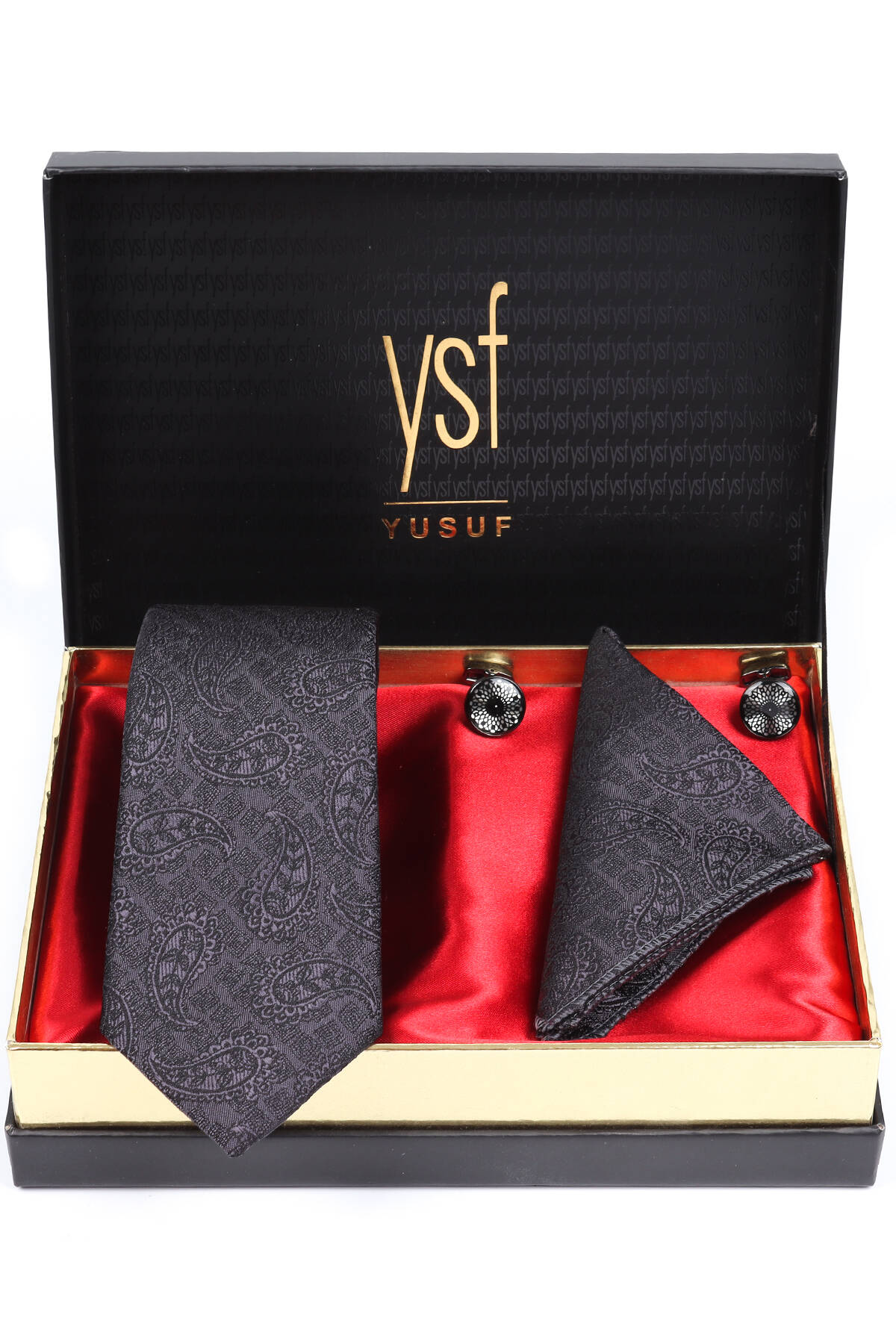 Erkek Füme Kravat Mendil Kol Düğmesi Set