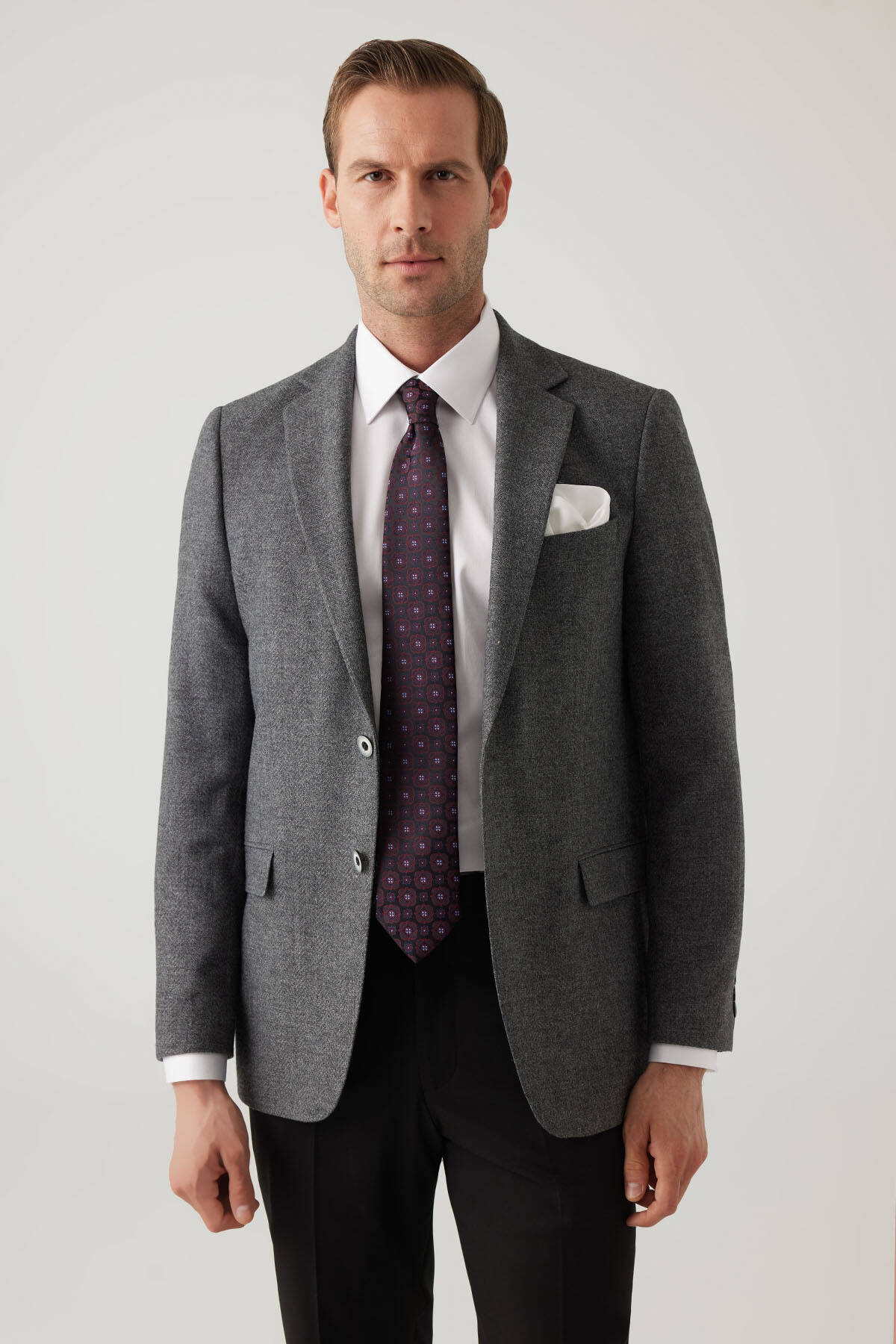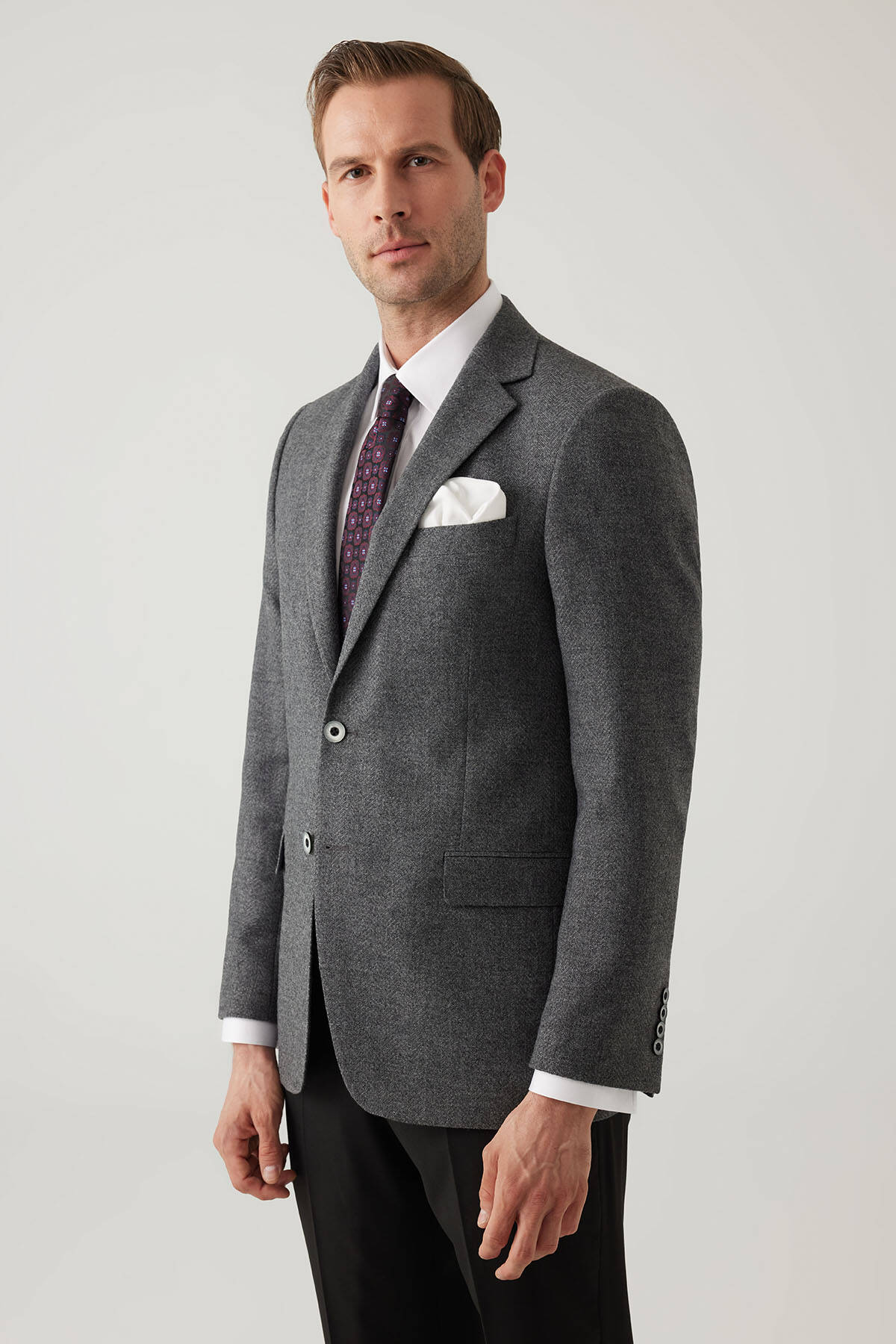 Erkek Füme Regular Fit Mono Yaka Kışlık Yünlü Ceket