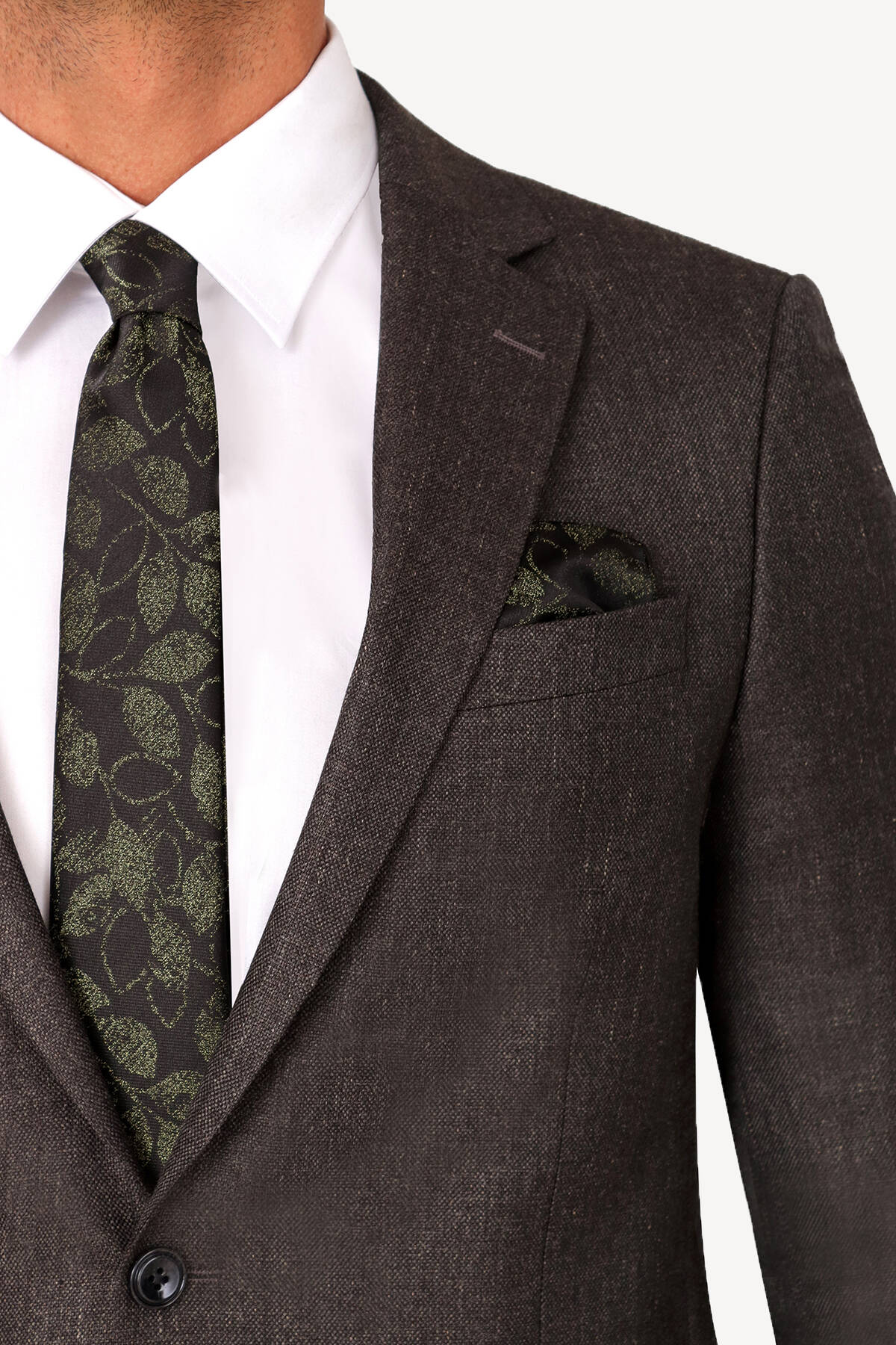 Erkek Füme Regular Fit Mono Yaka Takım Elbise