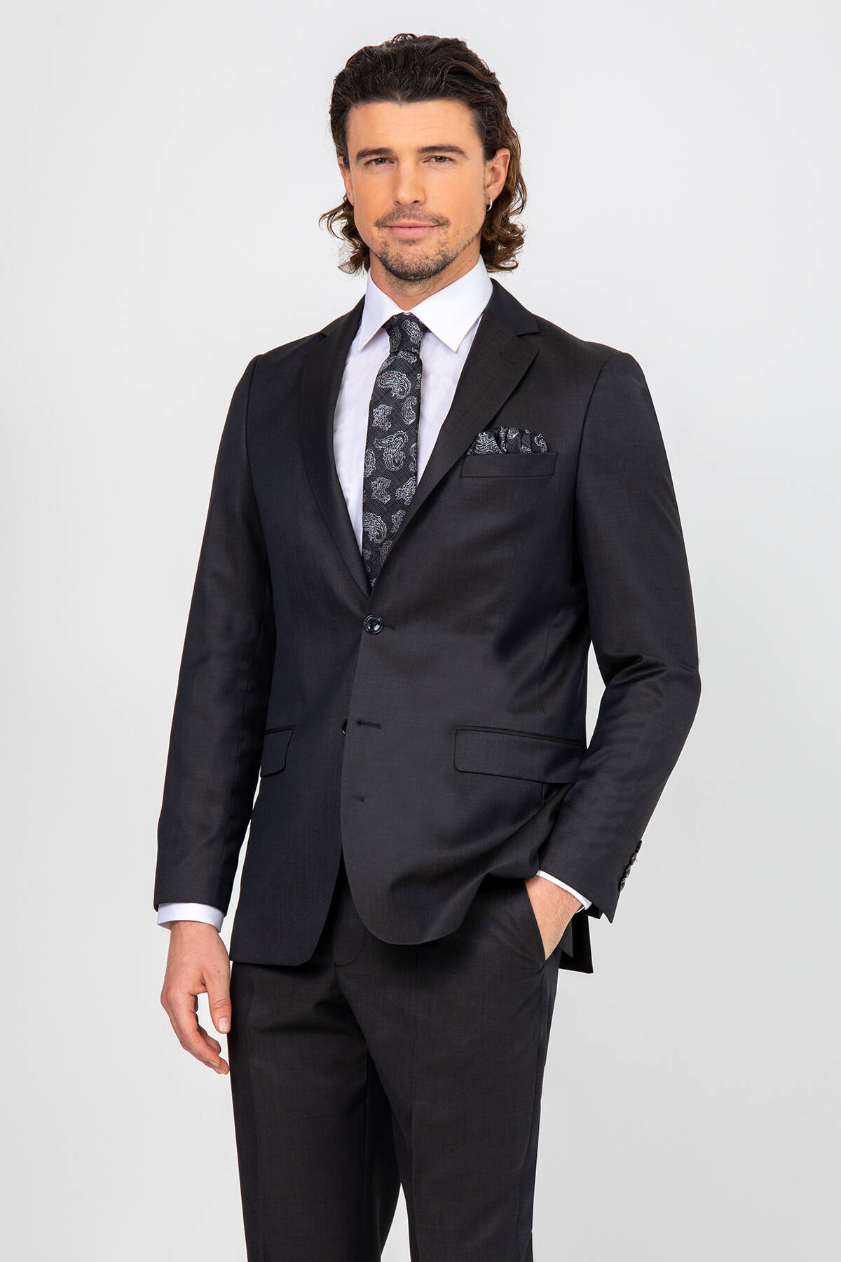 Regular fit kalıbı rahat kesimiyle hareket özgürlüğü sağlarken vücuda dengeli bir duruş kazandırır. İki düğmeli ceket tasarımı klasik cep detayları ve sade görünümüyle hem resmî hem de smart casual kombinler için idealdir. Füme rengi ise zamansız ve çok yönlü bir seçenektir; siyah lacivert ve beyaz tonlarla mükemmel uyum sağlar.